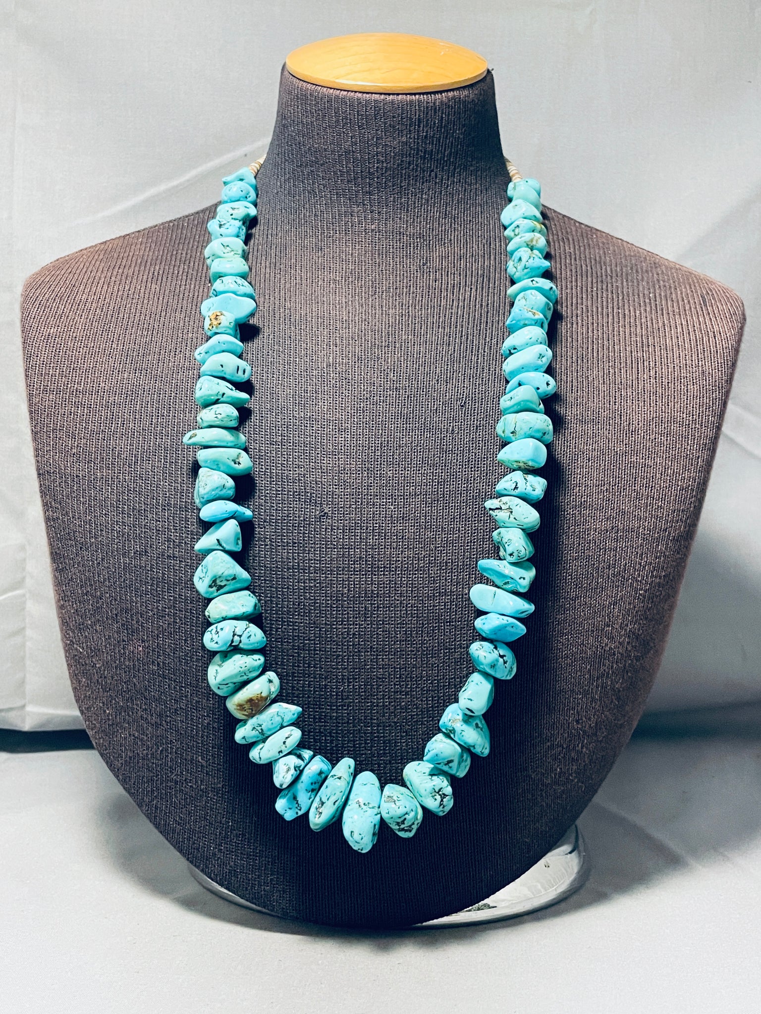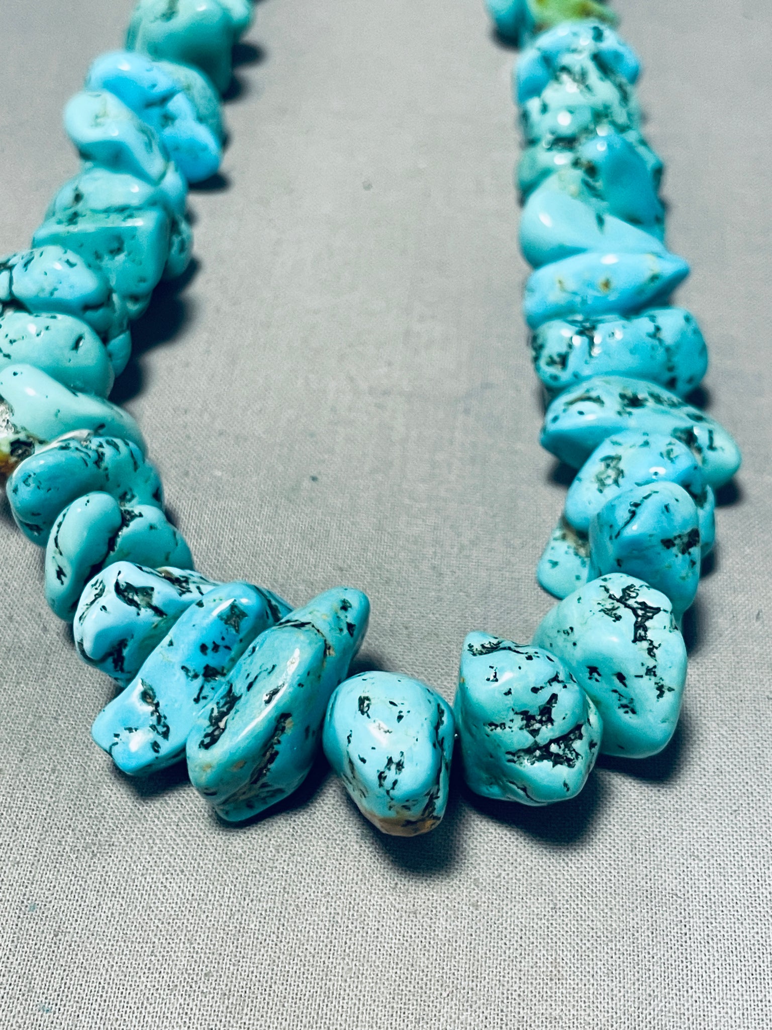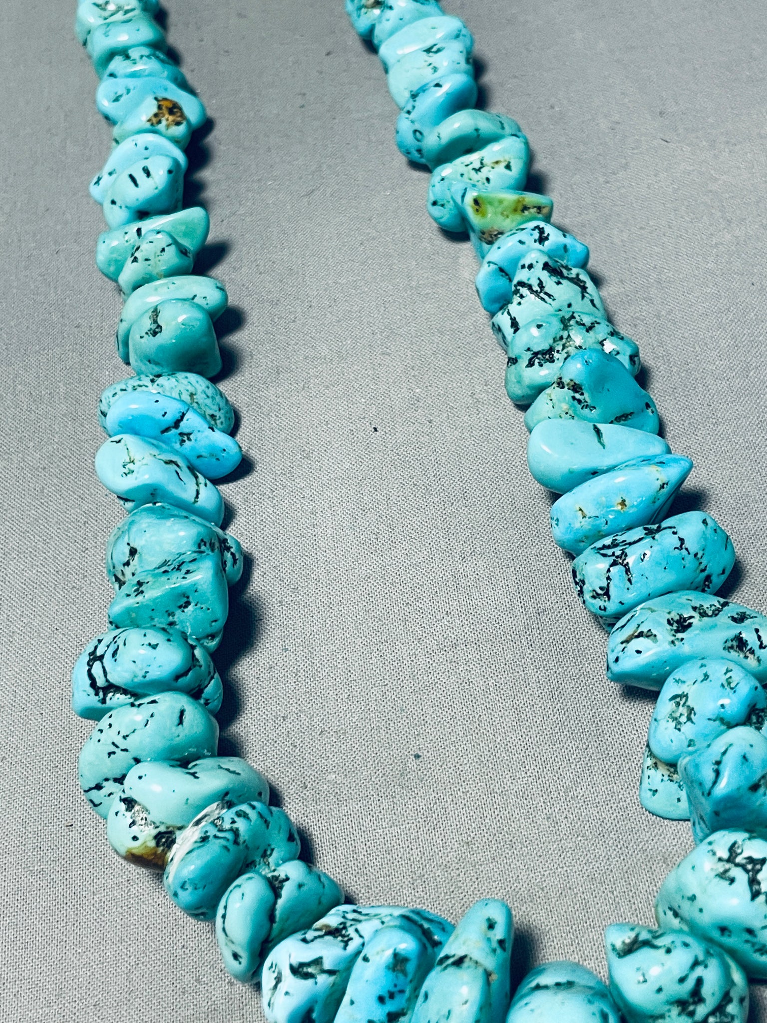 179 Grams Heavy Vintage Native American Navajo Turquoise Nugget Heishi Necklace