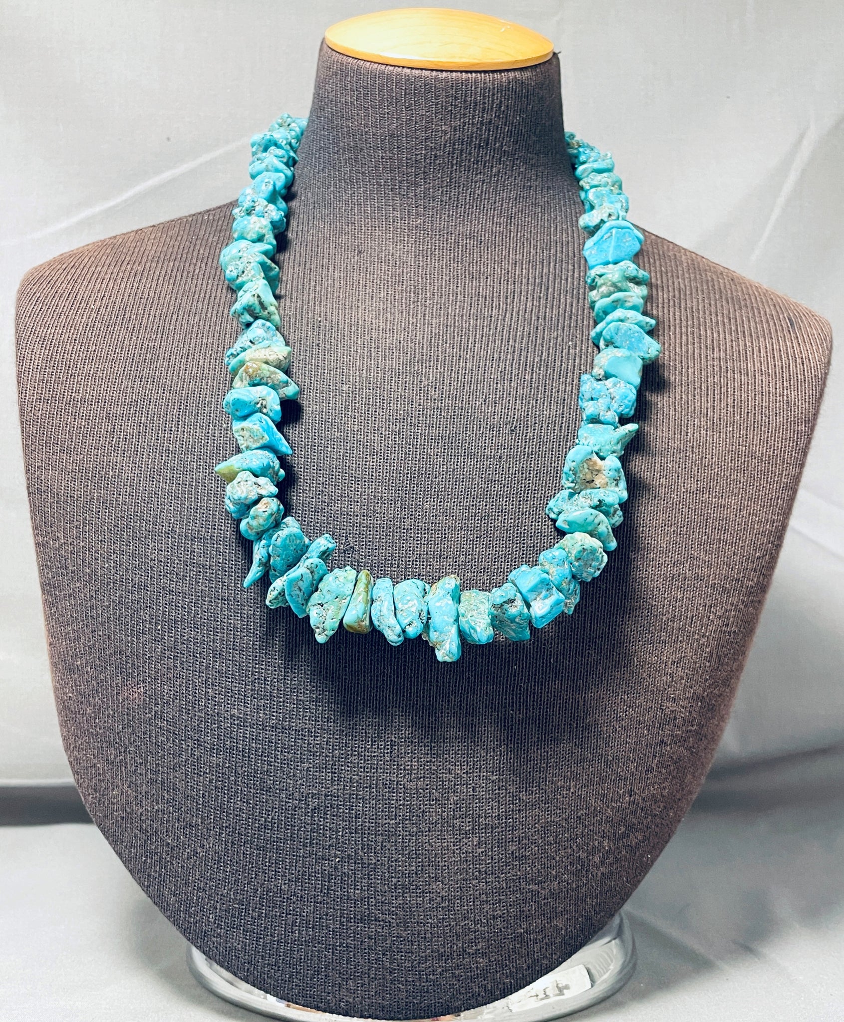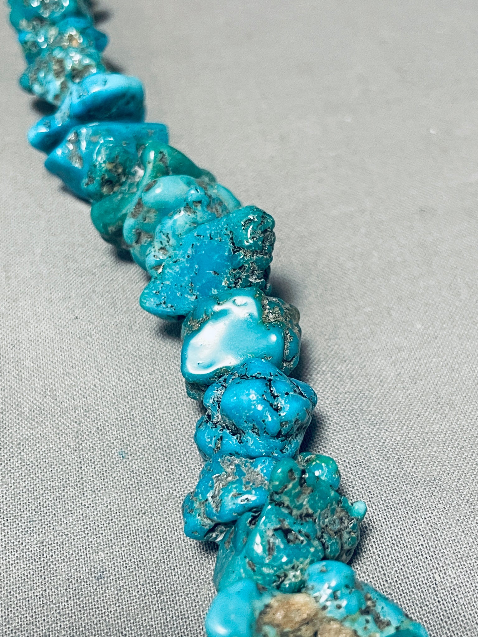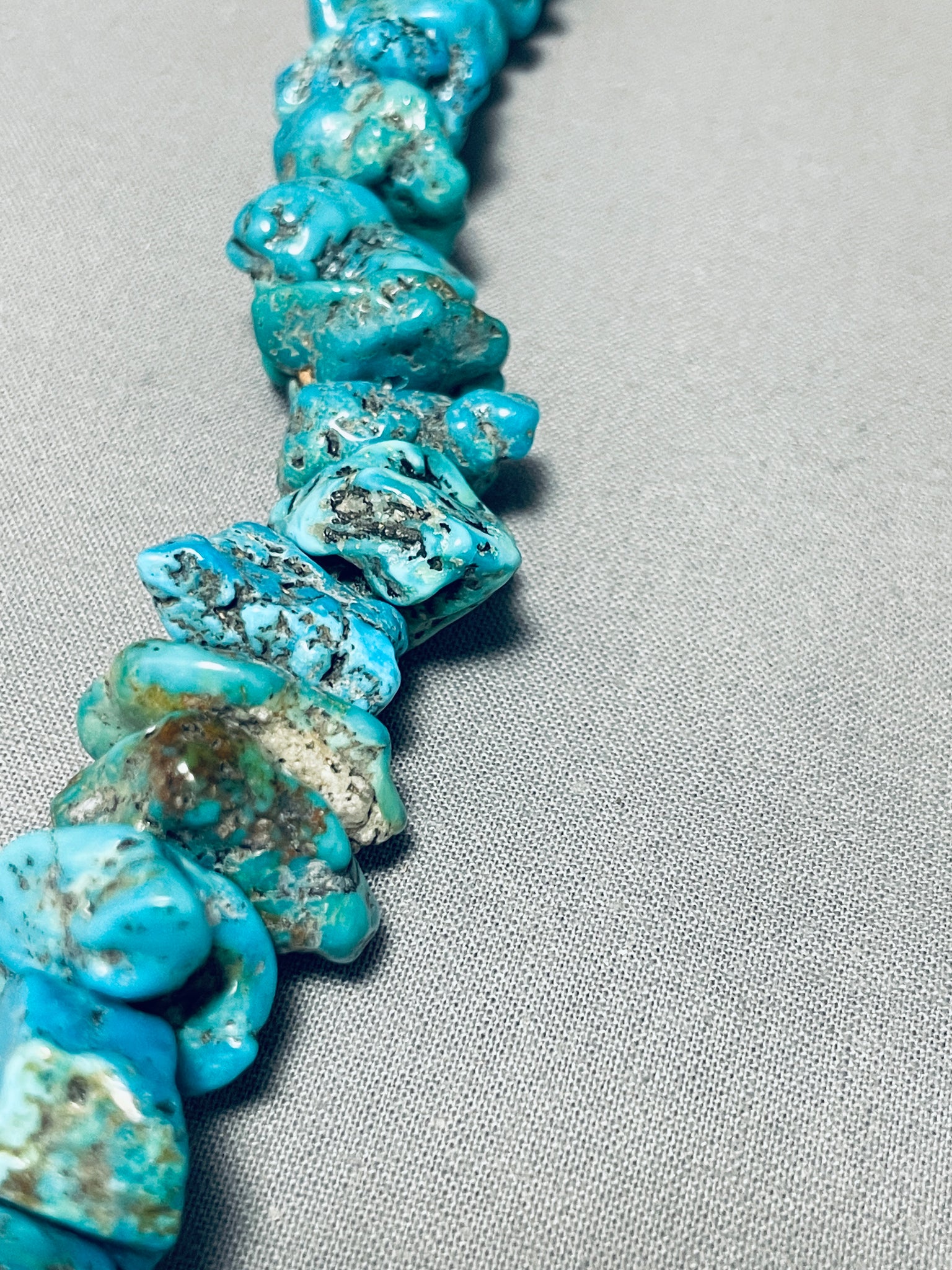 180 Gram Vintage Native American Navajo Chunky Nugget Turquoise Sterling Silver Necklace