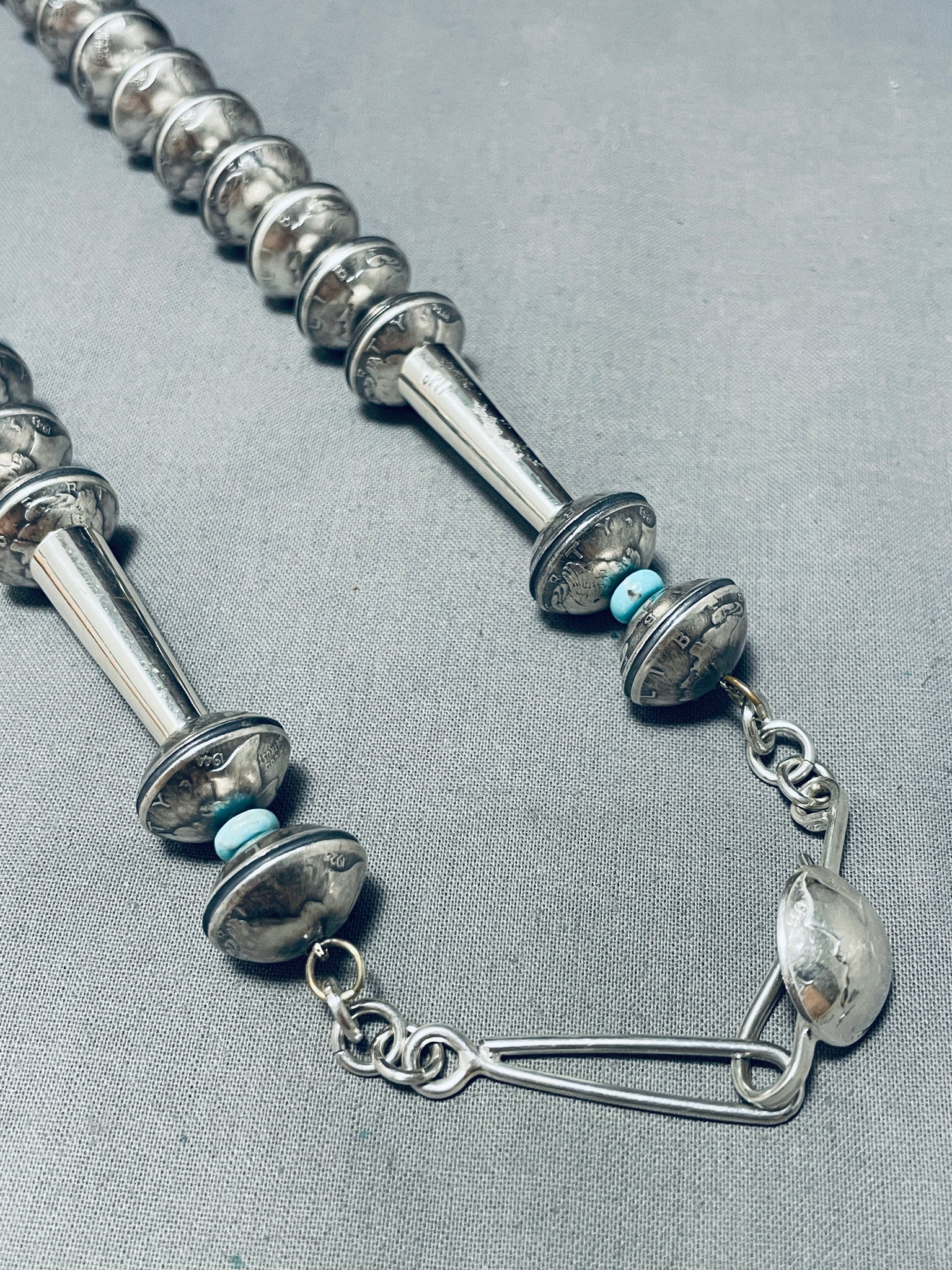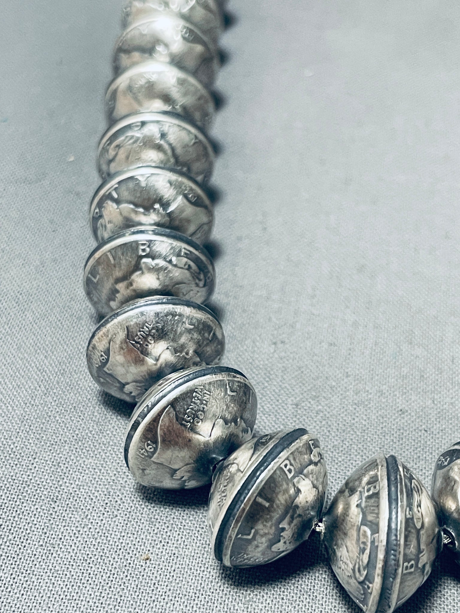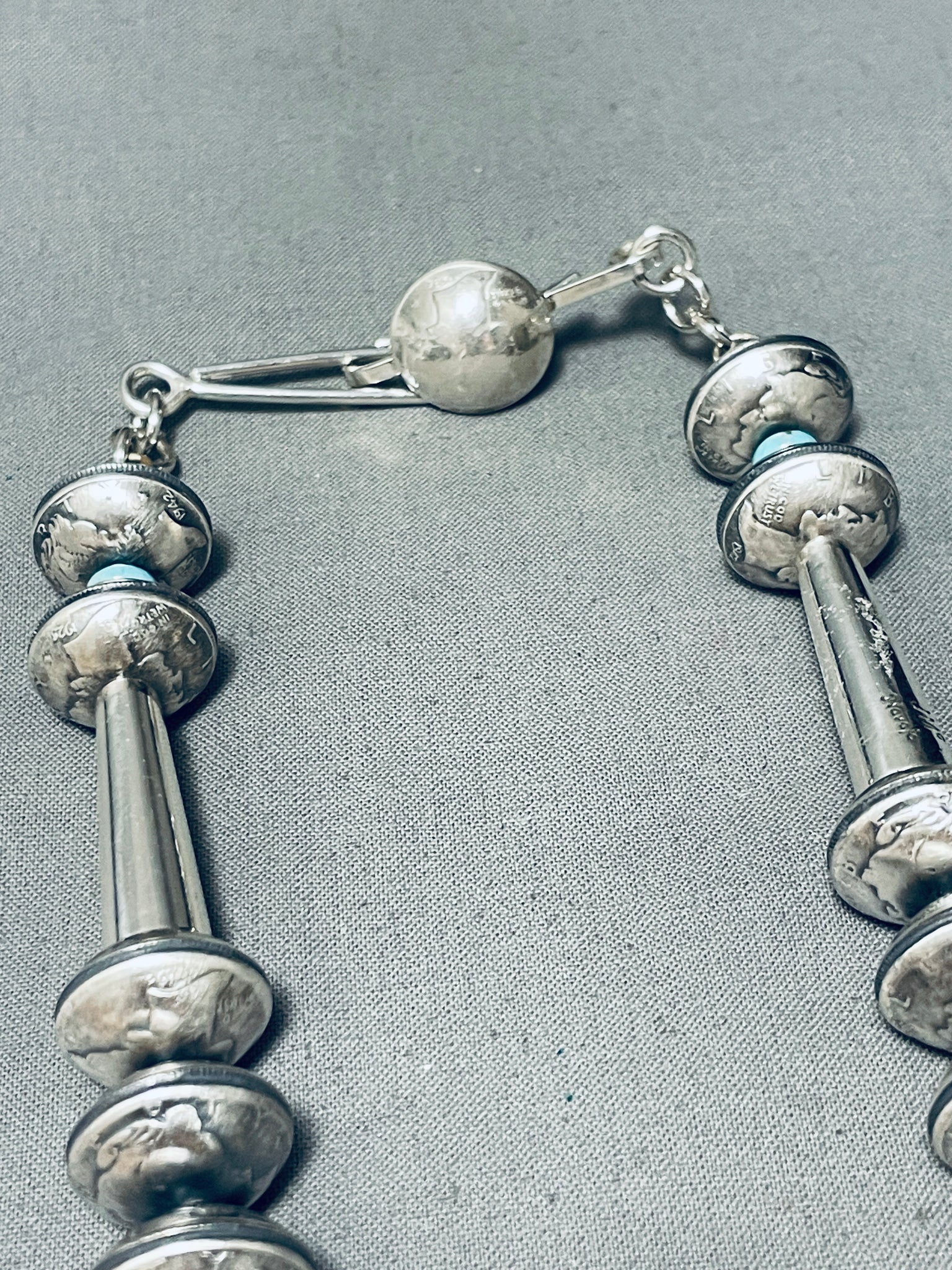181 Grams!!!!! Native American Navajo Turquoise Sterling Silver Coin Necklace