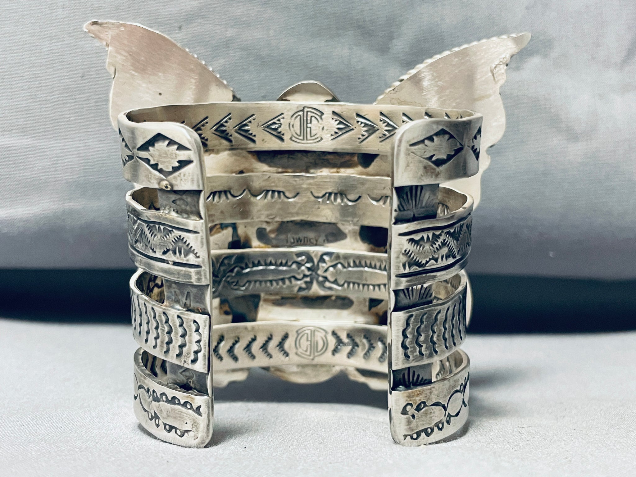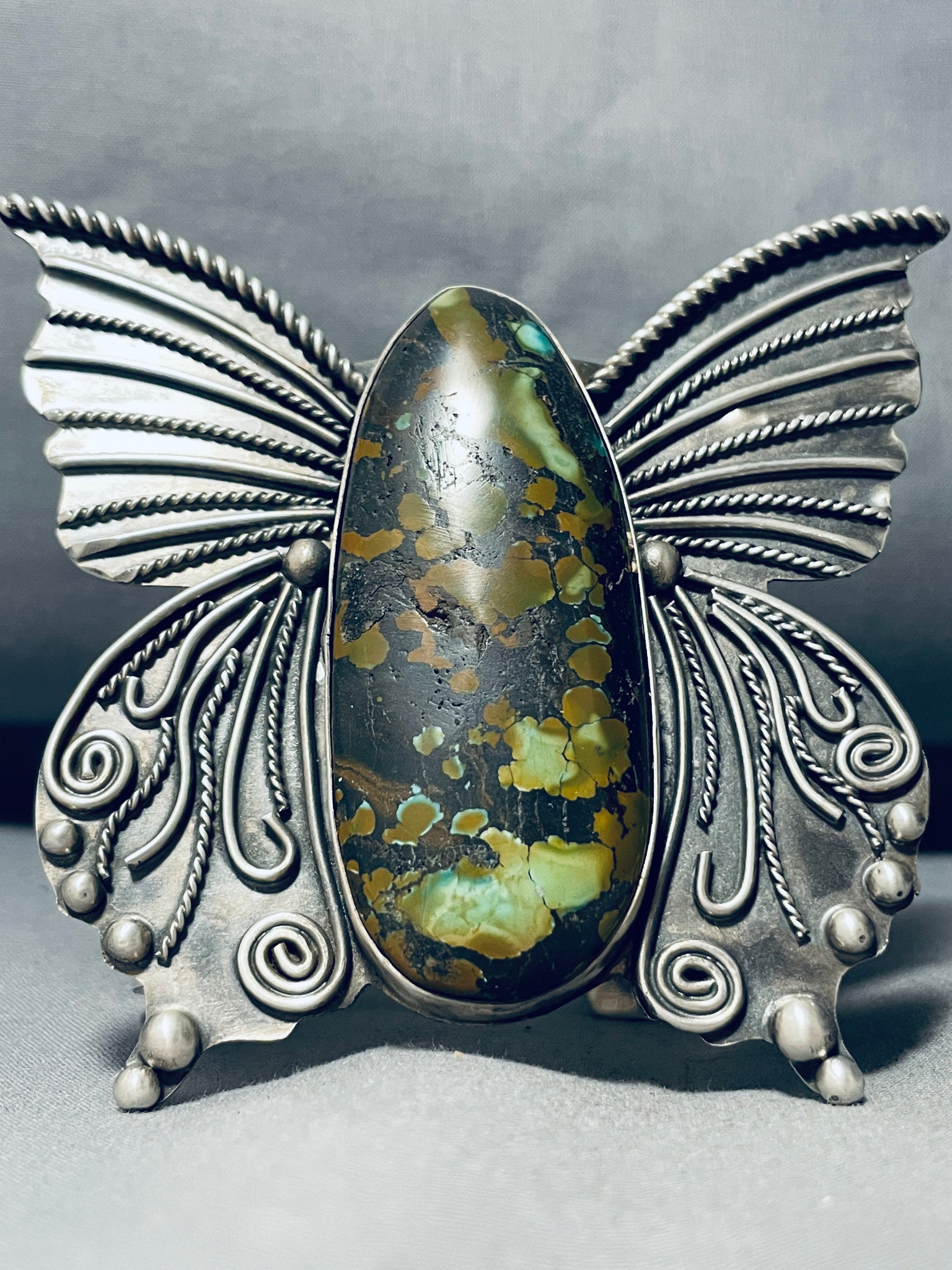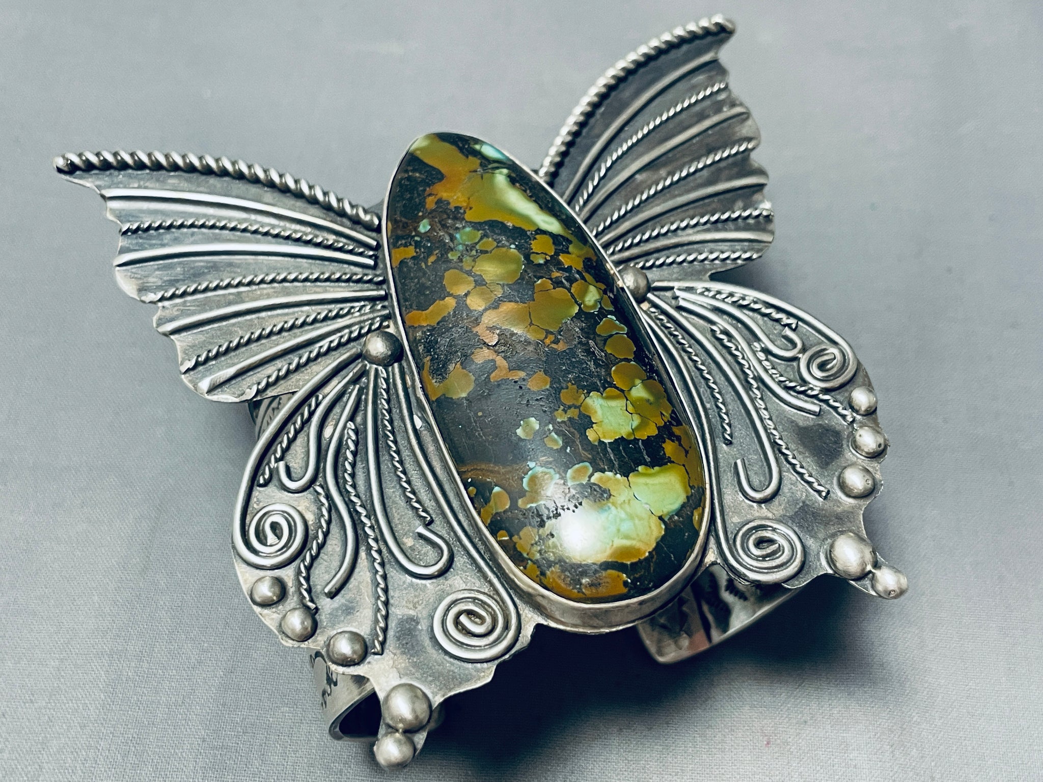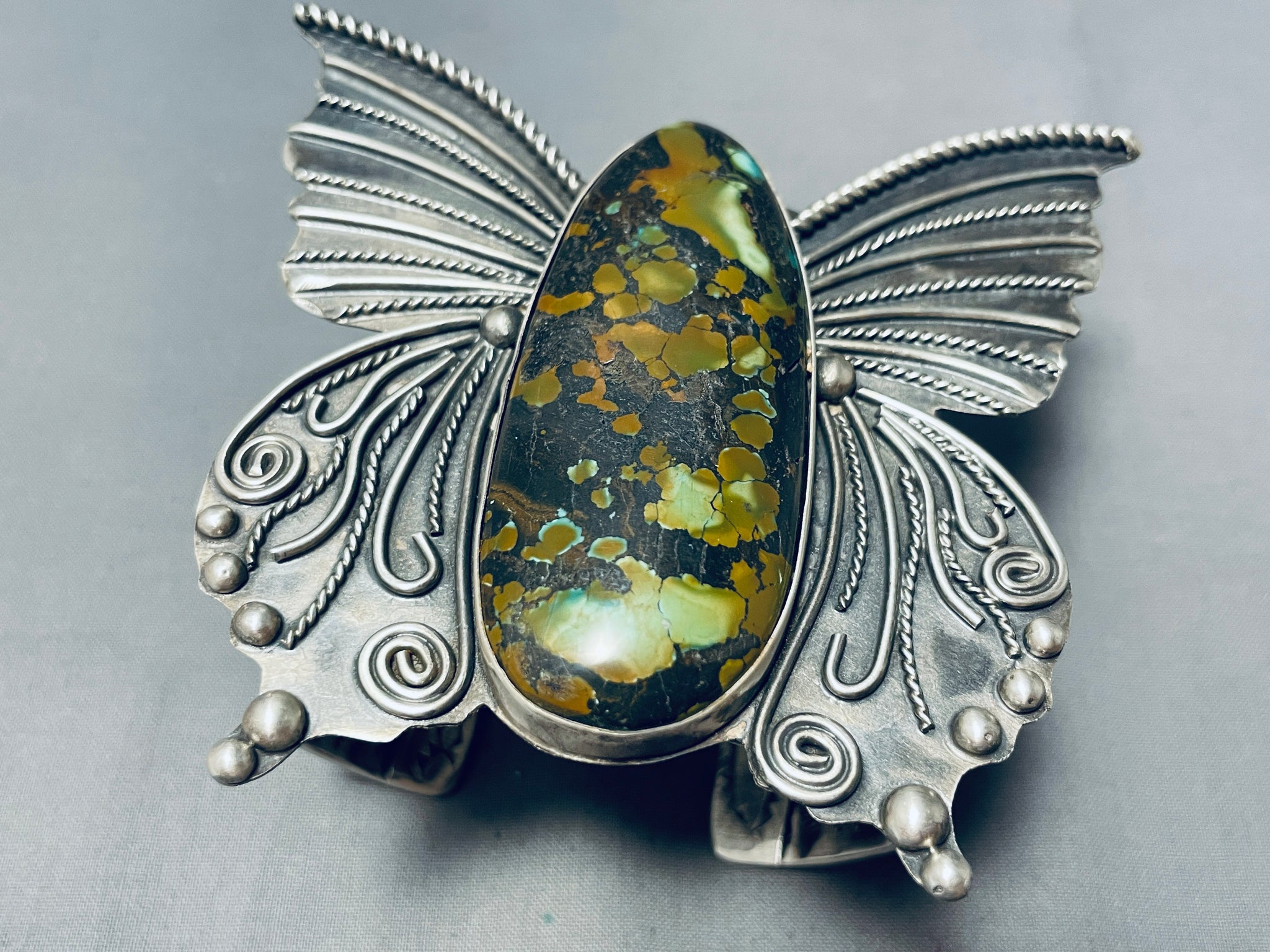 184 Grams!! Native American Navajo Green Turquoise Sterling Silver Butterfly Bracelet!