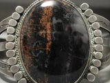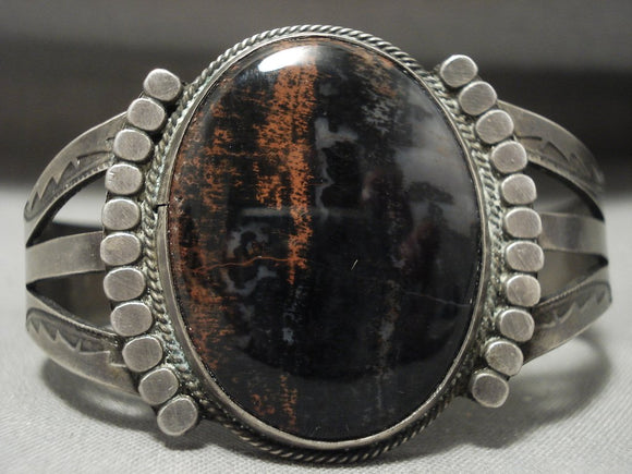 1930's Wide Vintage Navajo Petrified Wood Native American Jewelry Silver 'Flat Bead' Bracelet