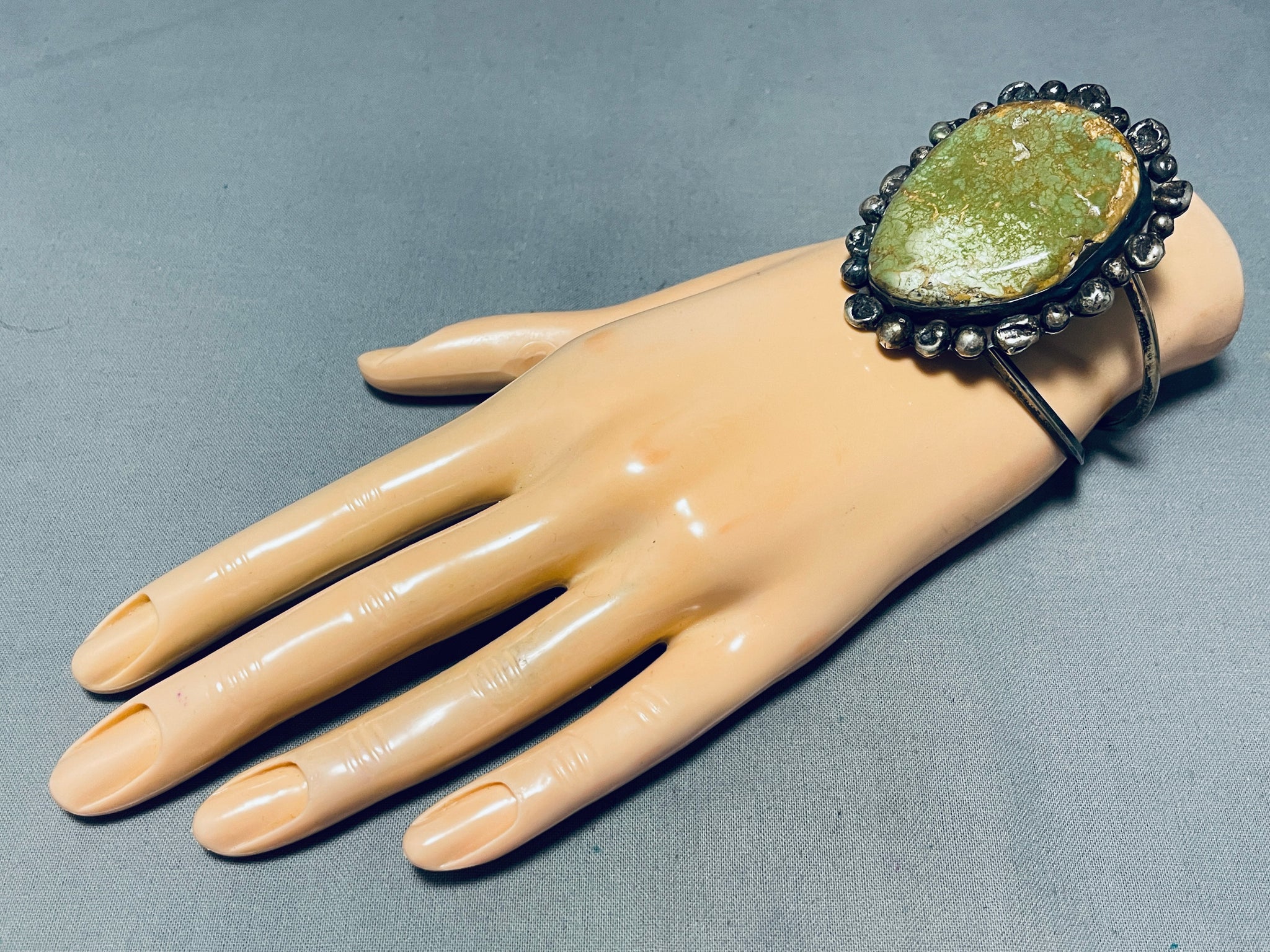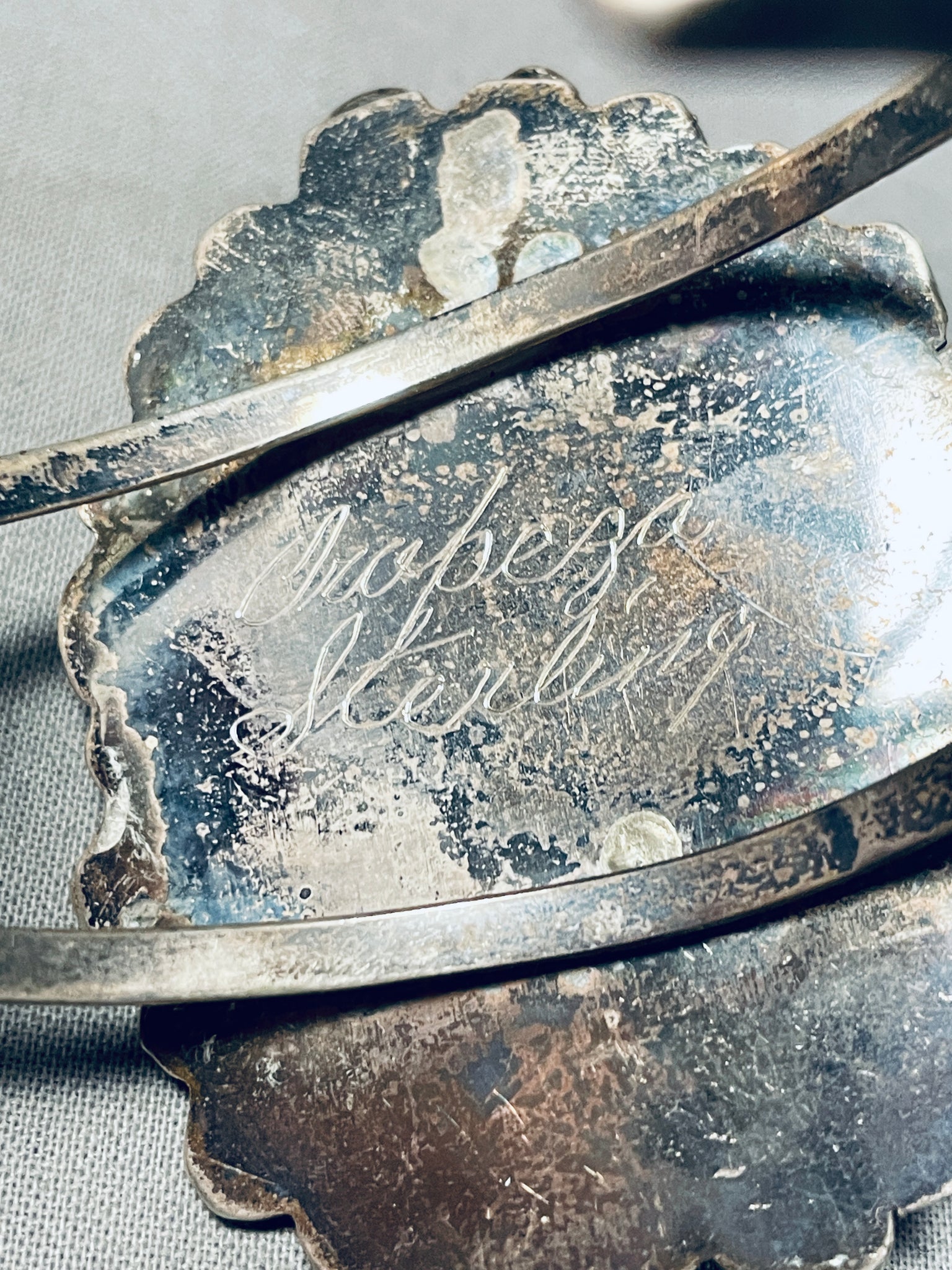 1950s Abreza Signed Vintage Native American Navajo Royston Turquoise Sterling Silver Bracelet