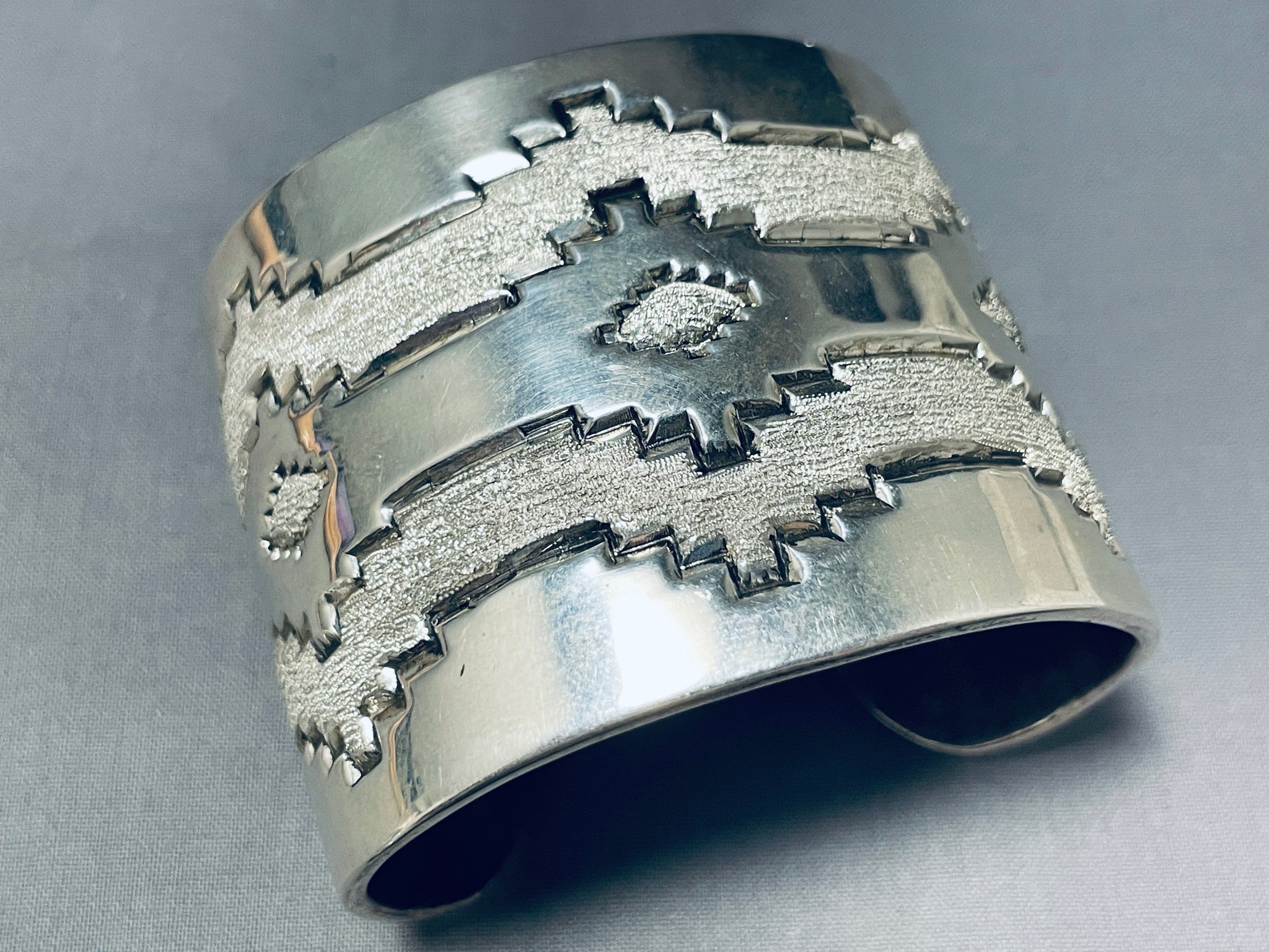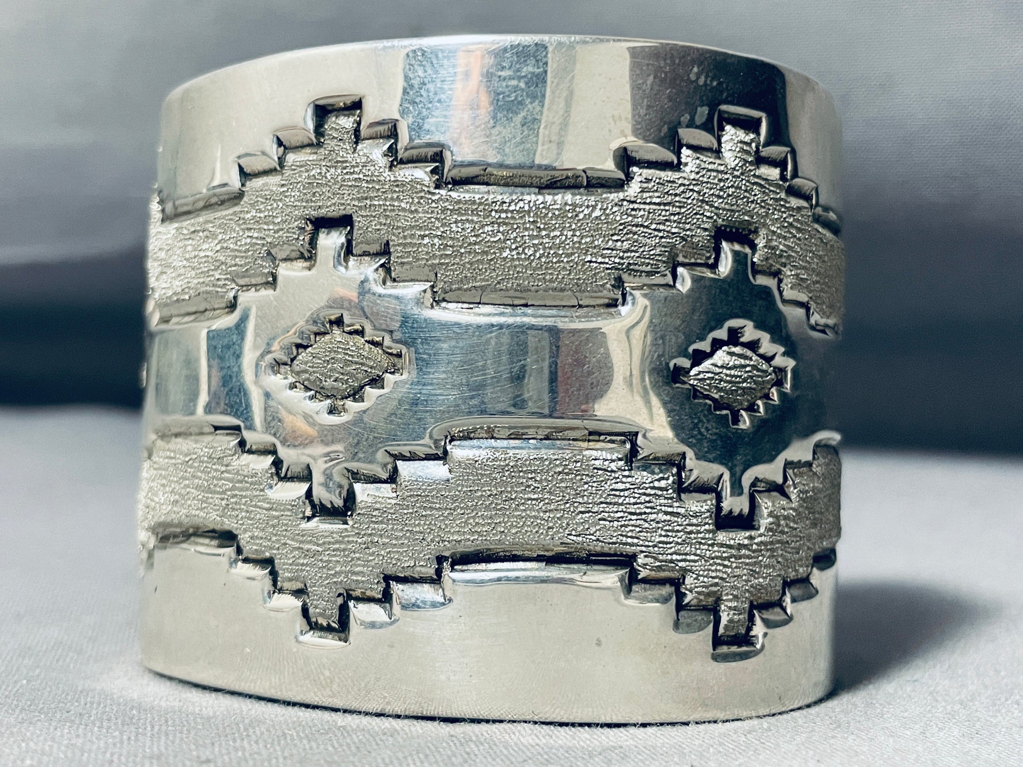 200 Grams!! All Silver Powerful Vintage Native American Navajo Sterling Bracelet Cuff
