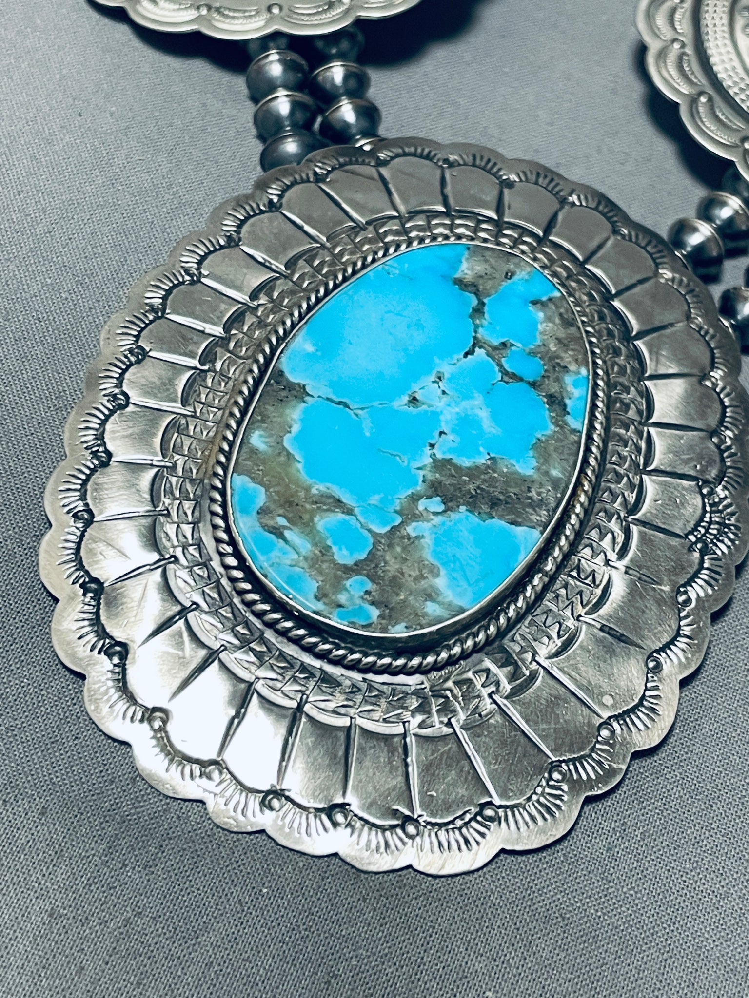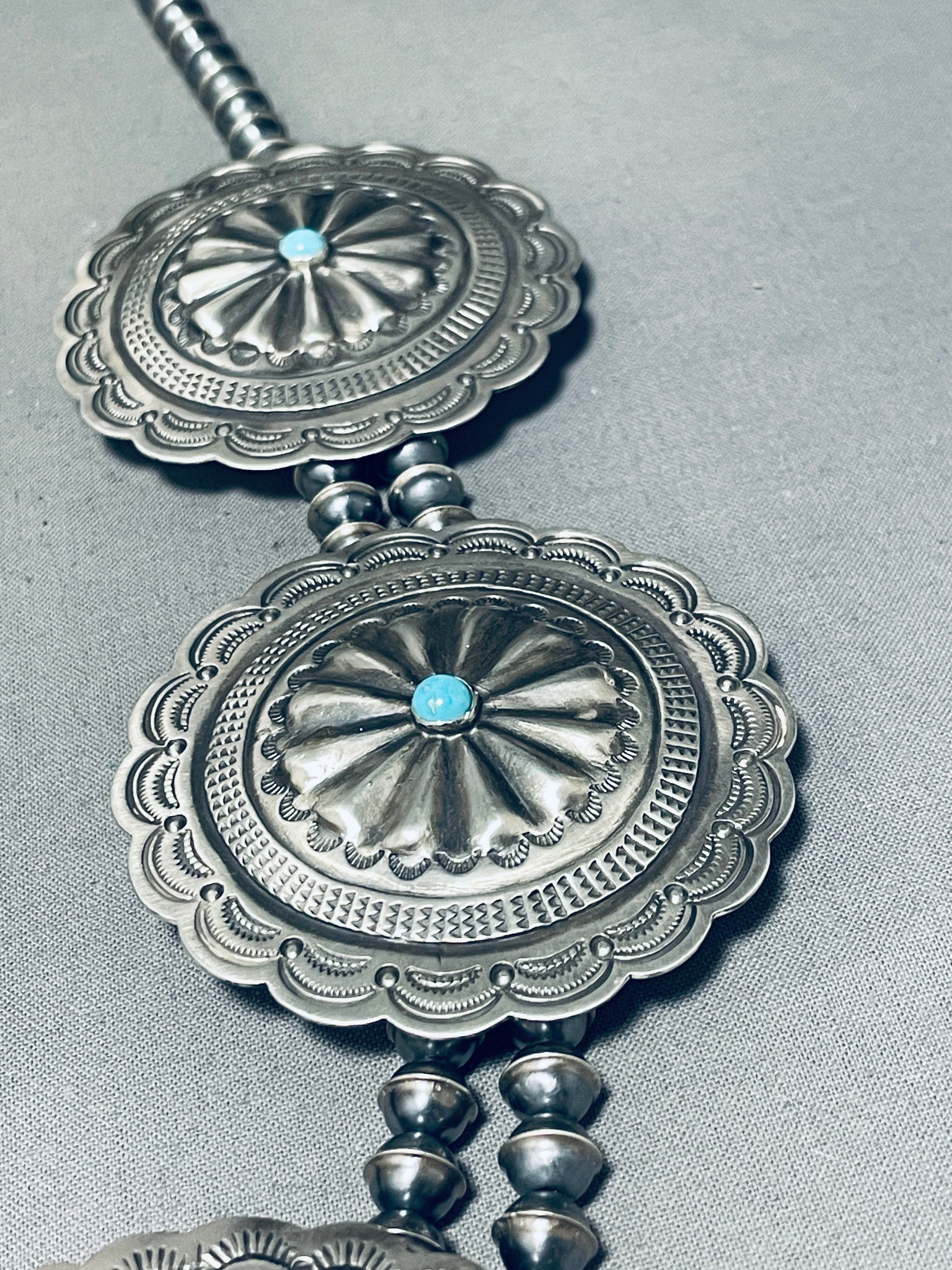 200 Grams Huge Vintage Native American Navajo Concho Sterling Silver Turquoise Necklace