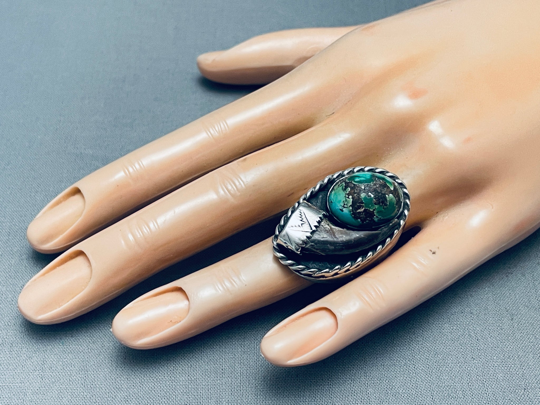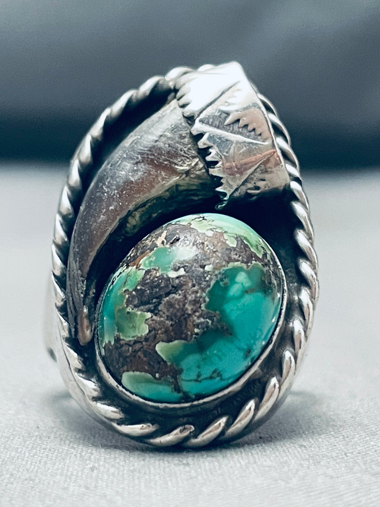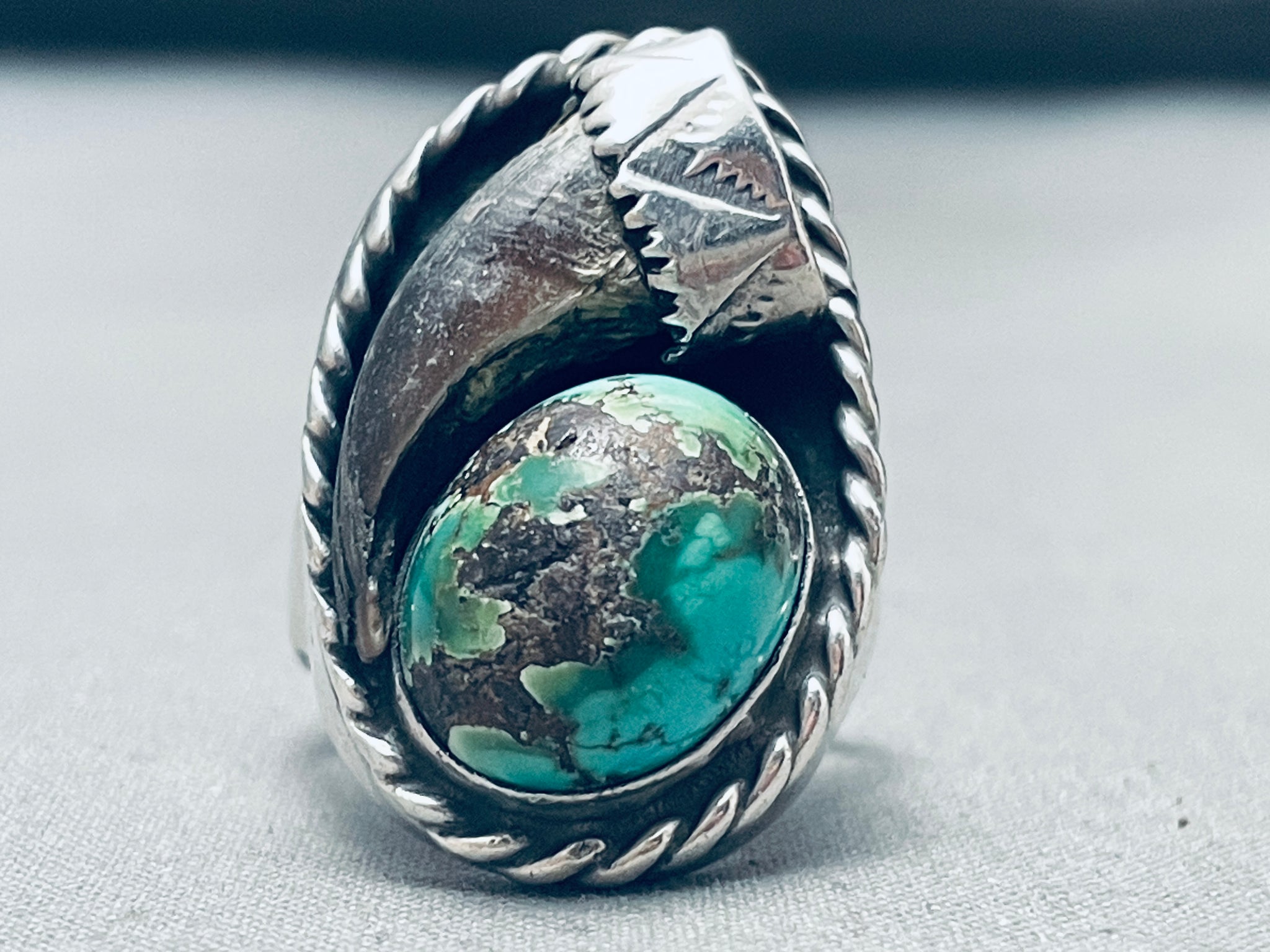 21 Grams Heavy Vintage Native American Navajo Turquoise Sterling Silver Ring Old