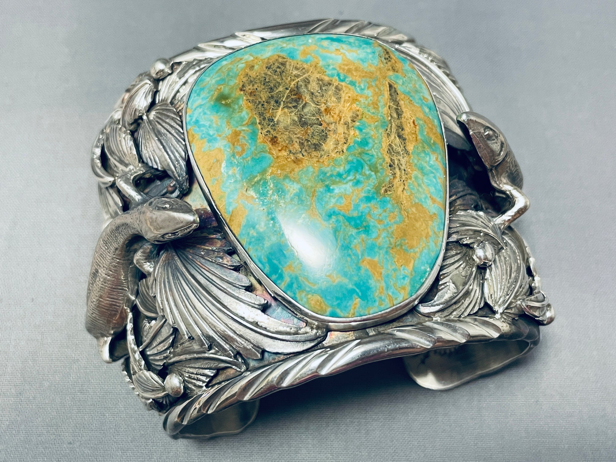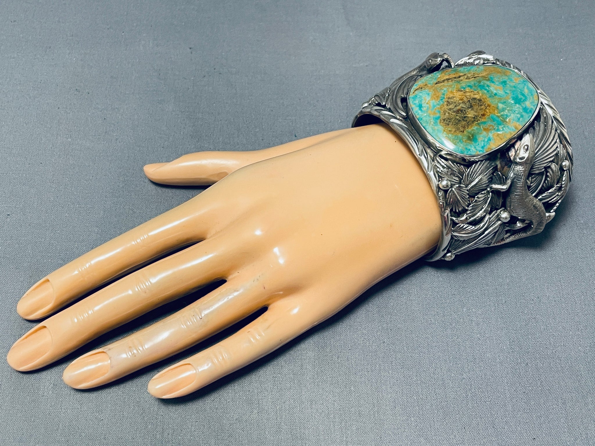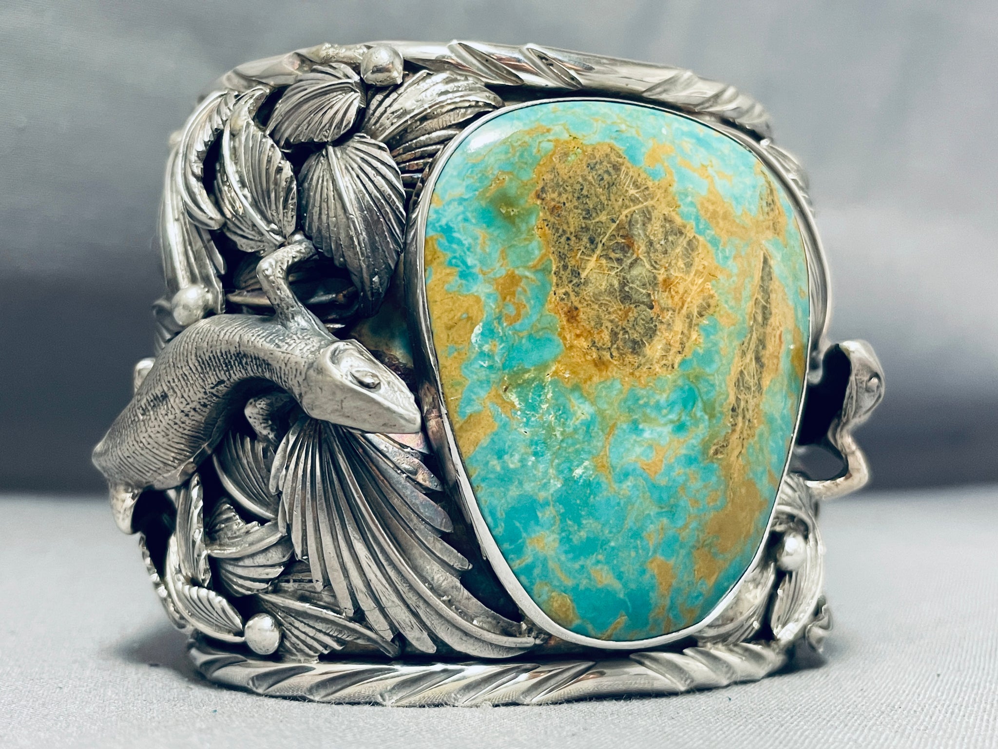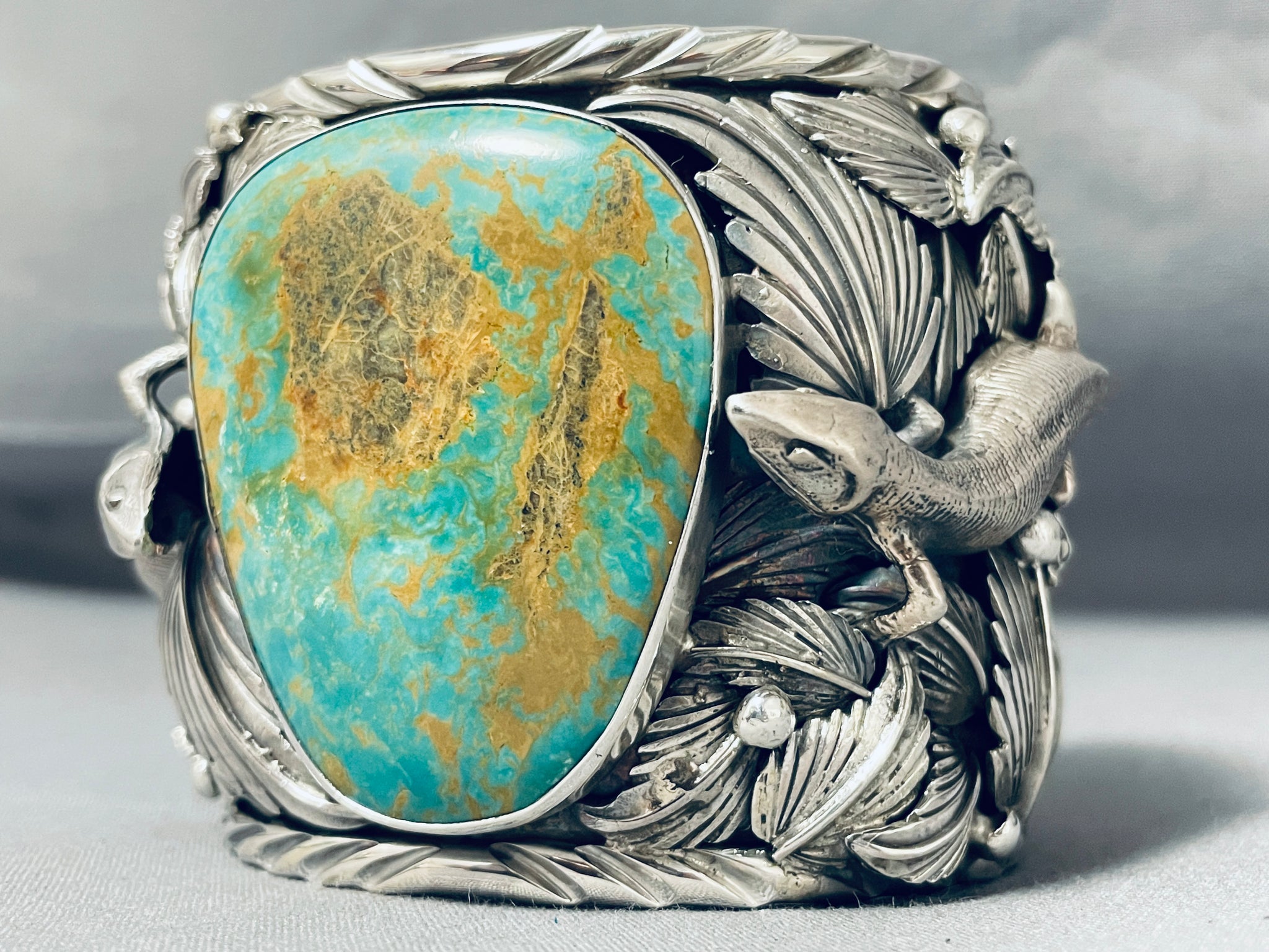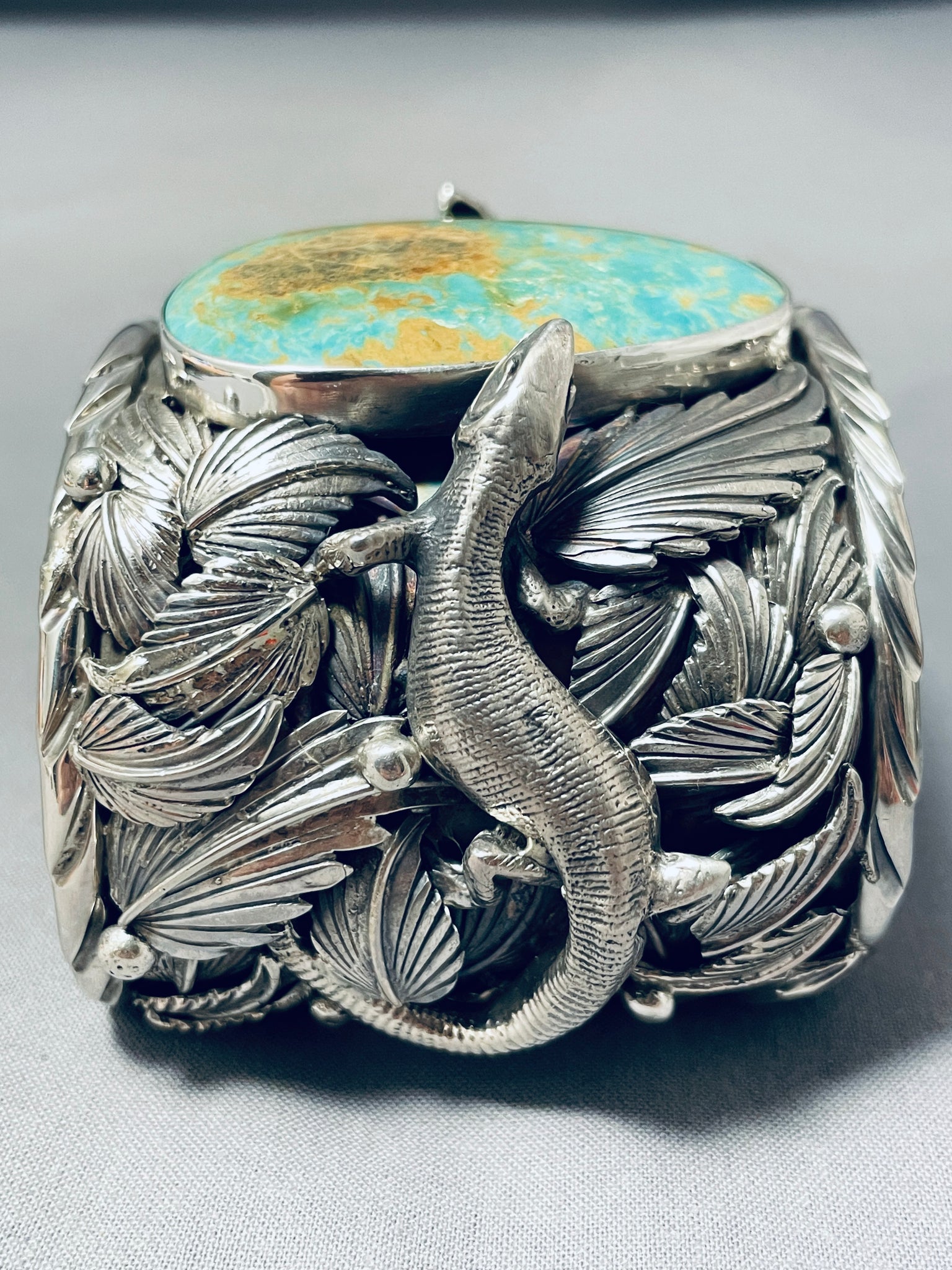 227 Gram Heavy Lizard Royston Turquoise Sterling Silver Bracelet