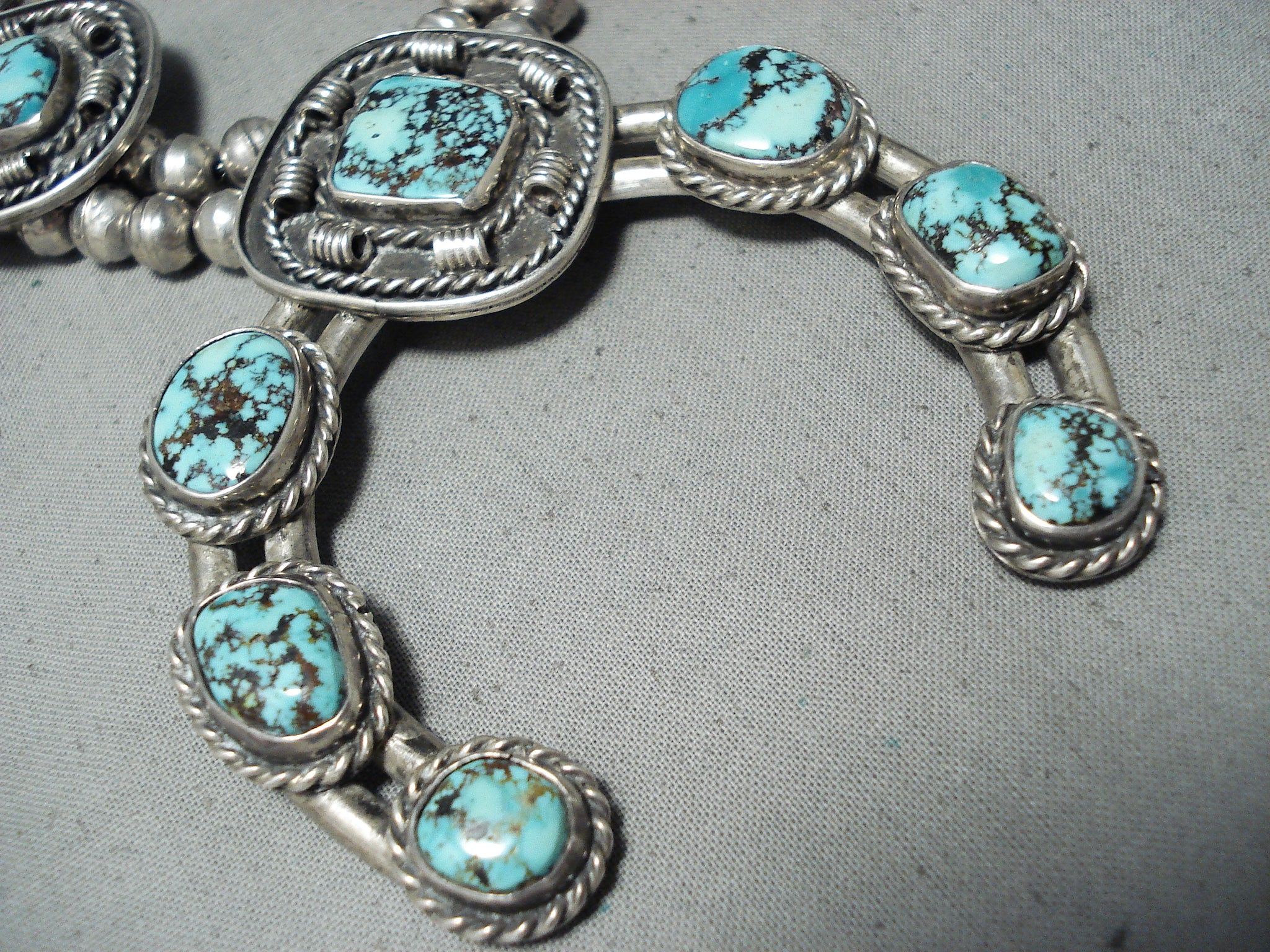 229 Gram Wmen's Vintage Native American Navajo Turquoise Sterling Silver Squash Blossom Necklace