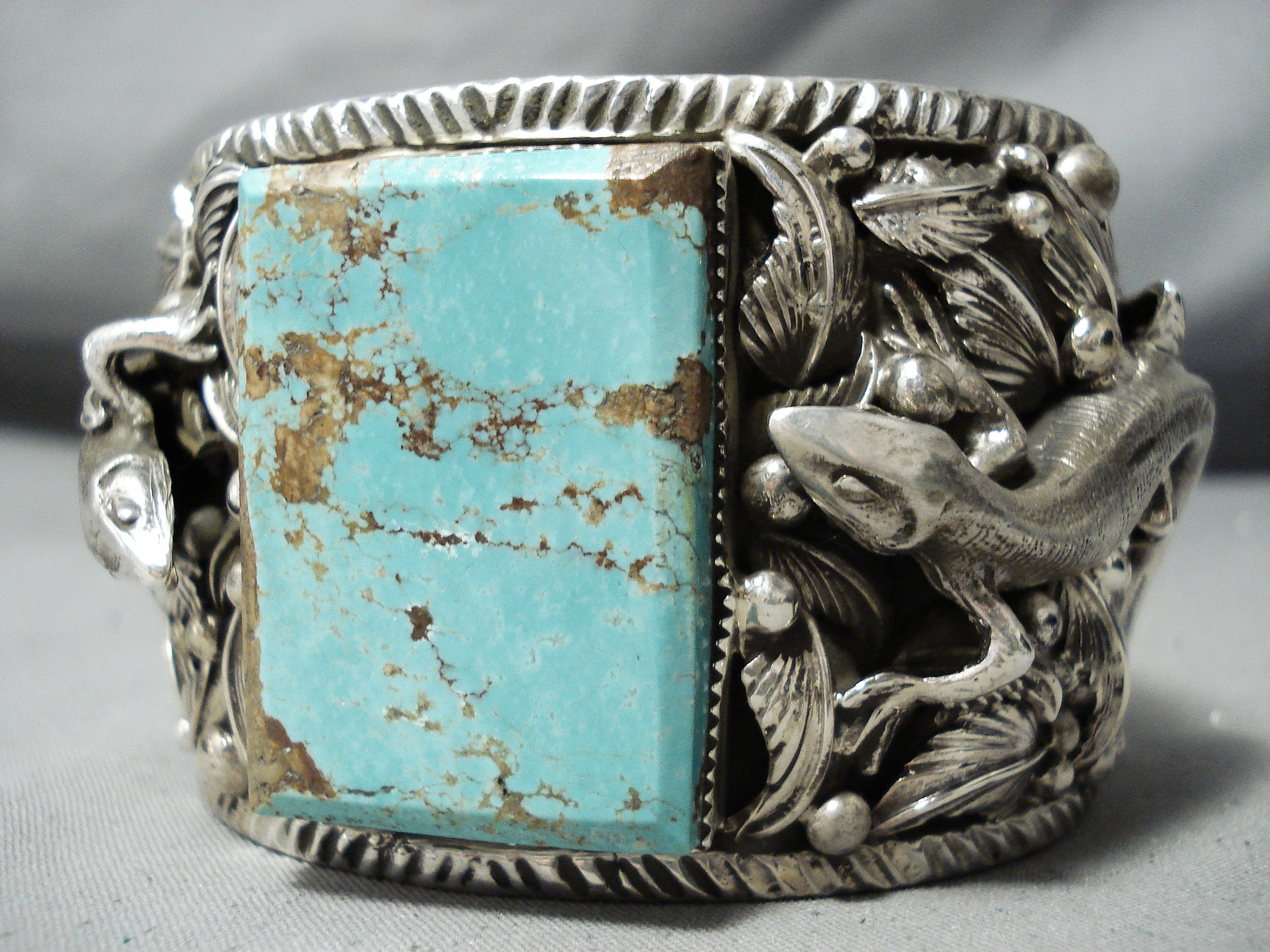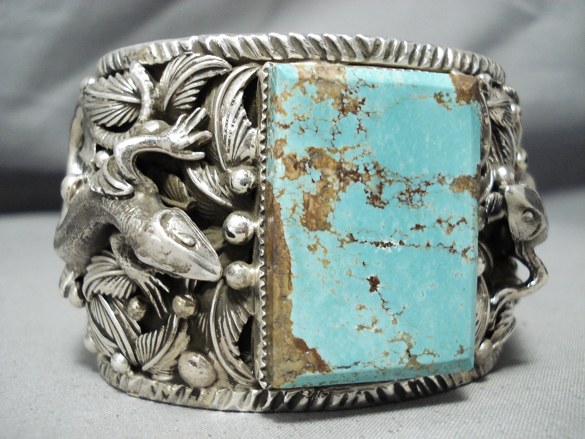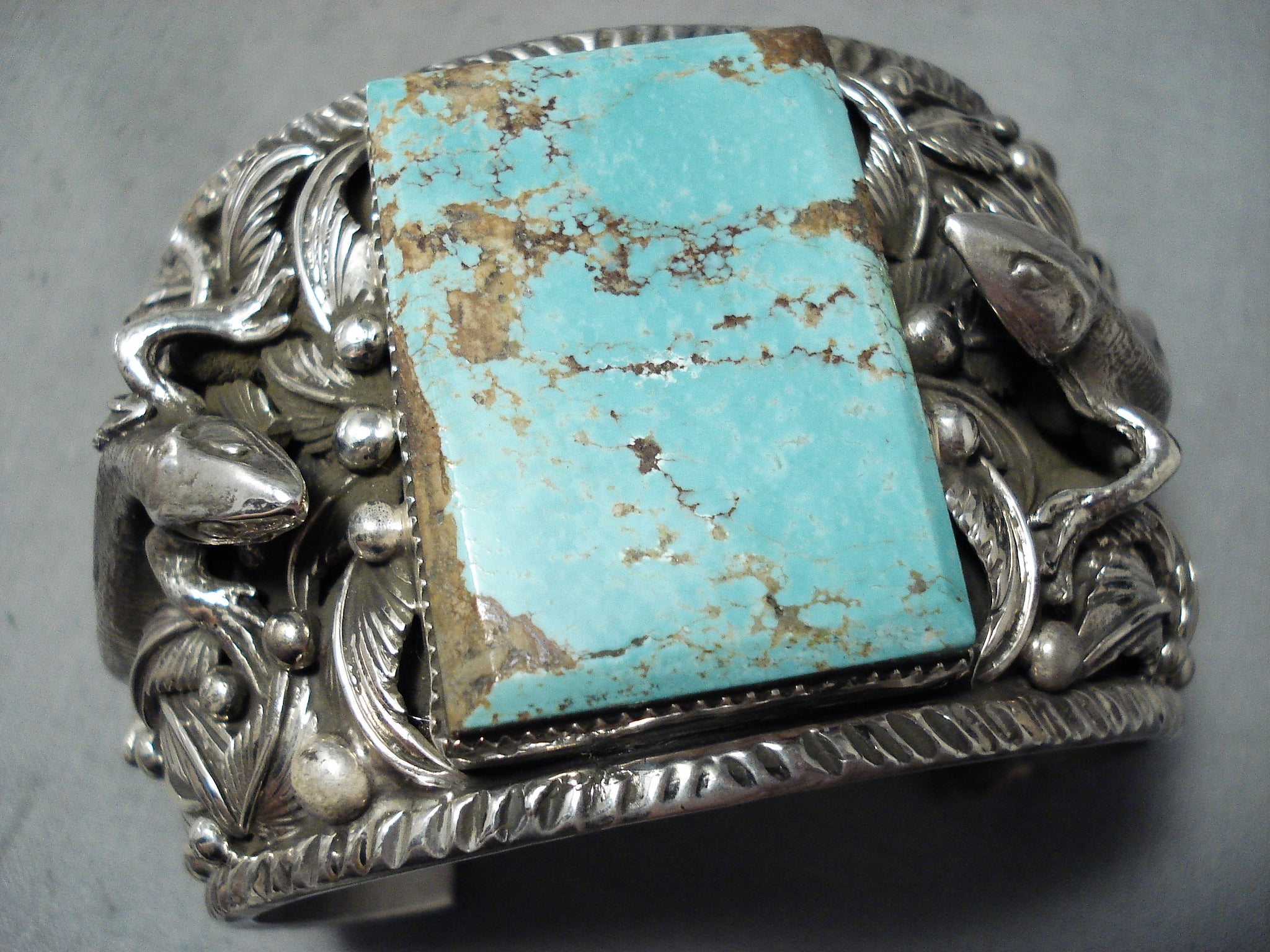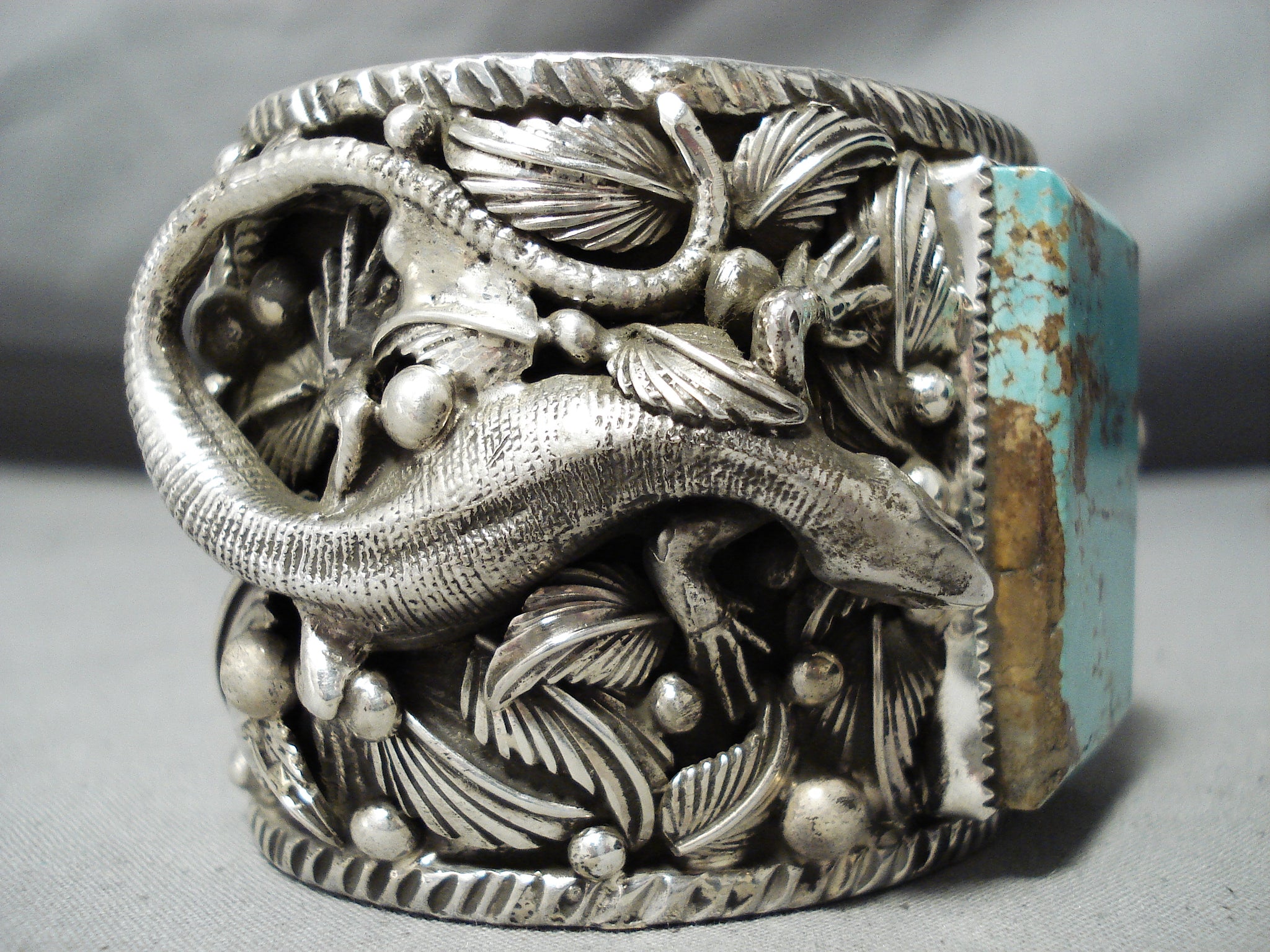 234 Grams Monster Native American Navajo #8 Turquoise Sterling Silver Lizard Bracelet