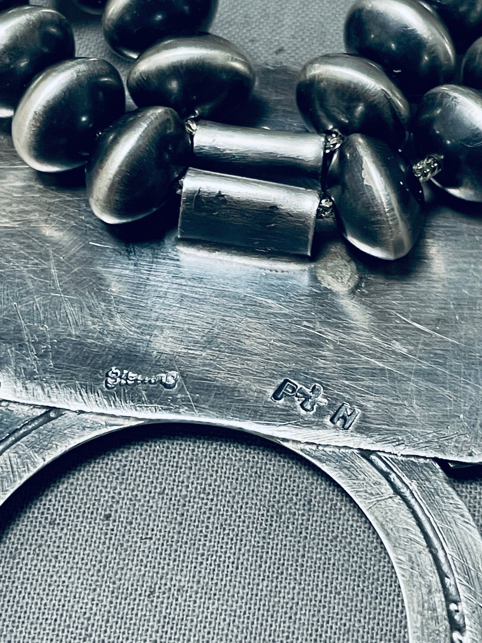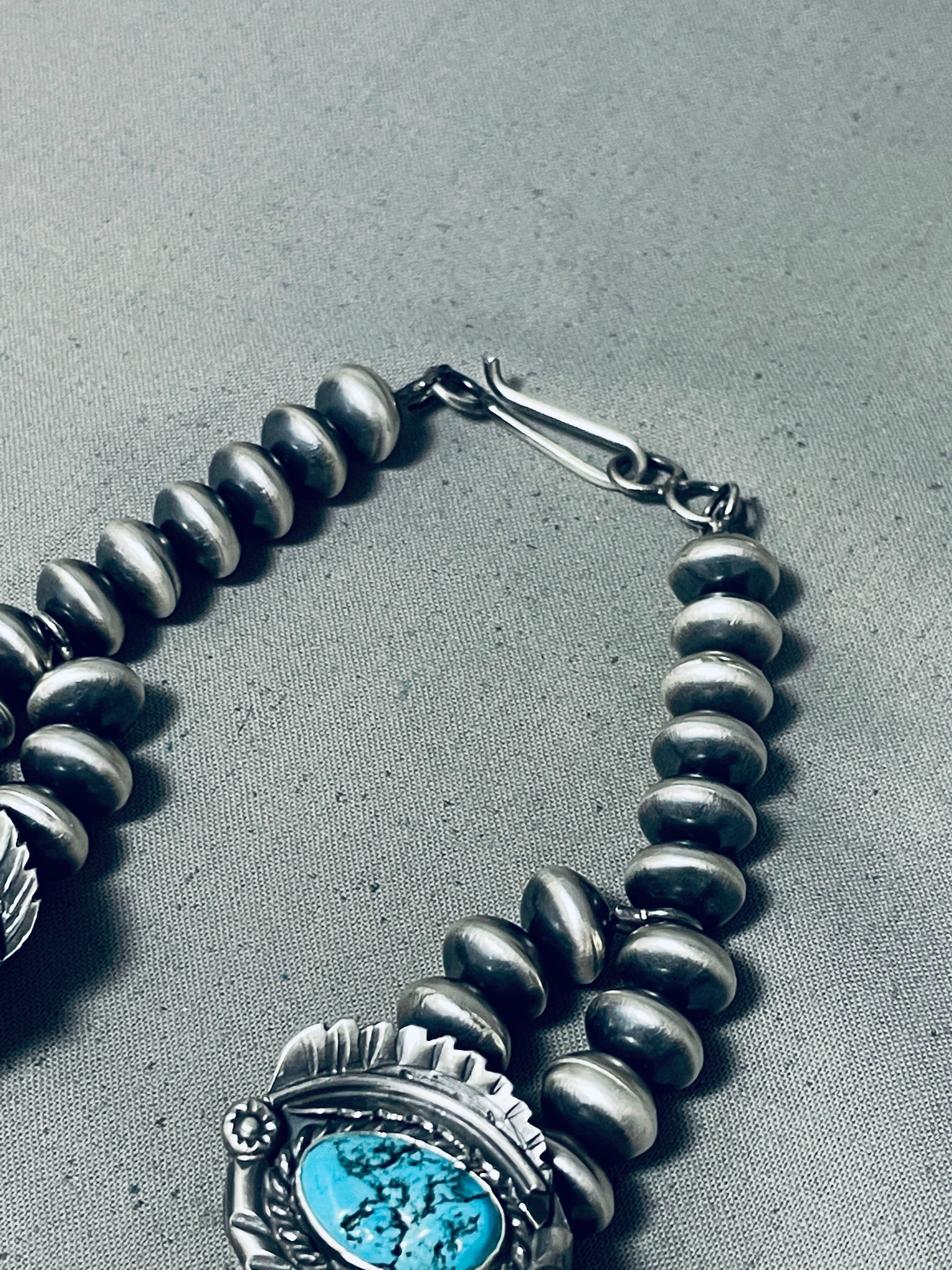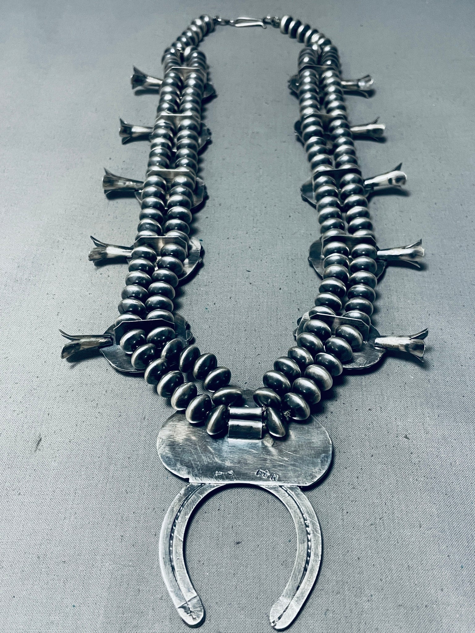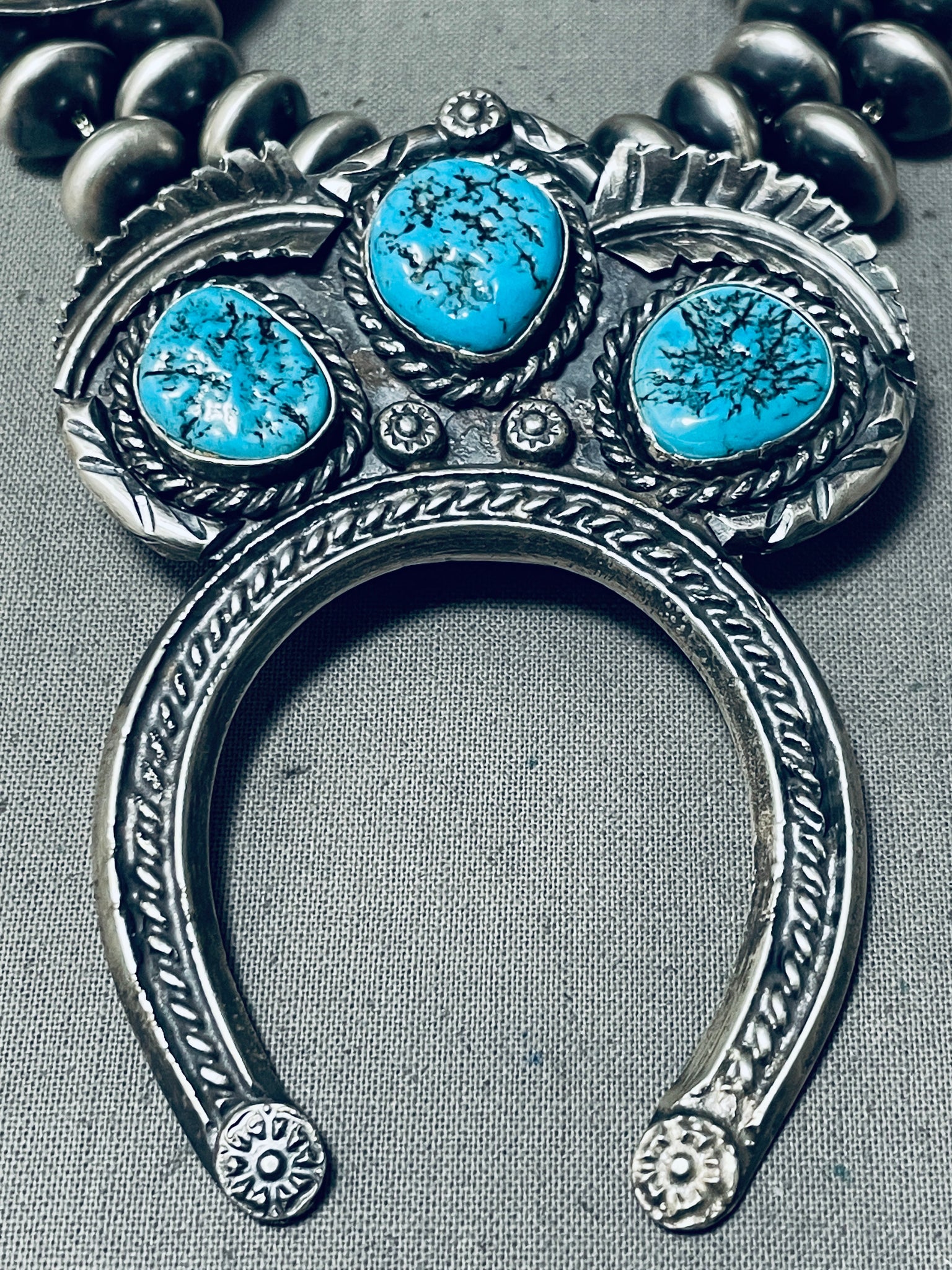 284 Gram Women's Native American Navajo Hand Sterling Silver Turquoise Squash Blossom Necklace