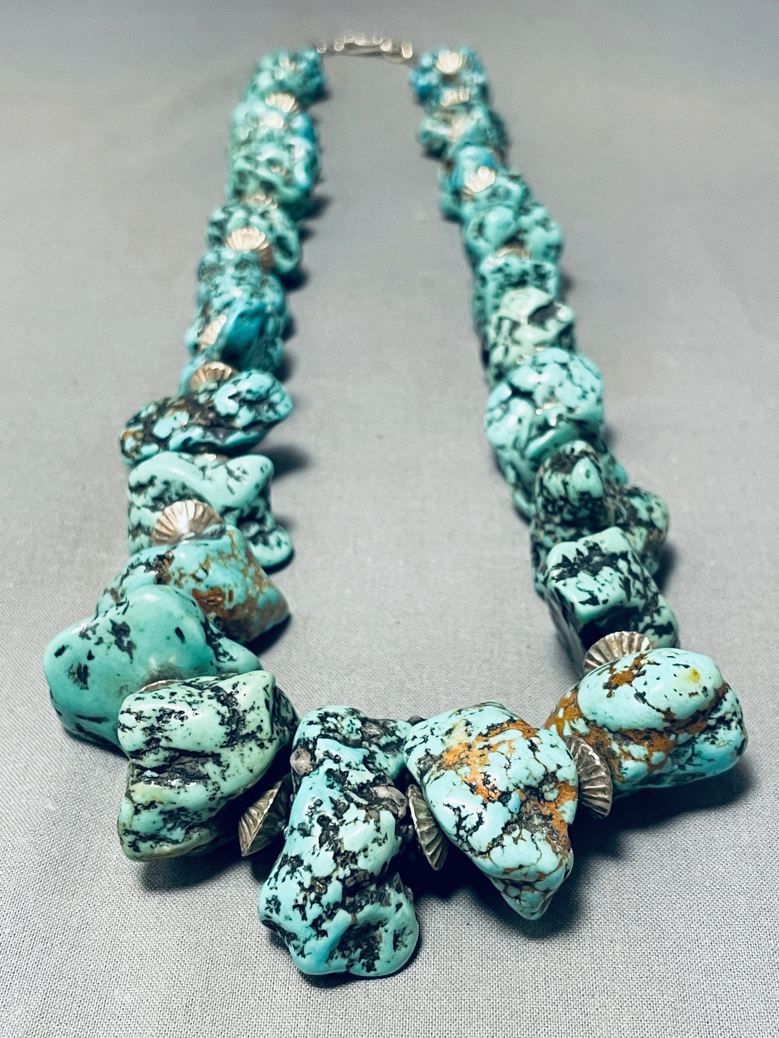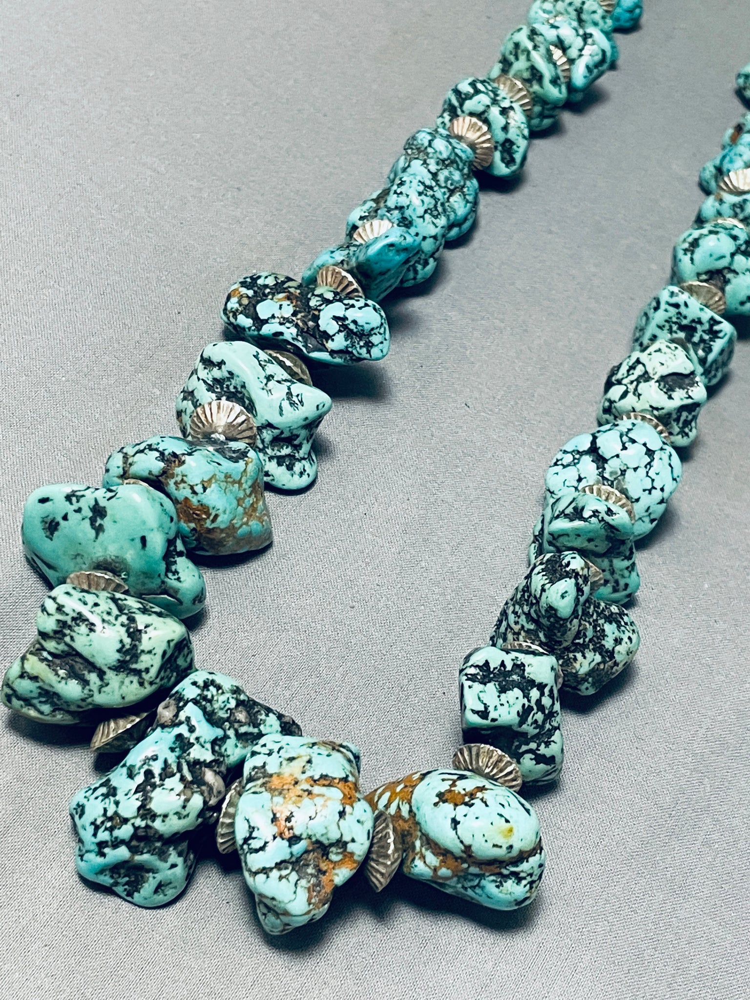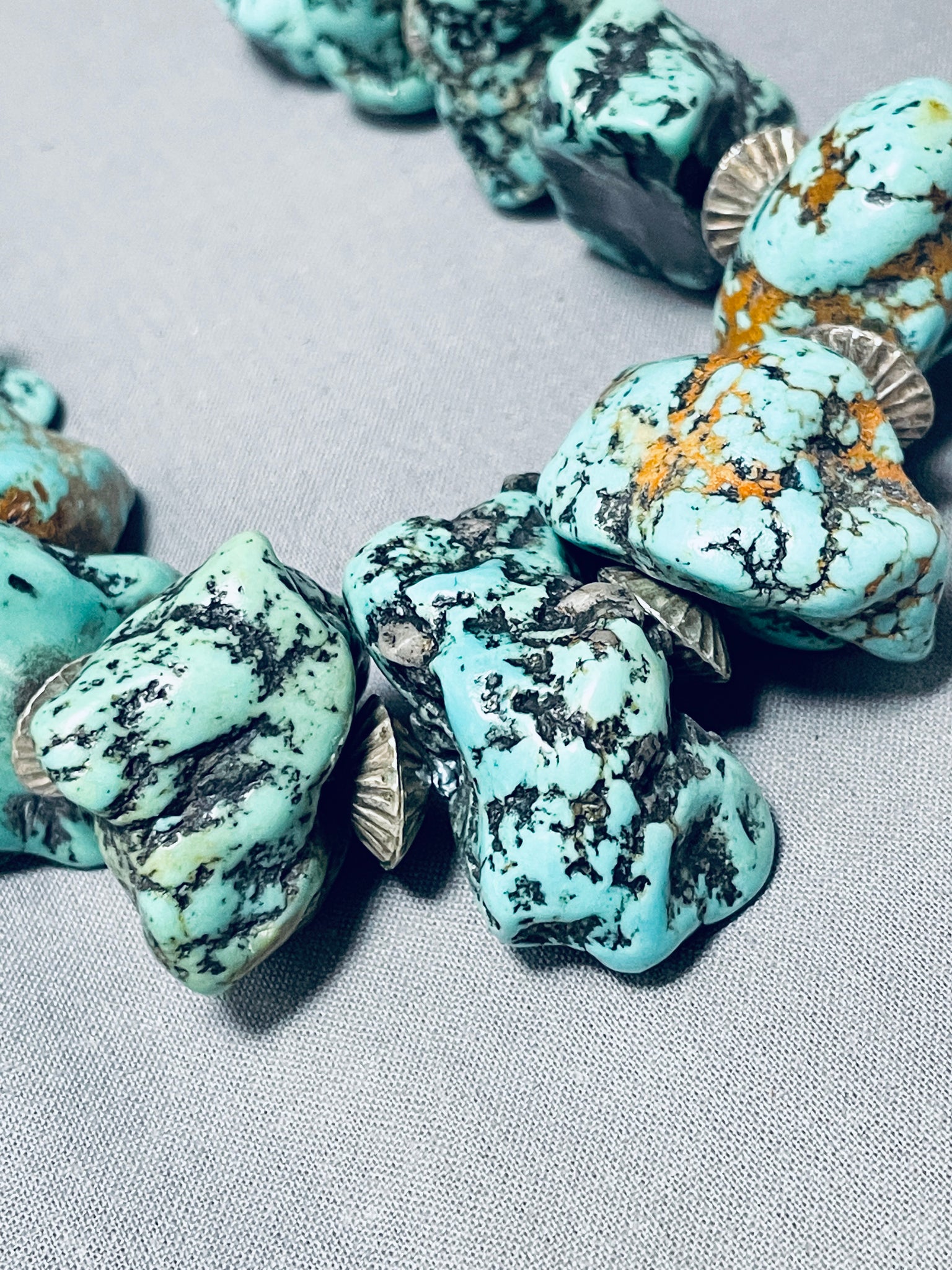 285 Gram Chunky Turquoise Vintage Native American Navajo Sterling Silver Necklace