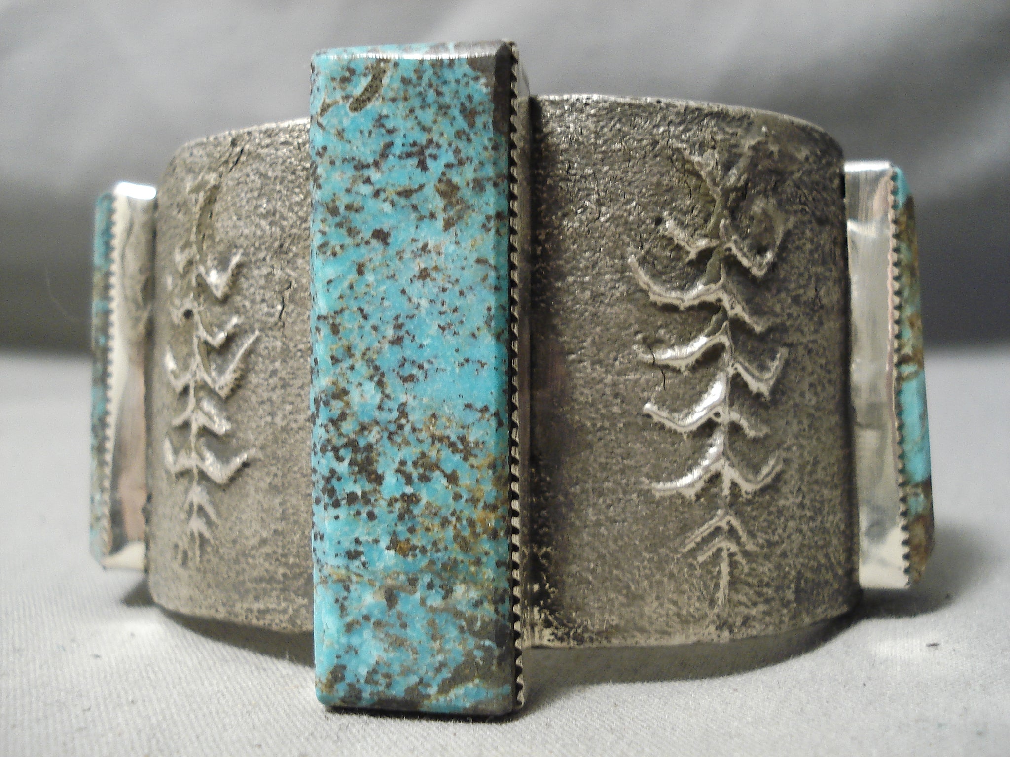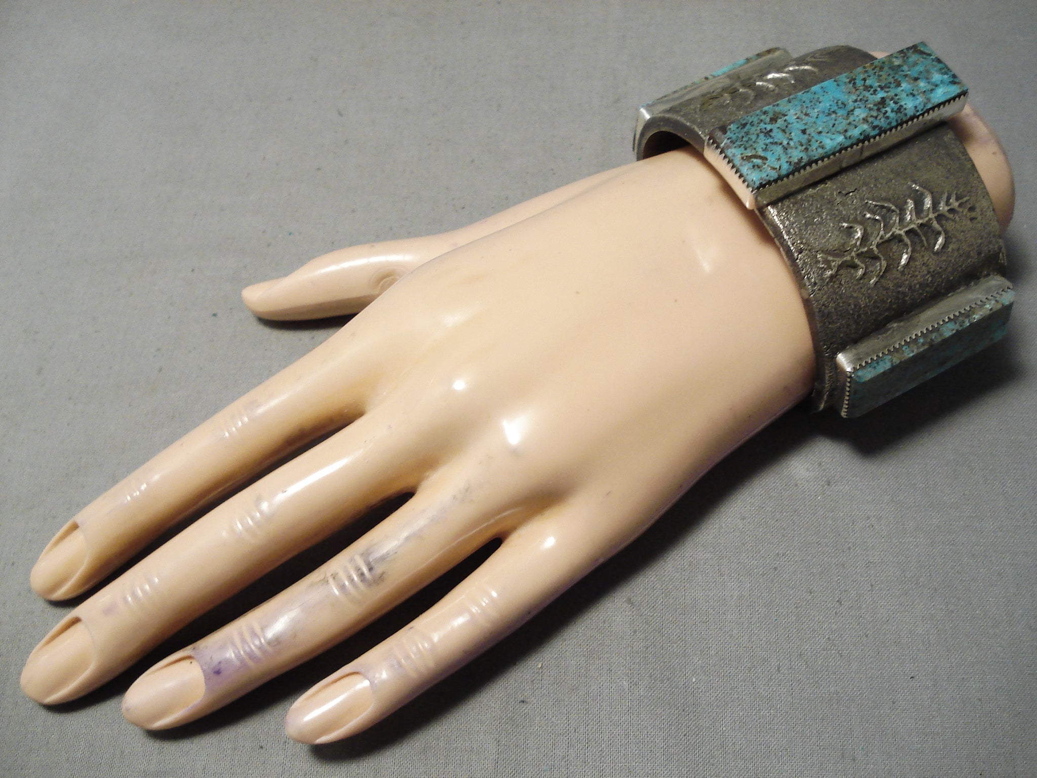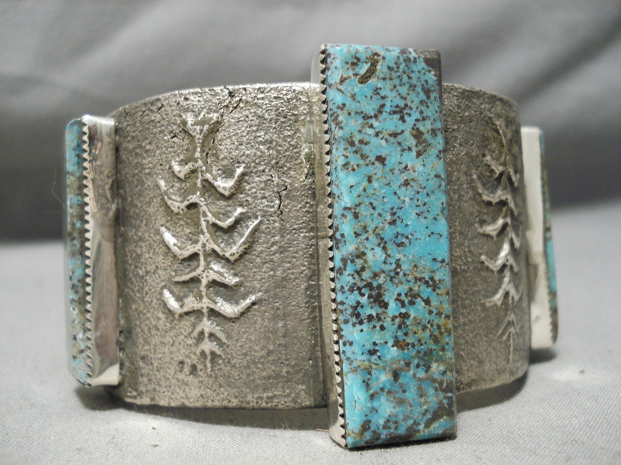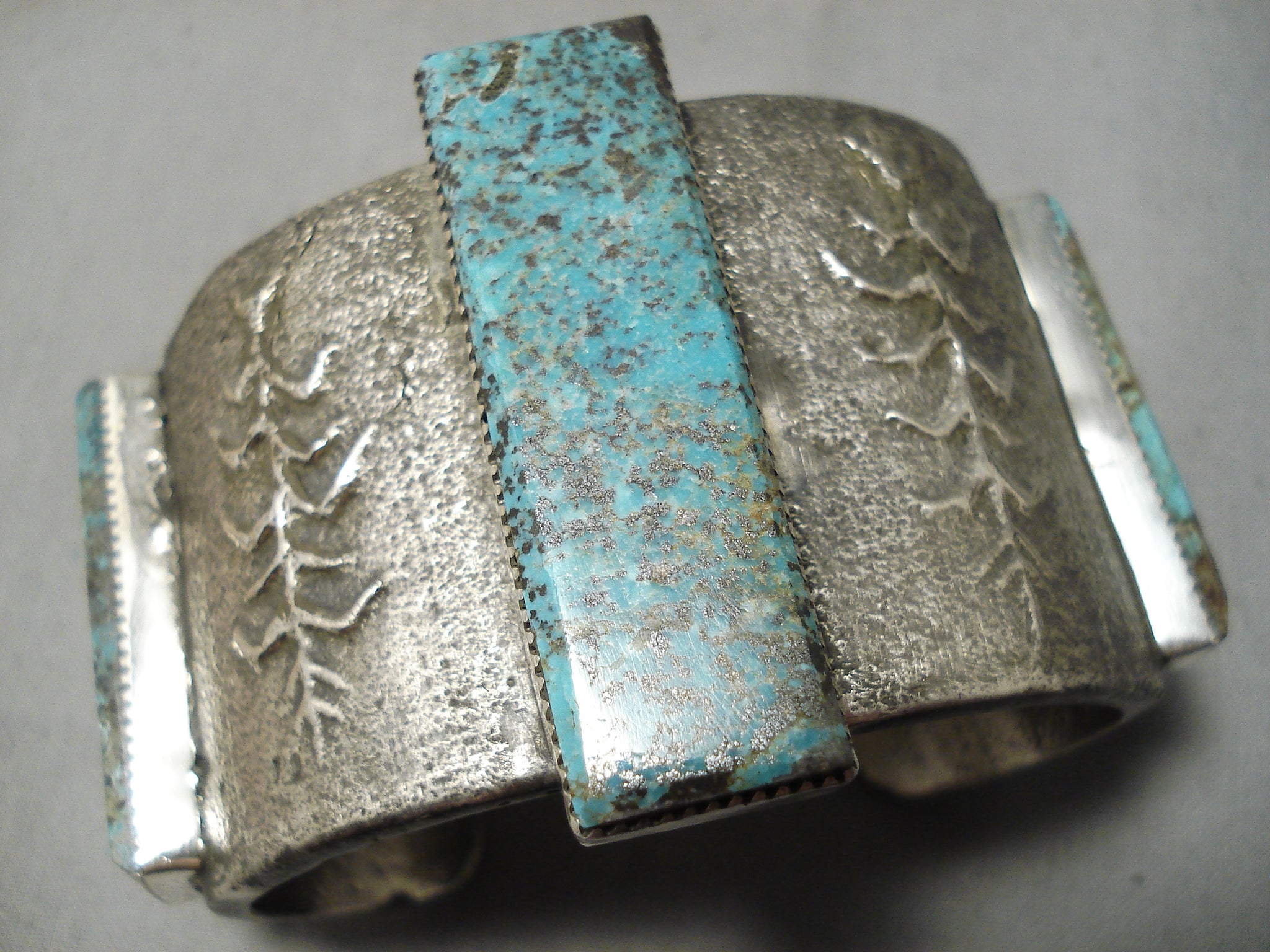 285 Gram Native American Hefty Turquoise Sterling Silver Bracelet Cuff