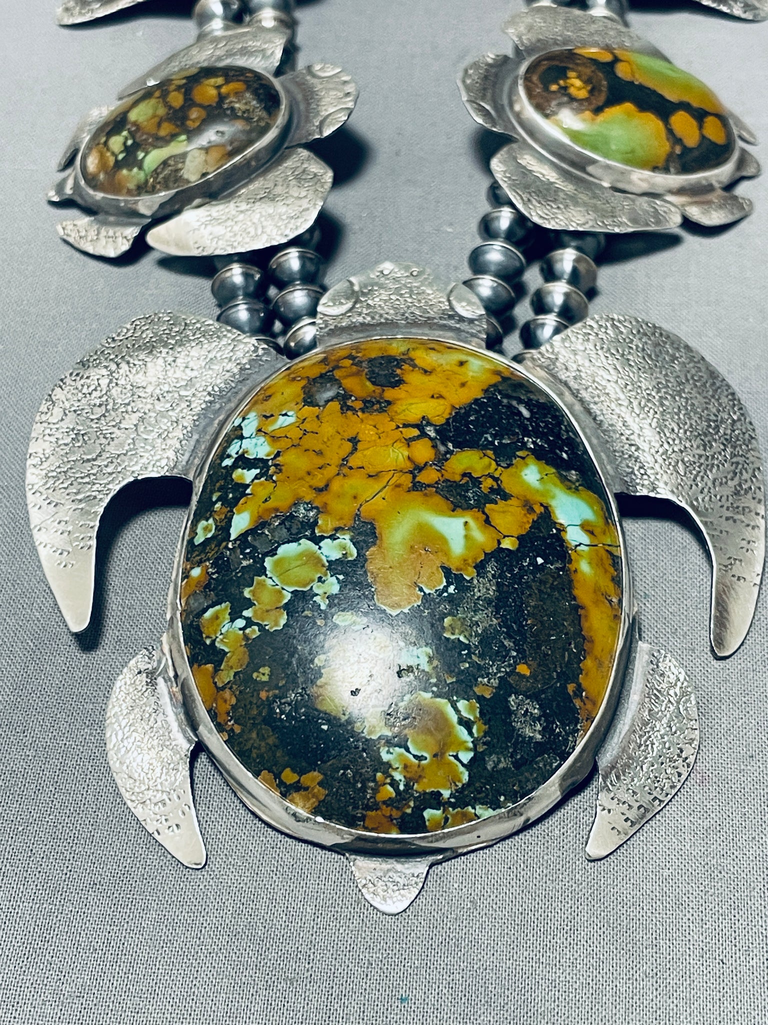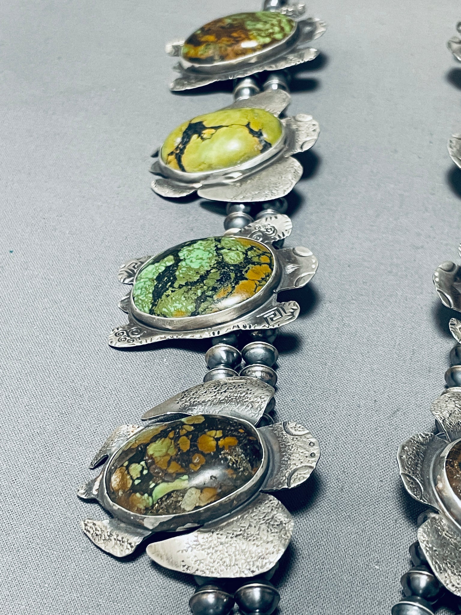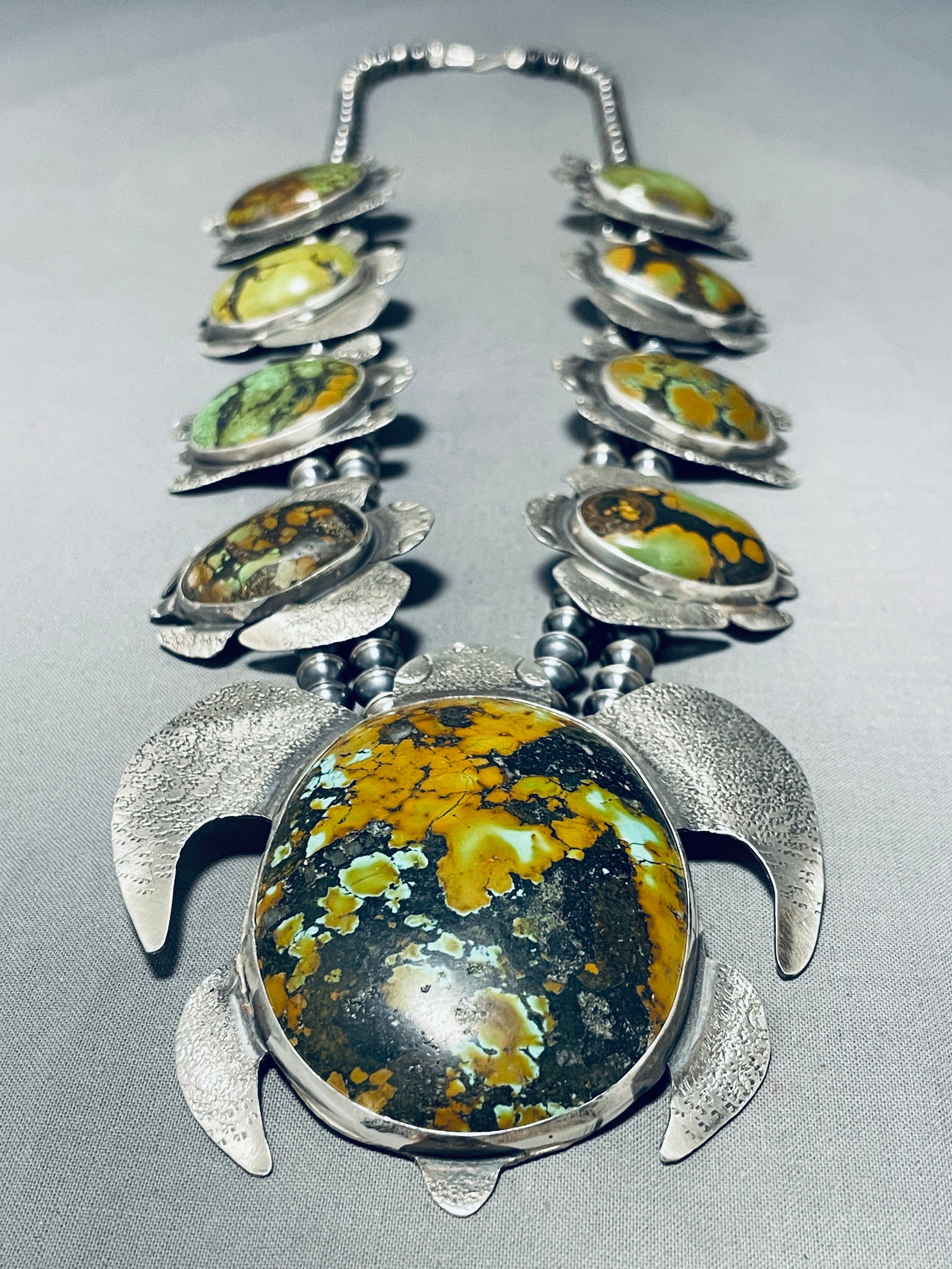 289 Grams Native American Navajo Turquoise Turtle Sterling Silver Squash Blossom Necklaces