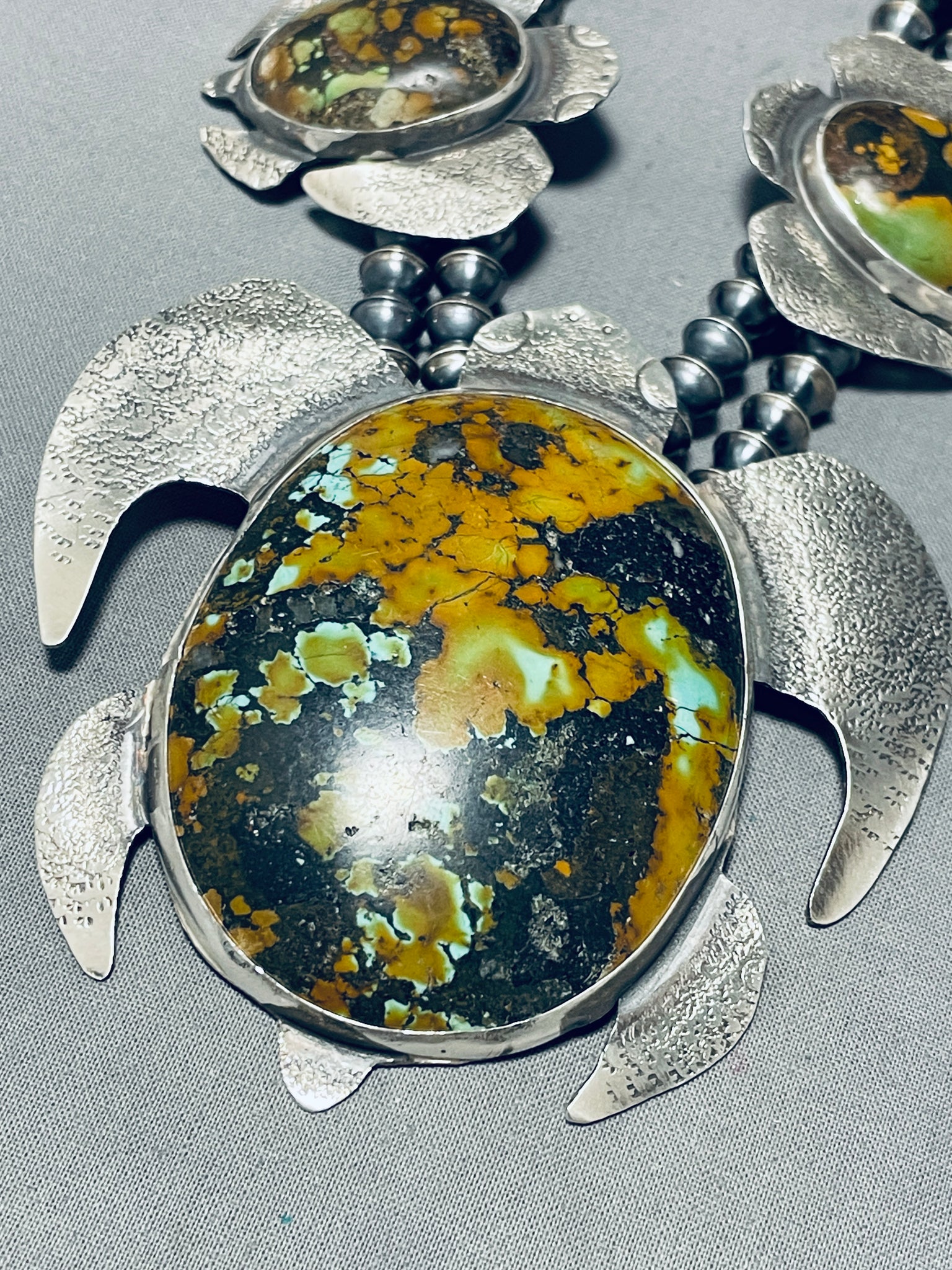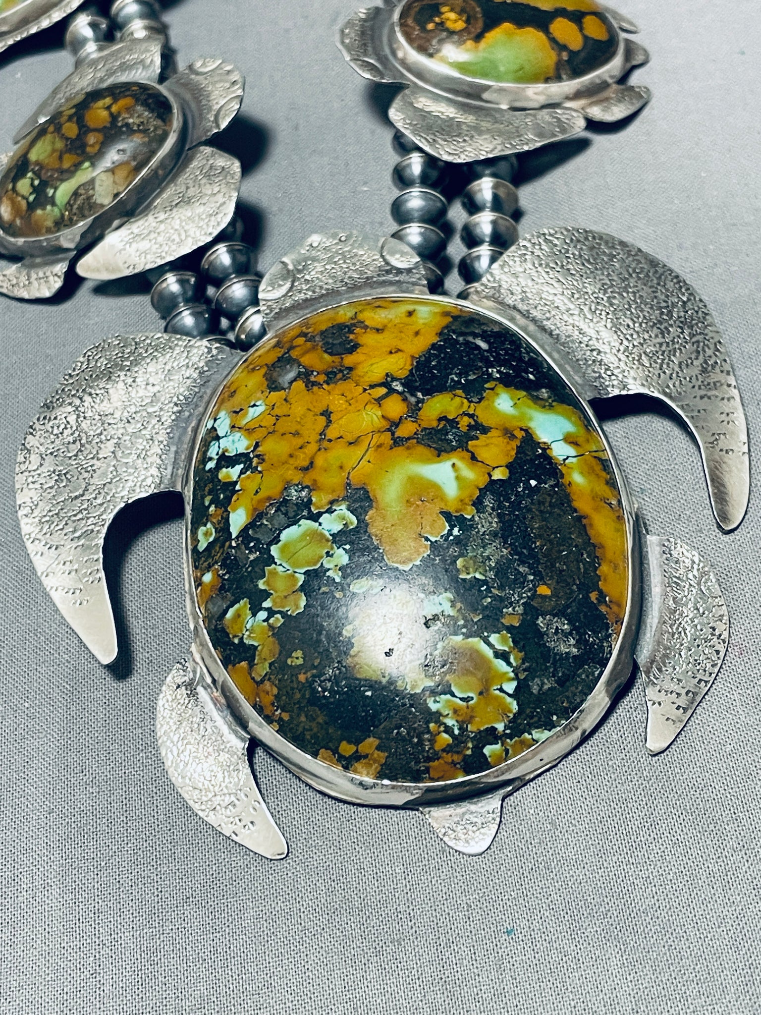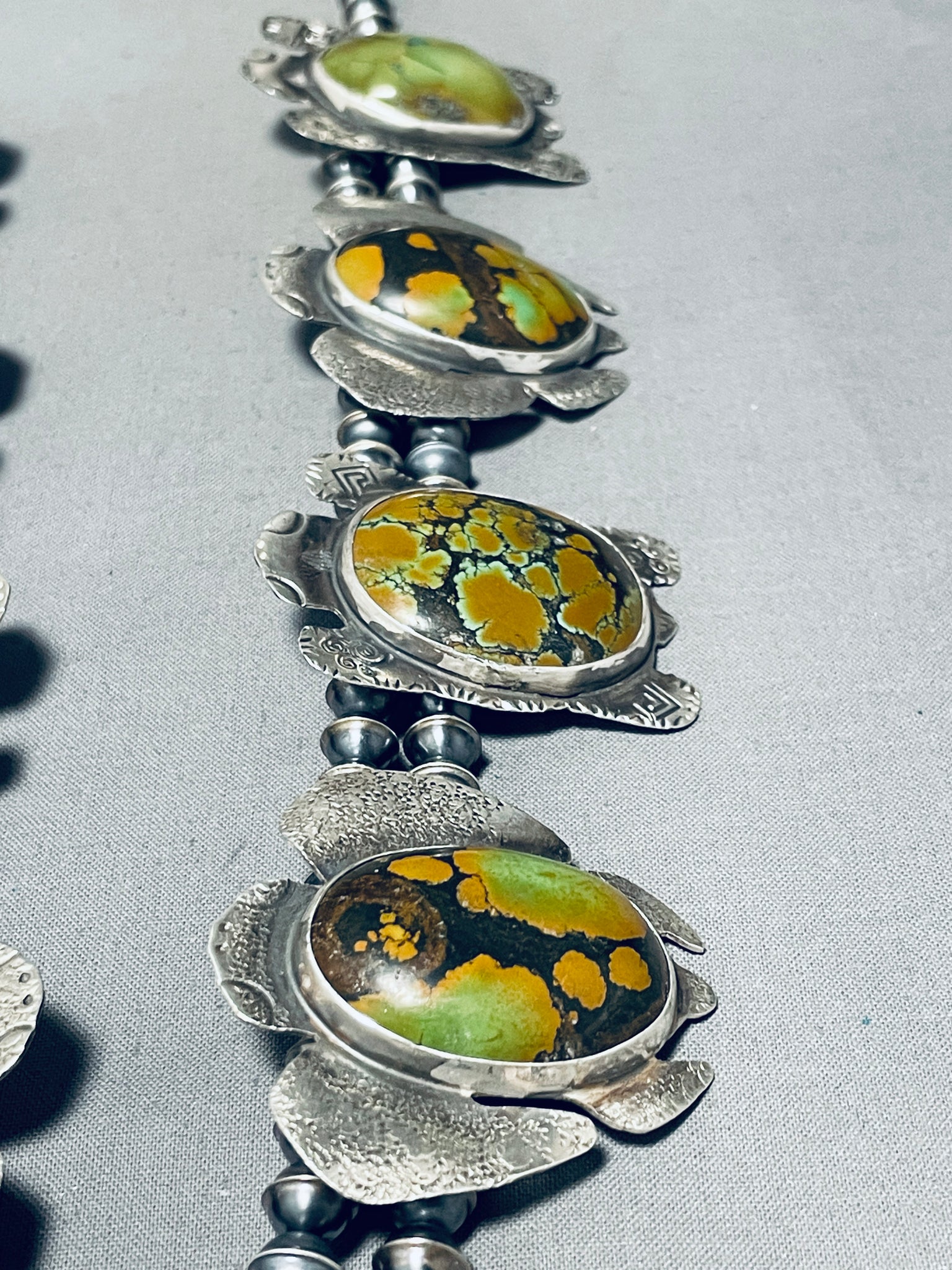289 Grams Native American Navajo Turquoise Turtle Sterling Silver Squash Blossom Necklaces