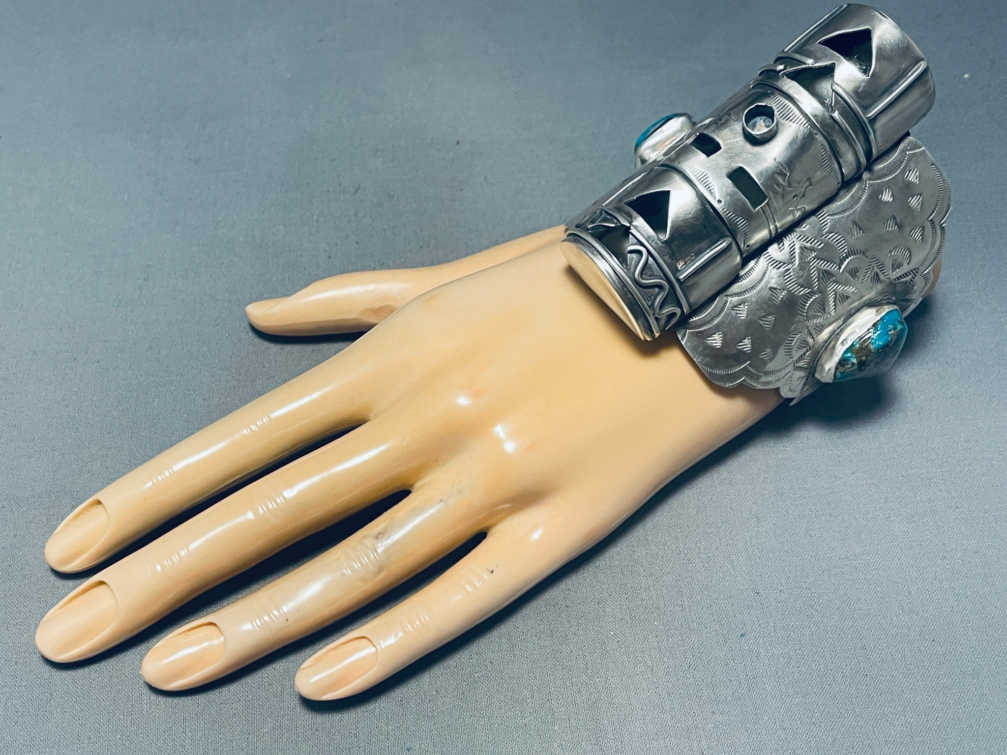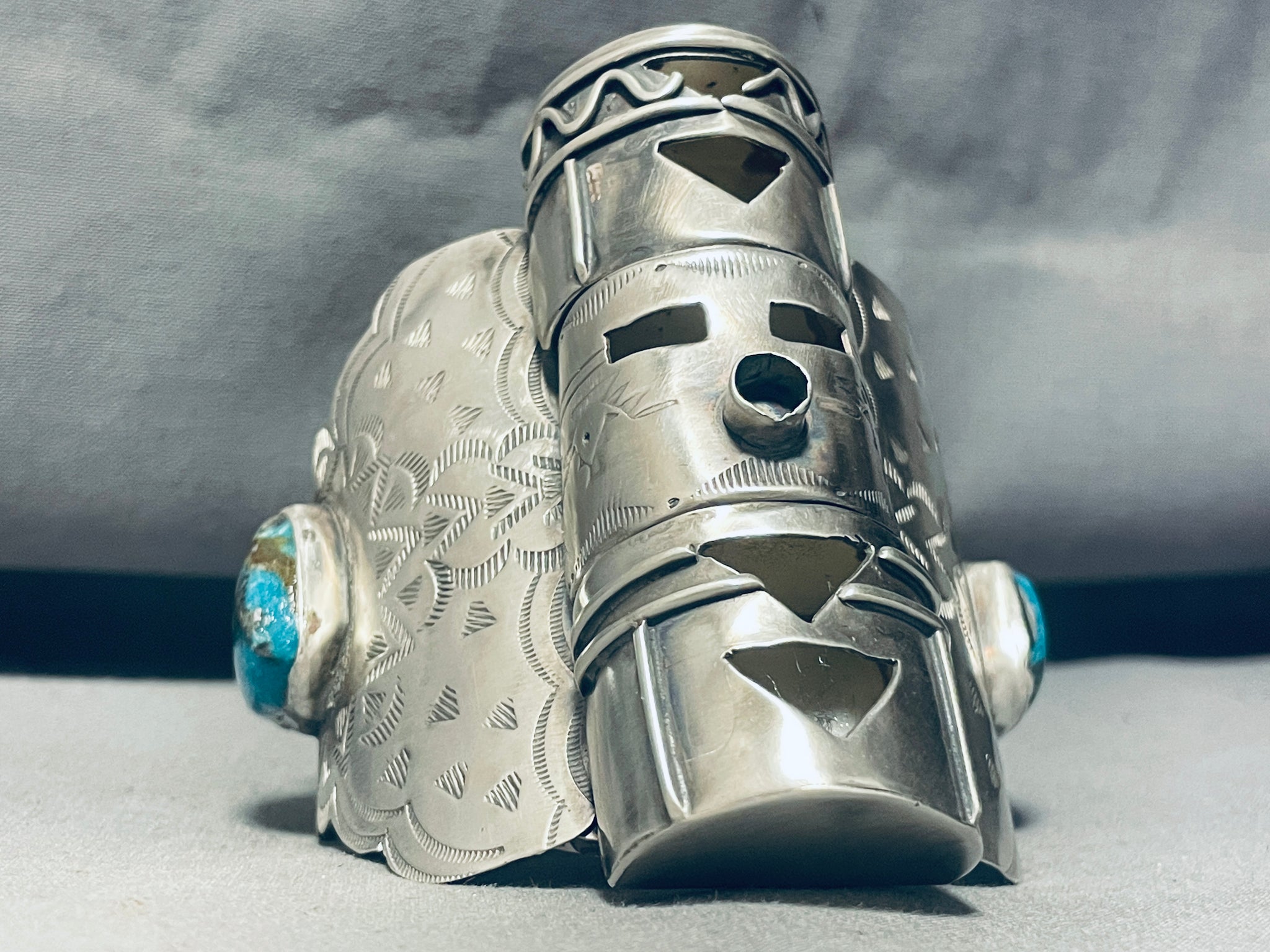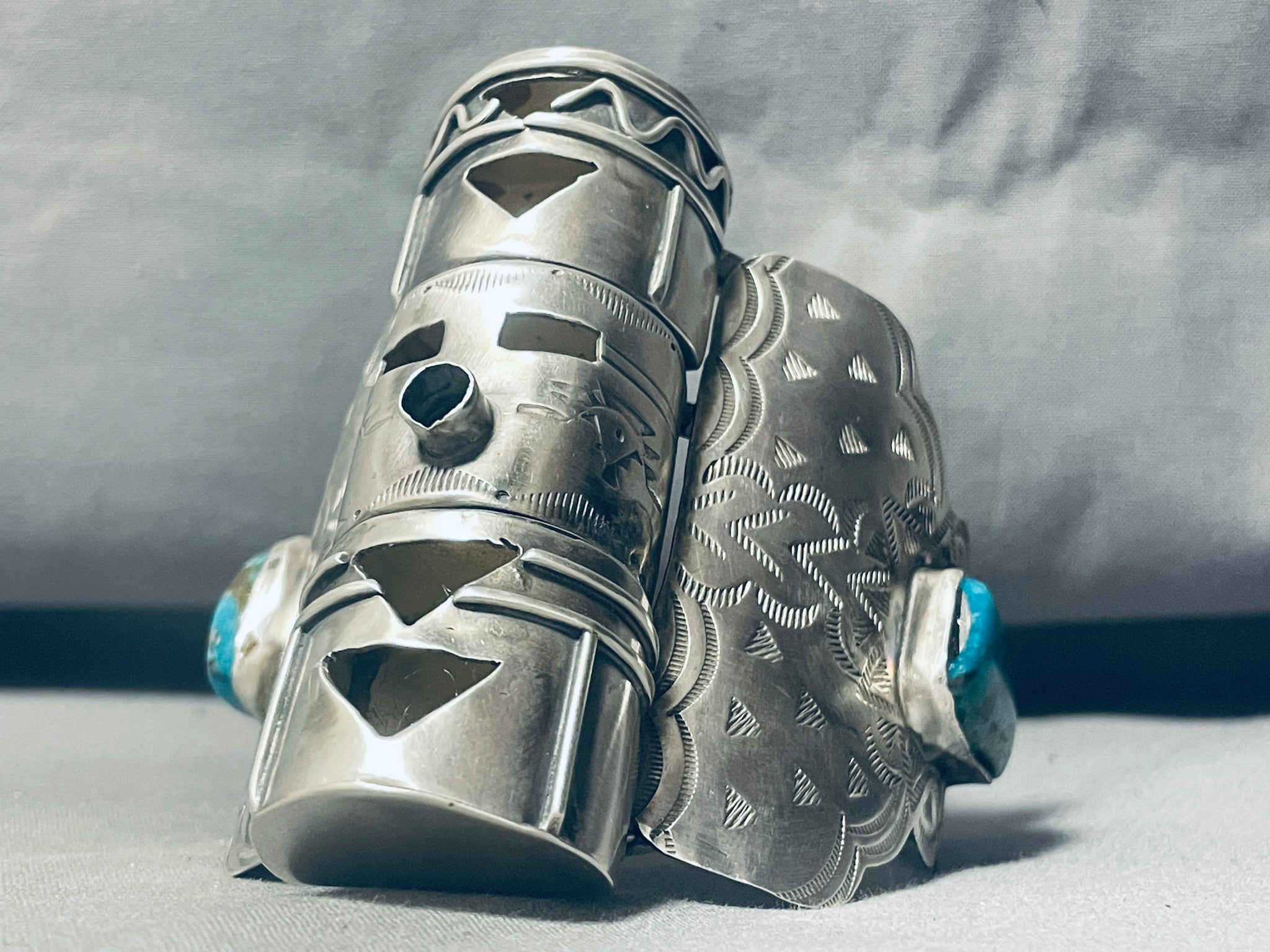3 Story Kachina Native American Navajo Turquoise Sterling Silver Bracelet