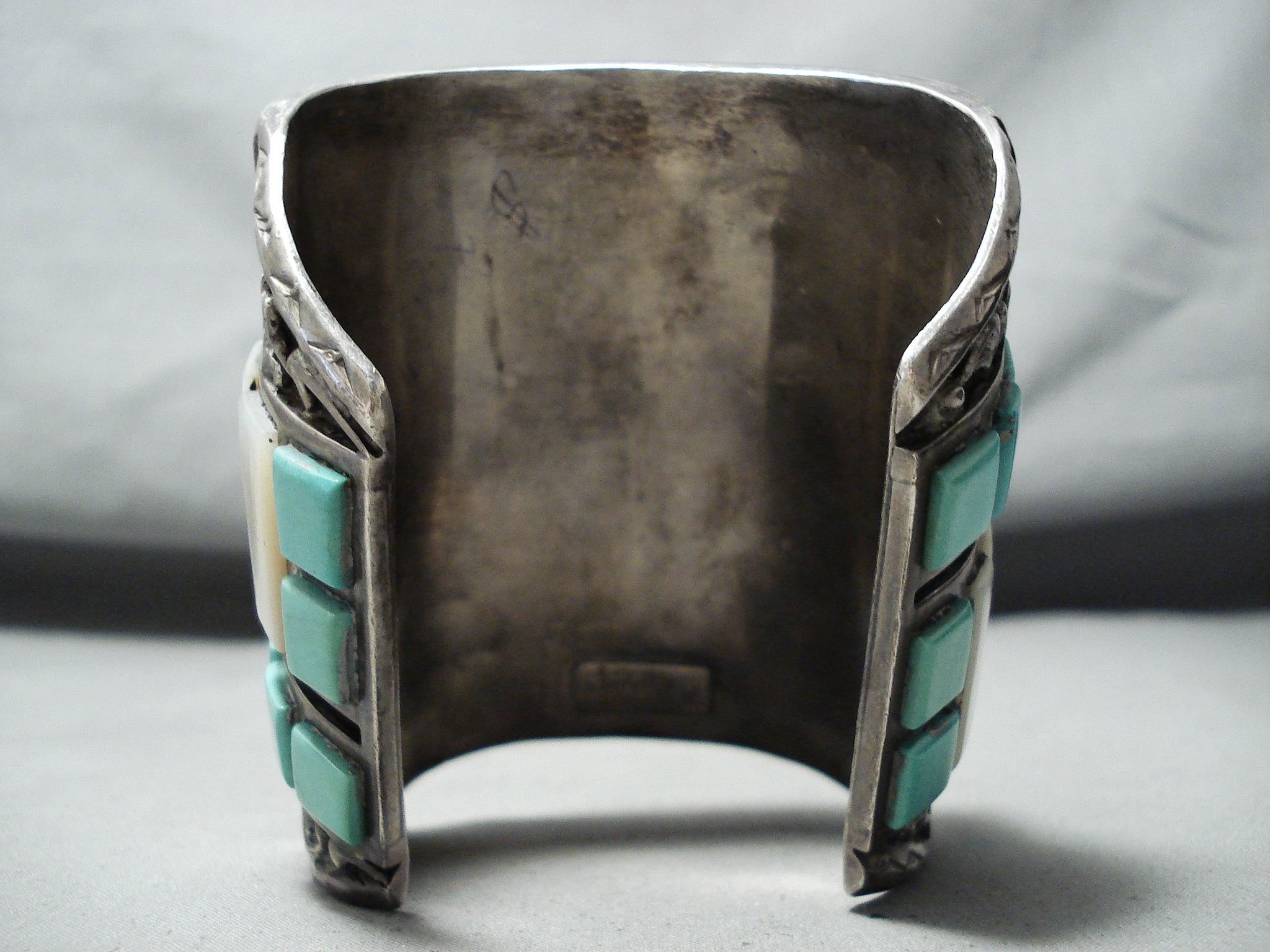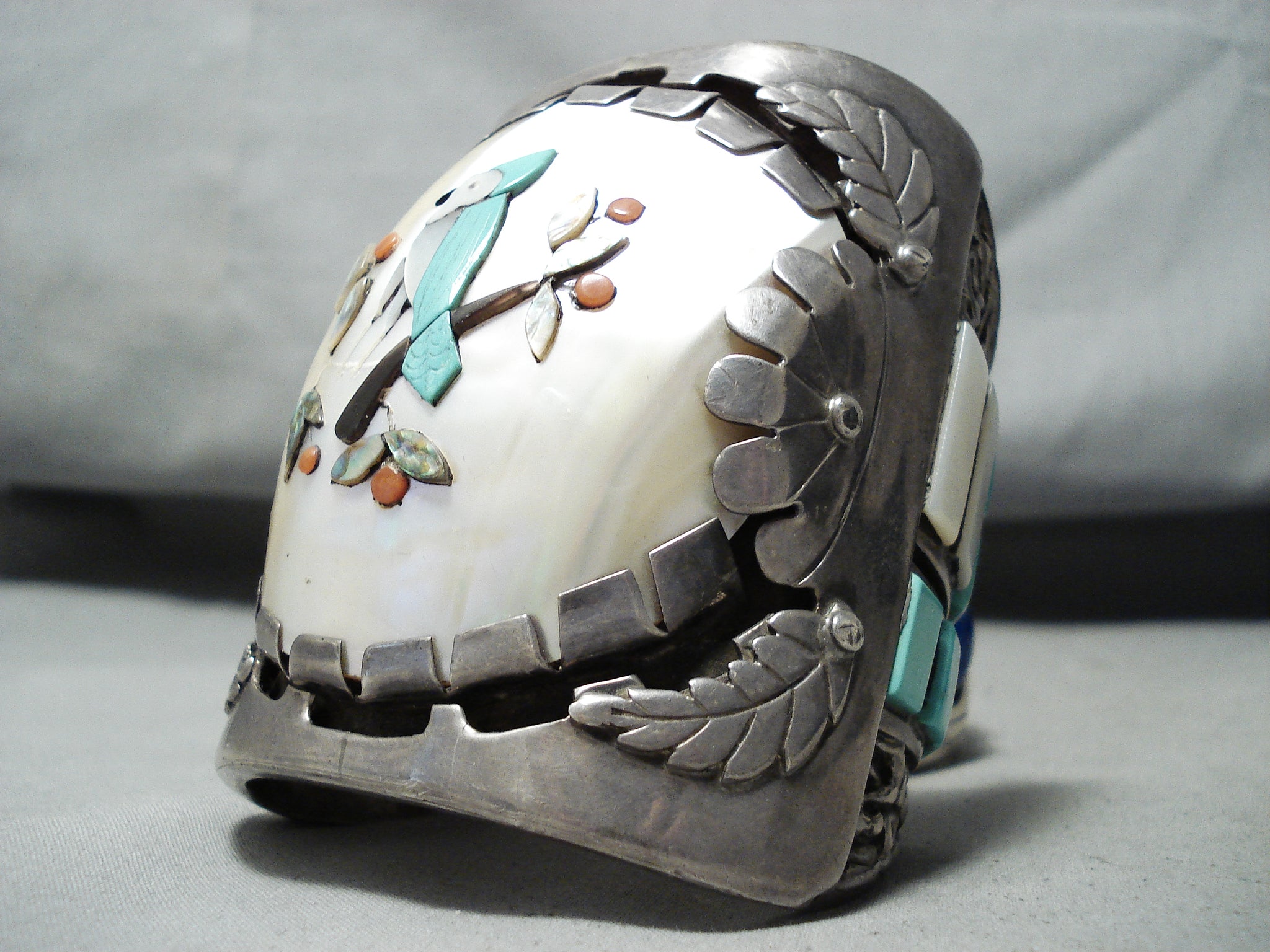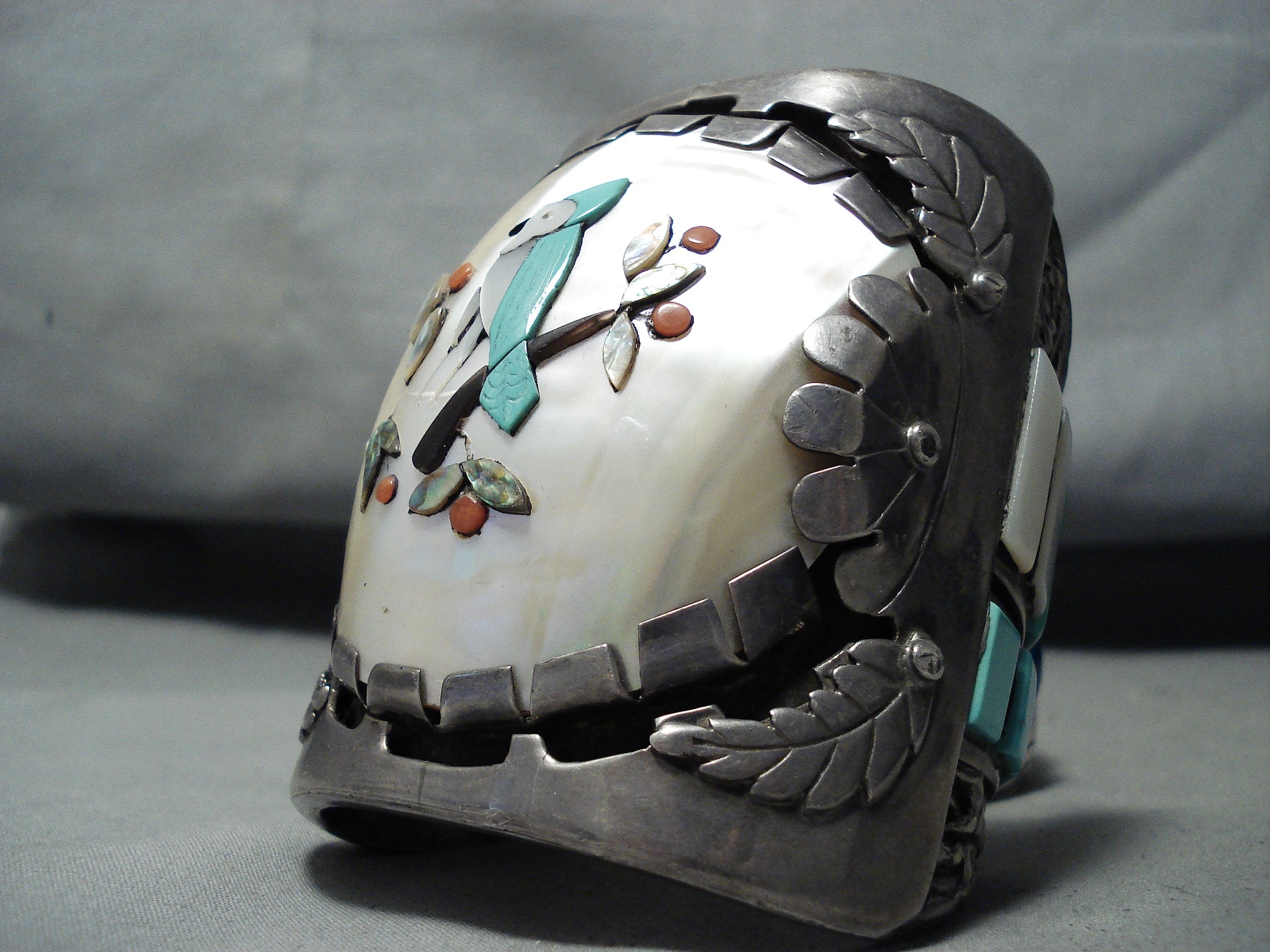 300 Gram Best Vintage Native American Zuni Bird Turquoise Inlay Sterling Silver Bracelet