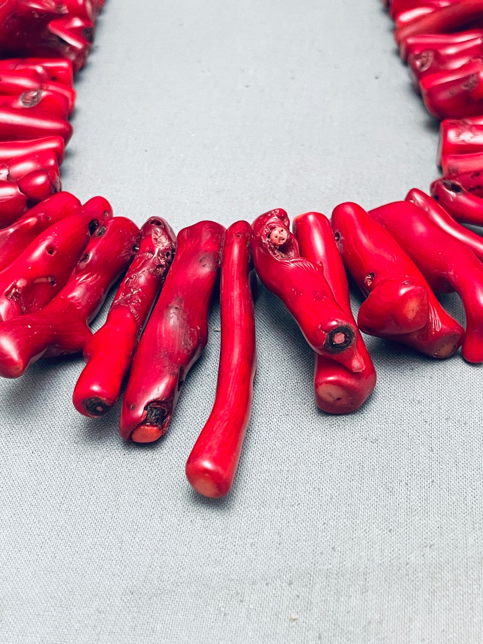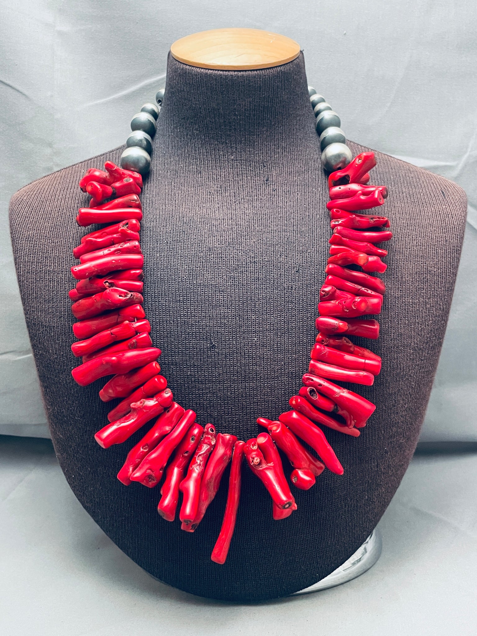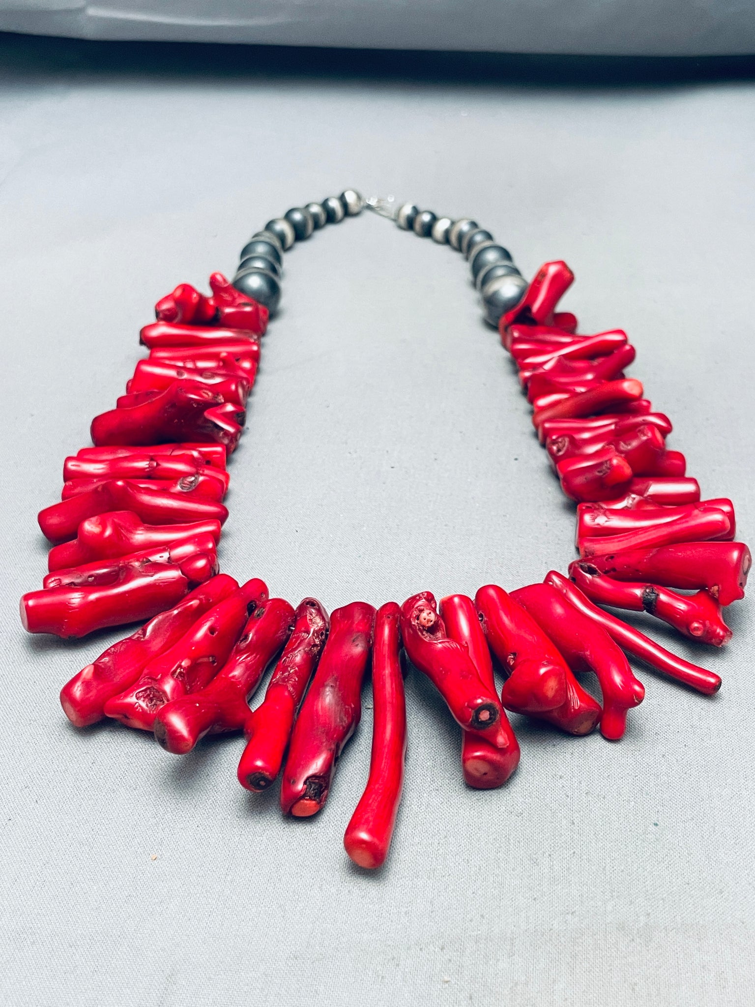 305 Grams Gorsous Native American Navajo Coral Sterling Silver Bead Necklace