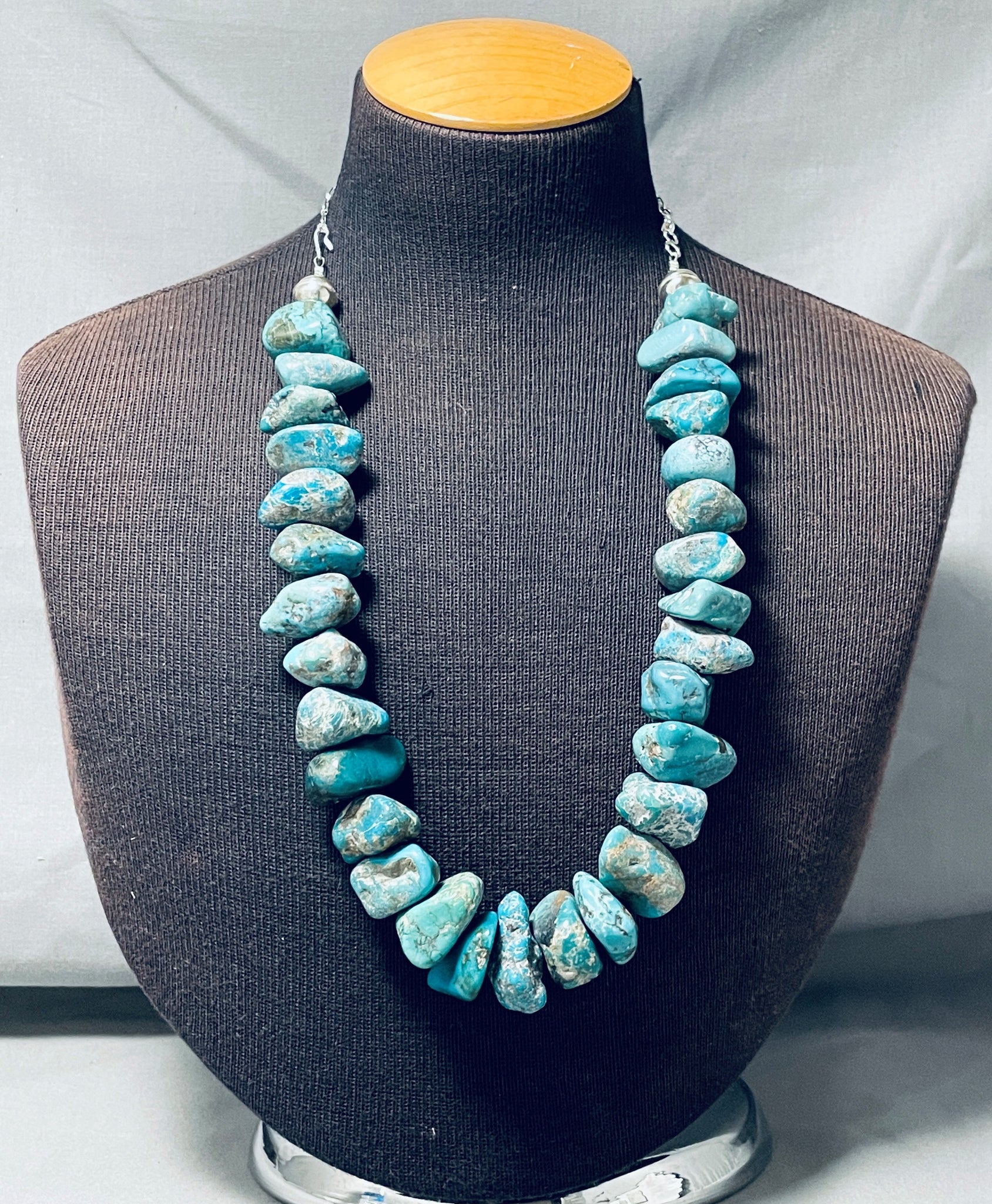 308 Gram Mind Blowing Native American Navajo Turquoise Nugget Sterling Silver Tube Necklace