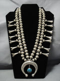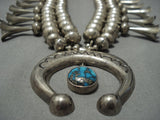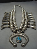 317 Gram!! Vintage Native American Jewelry Navajo Turquoise Sterling Silver Squash Blossom Necklace