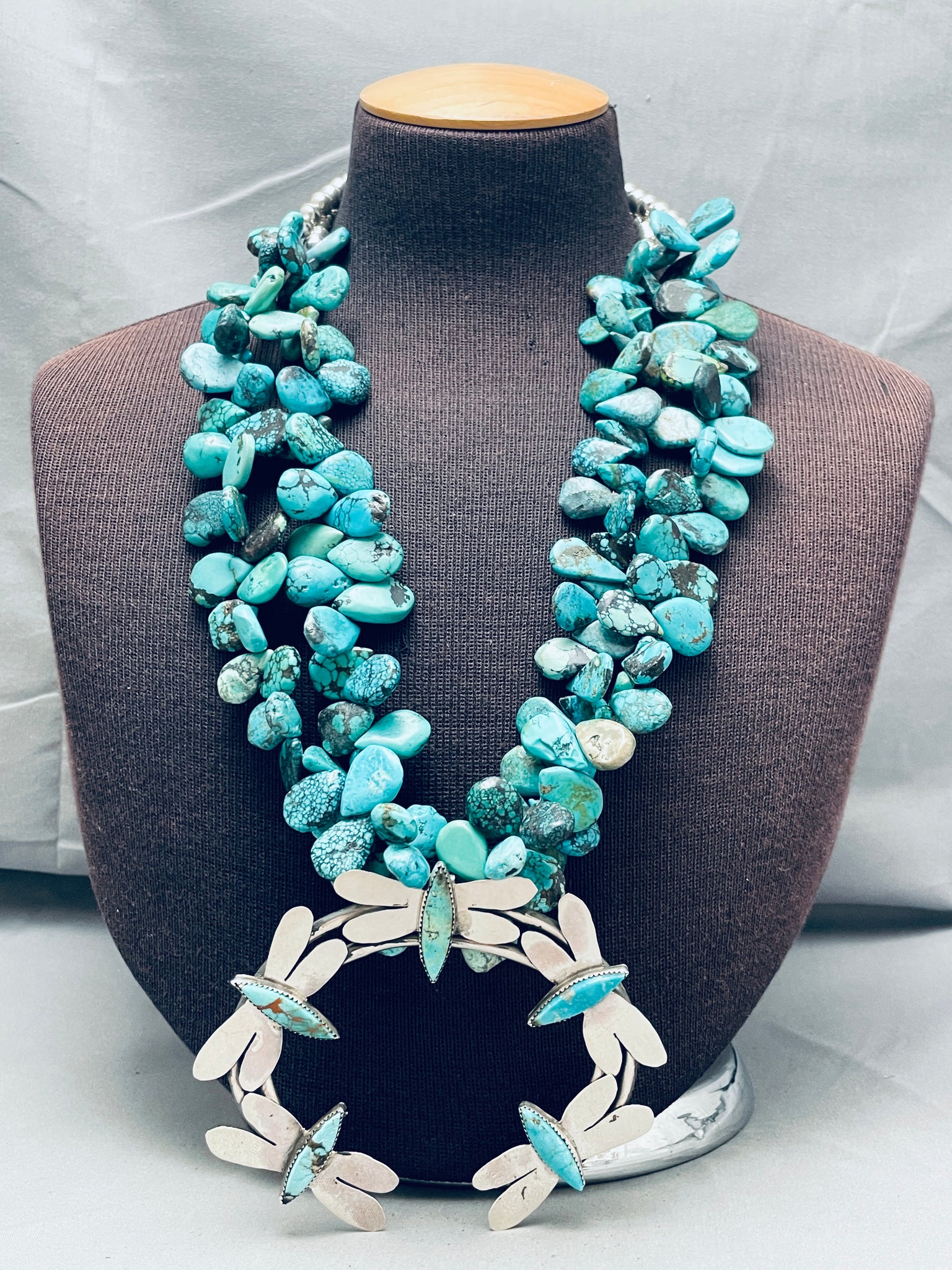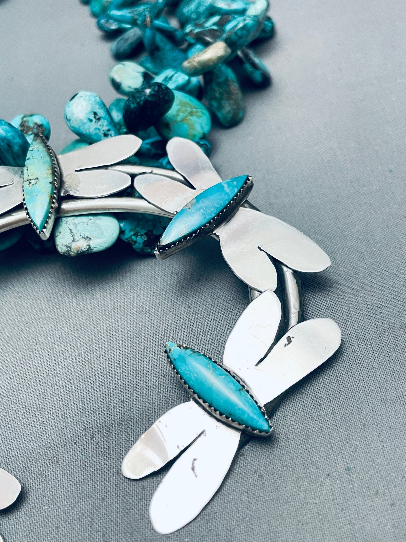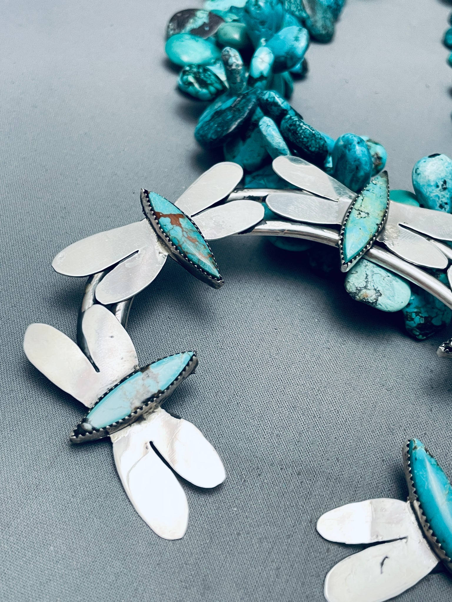 333 Gram Navajo Turquoise Butterfly Sterling Silver Squash Blossom Necklace