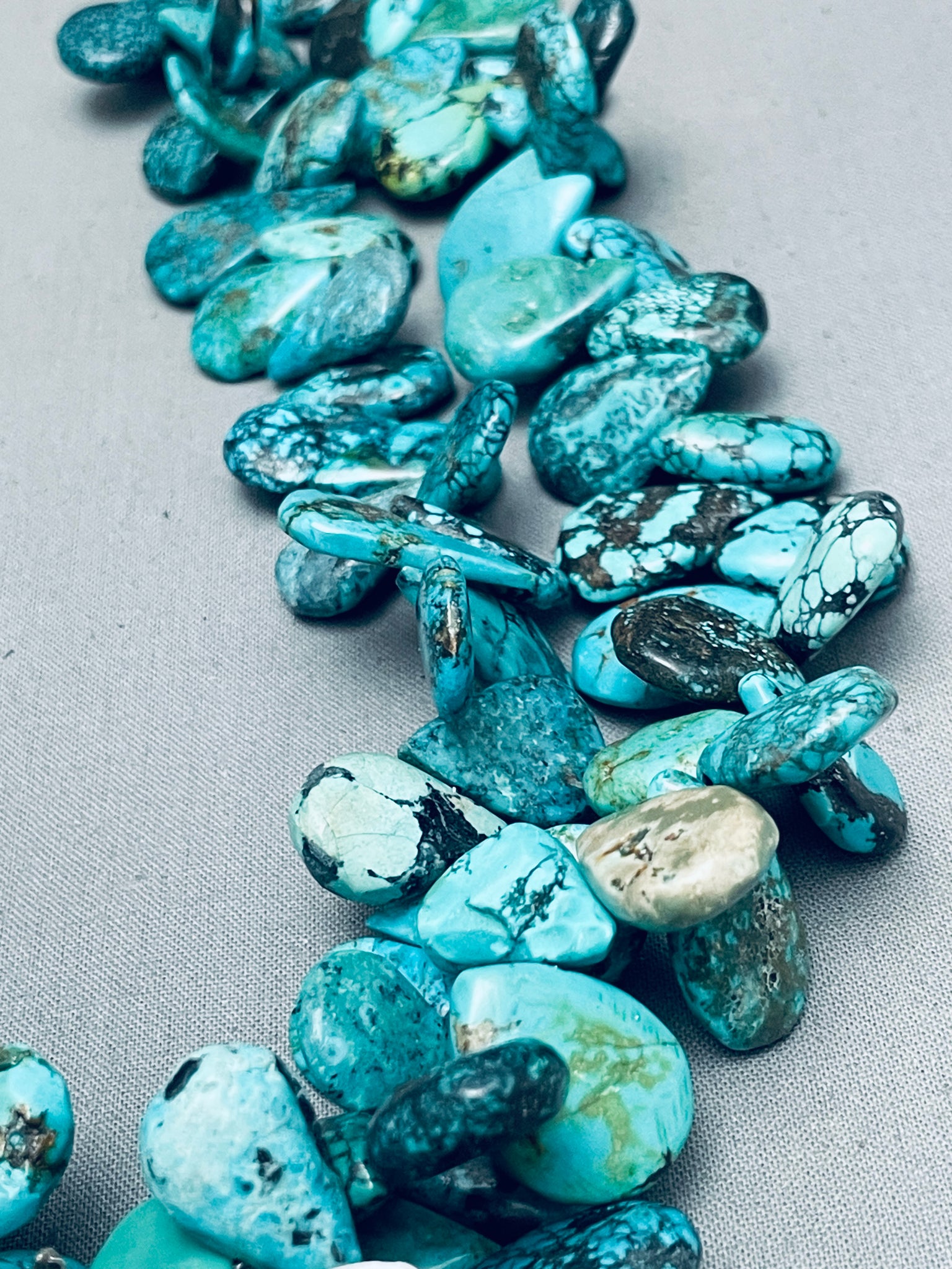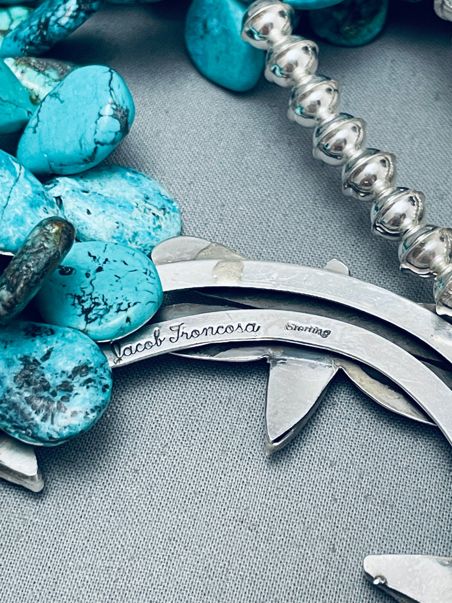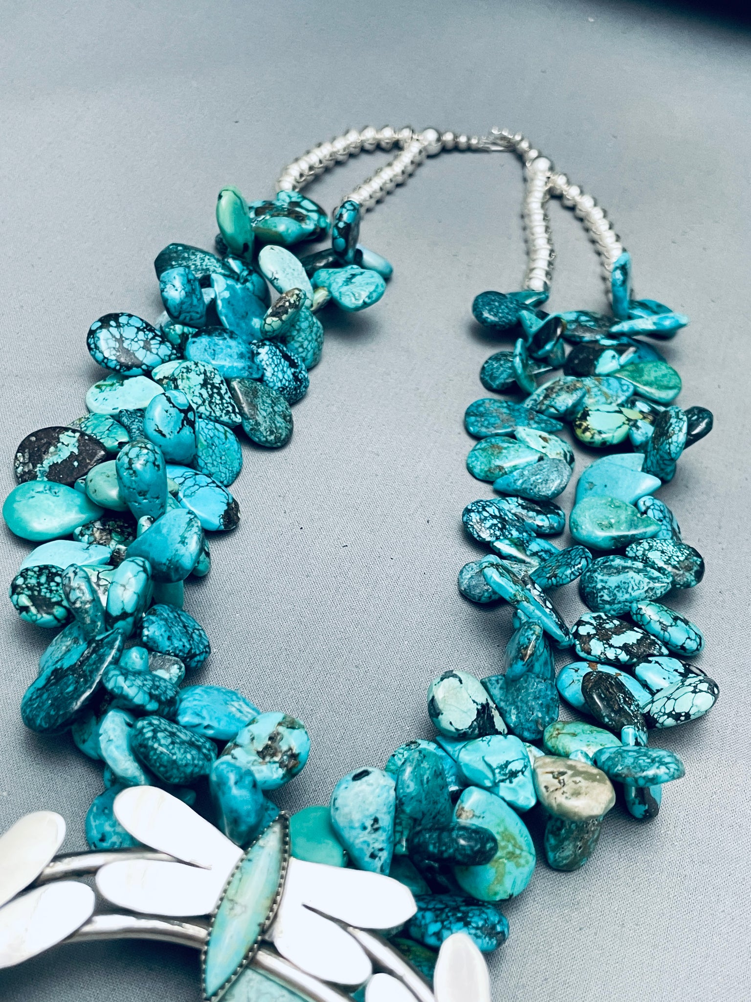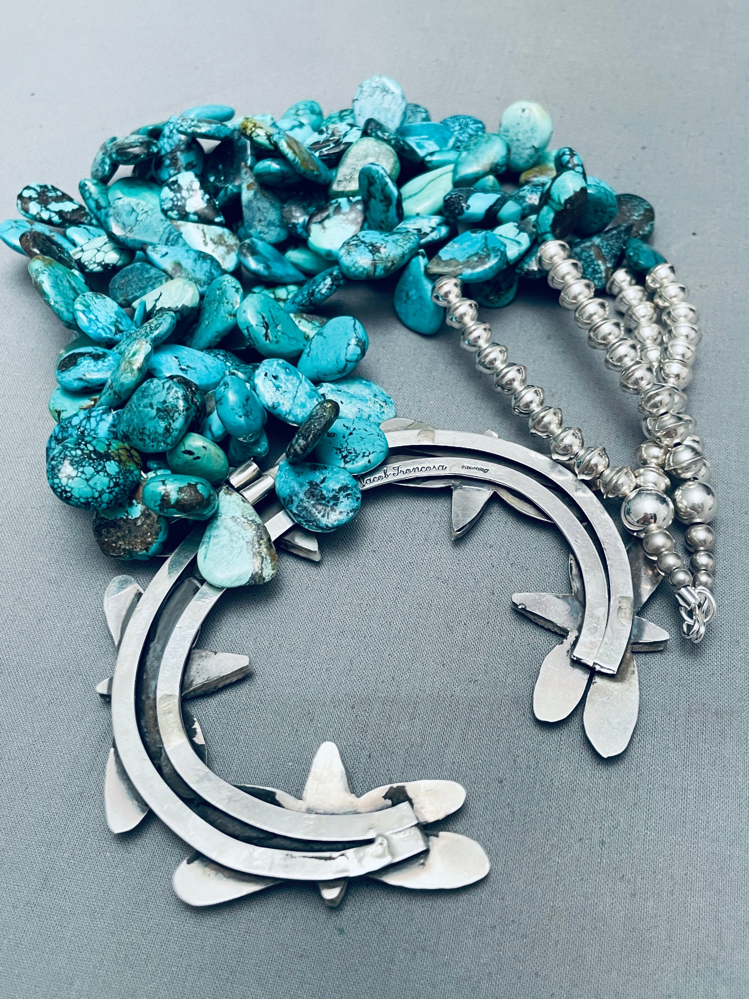 333 Gram Navajo Turquoise Butterfly Sterling Silver Squash Blossom Necklace