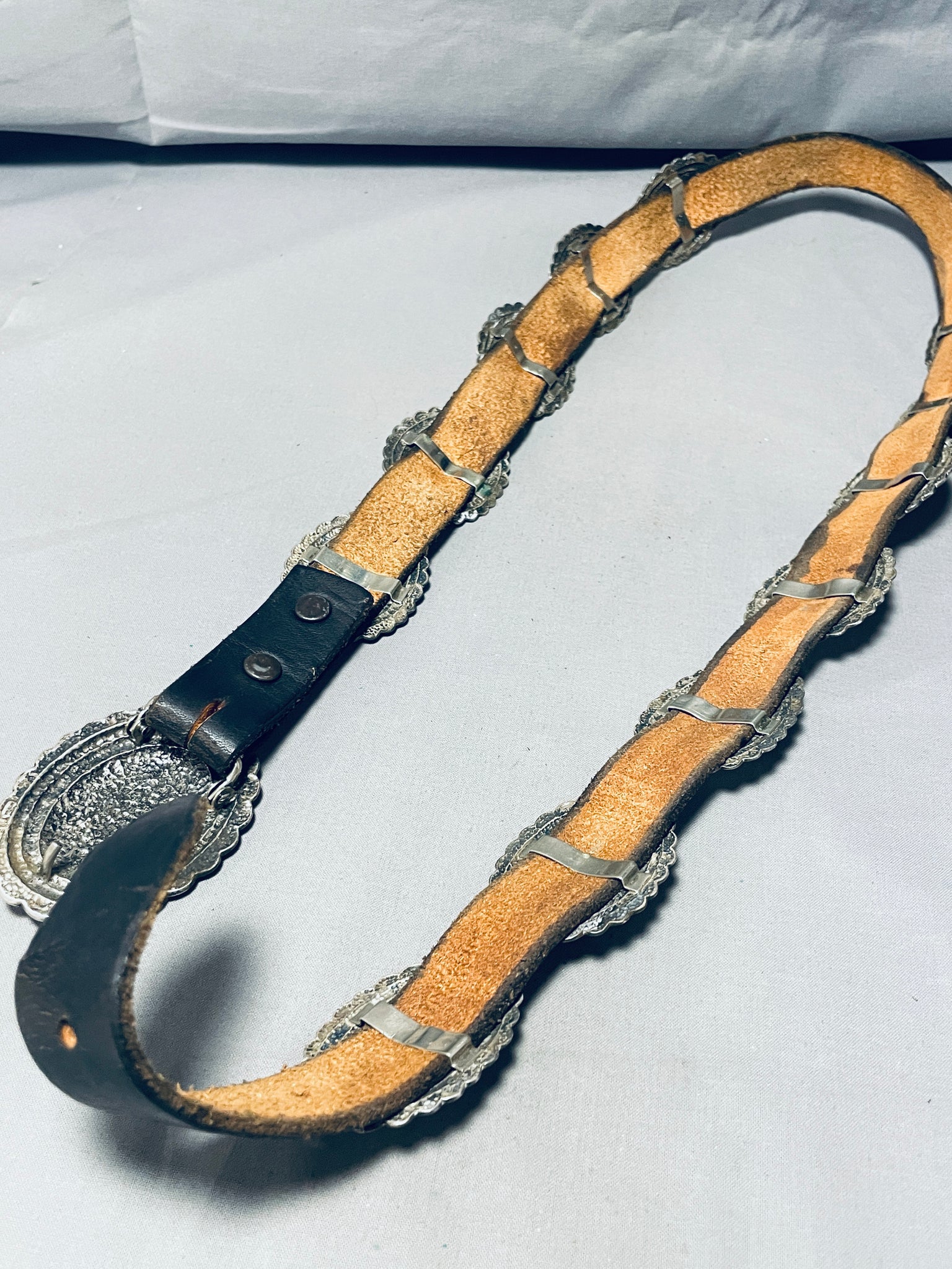 347 Grams Vintage Native American Navajo Hand Wrought Sterling Silver Concho Belt Old