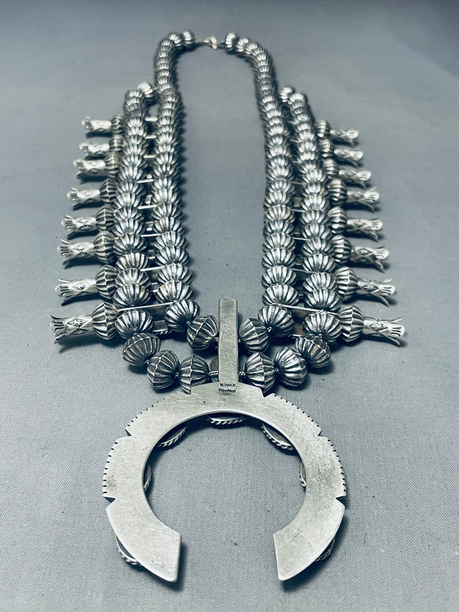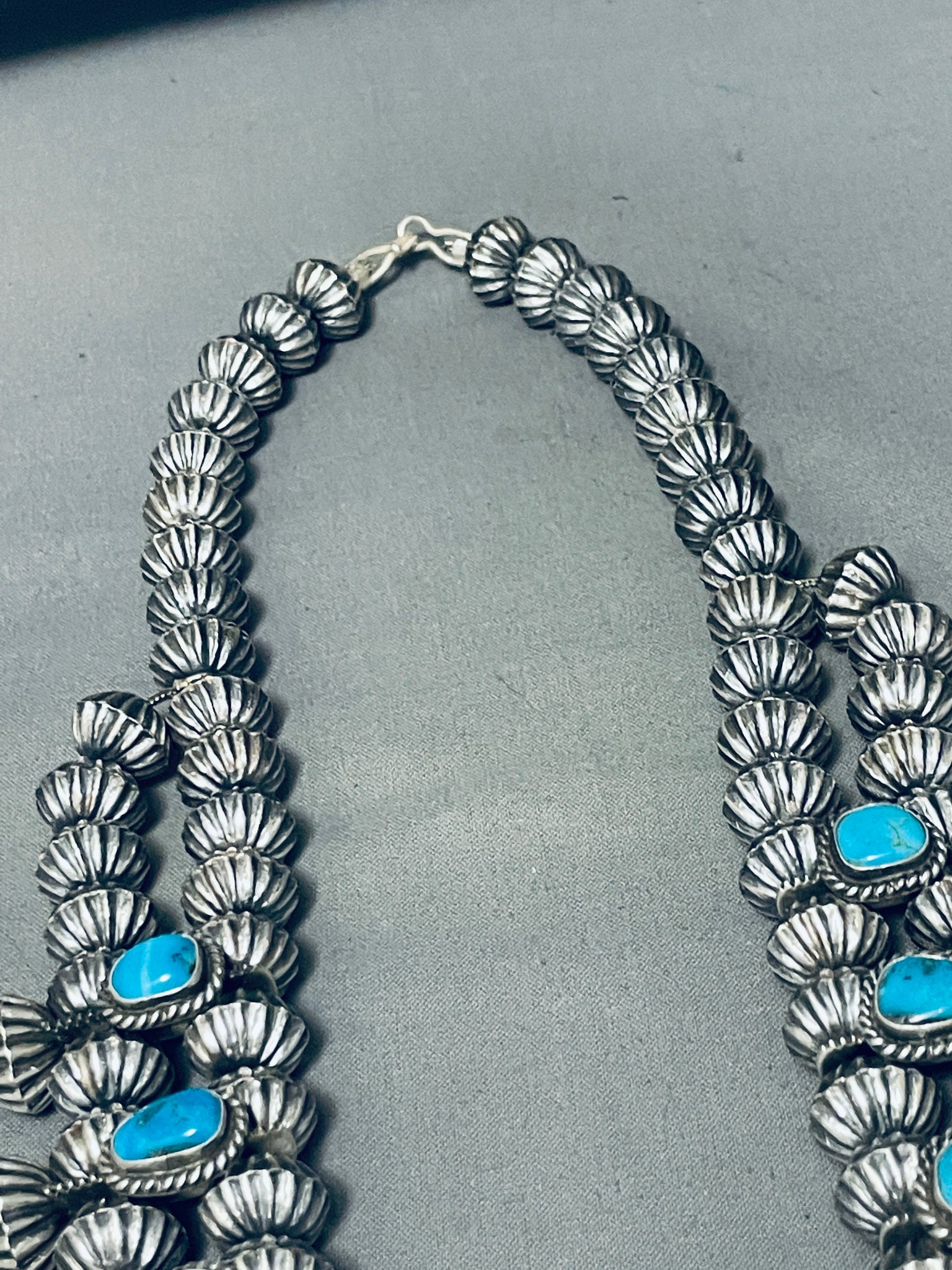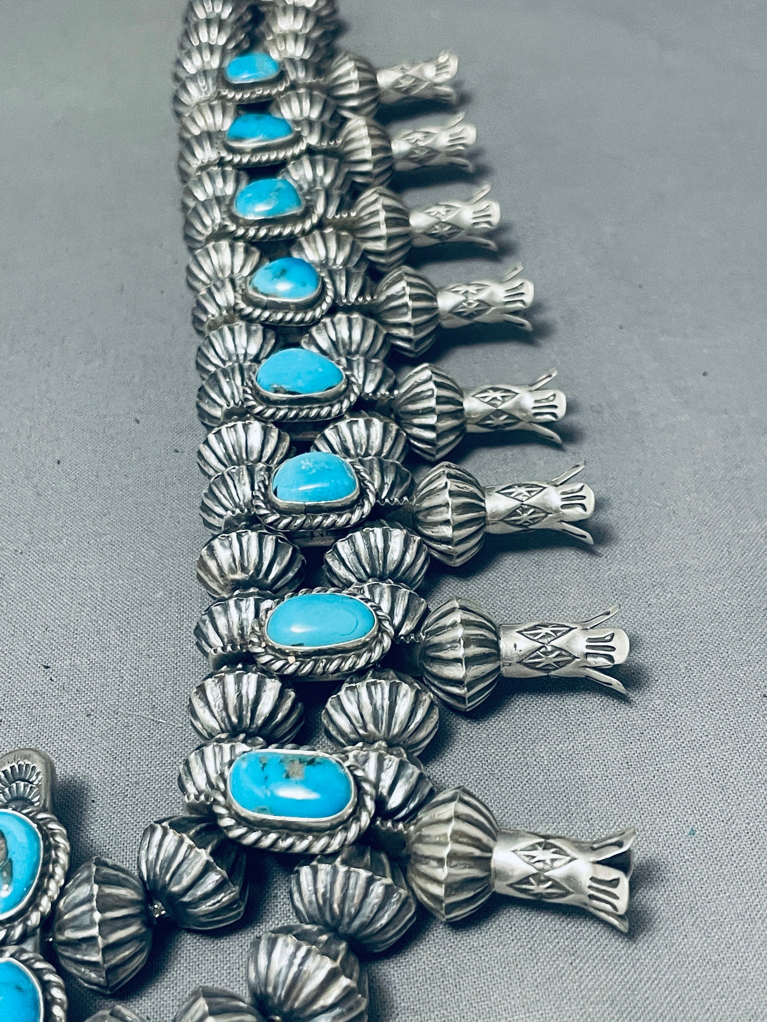 366 Gram Gasp! Native American Navajo Turquoise Sterling Silver Squash Blossom Necklace