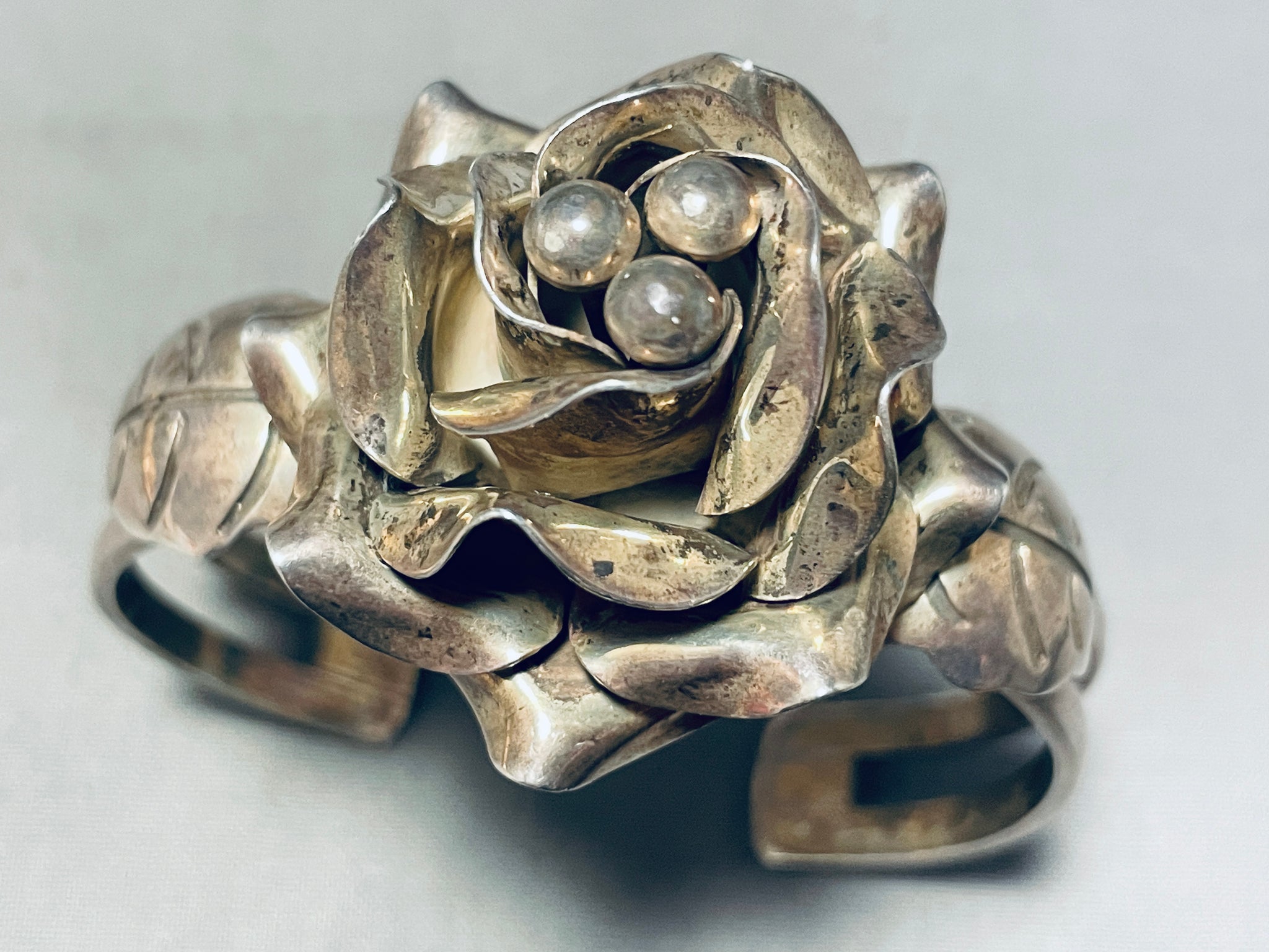3d Rose!! Vintage Southwest Sterling Silver Bracelet Cuff Old