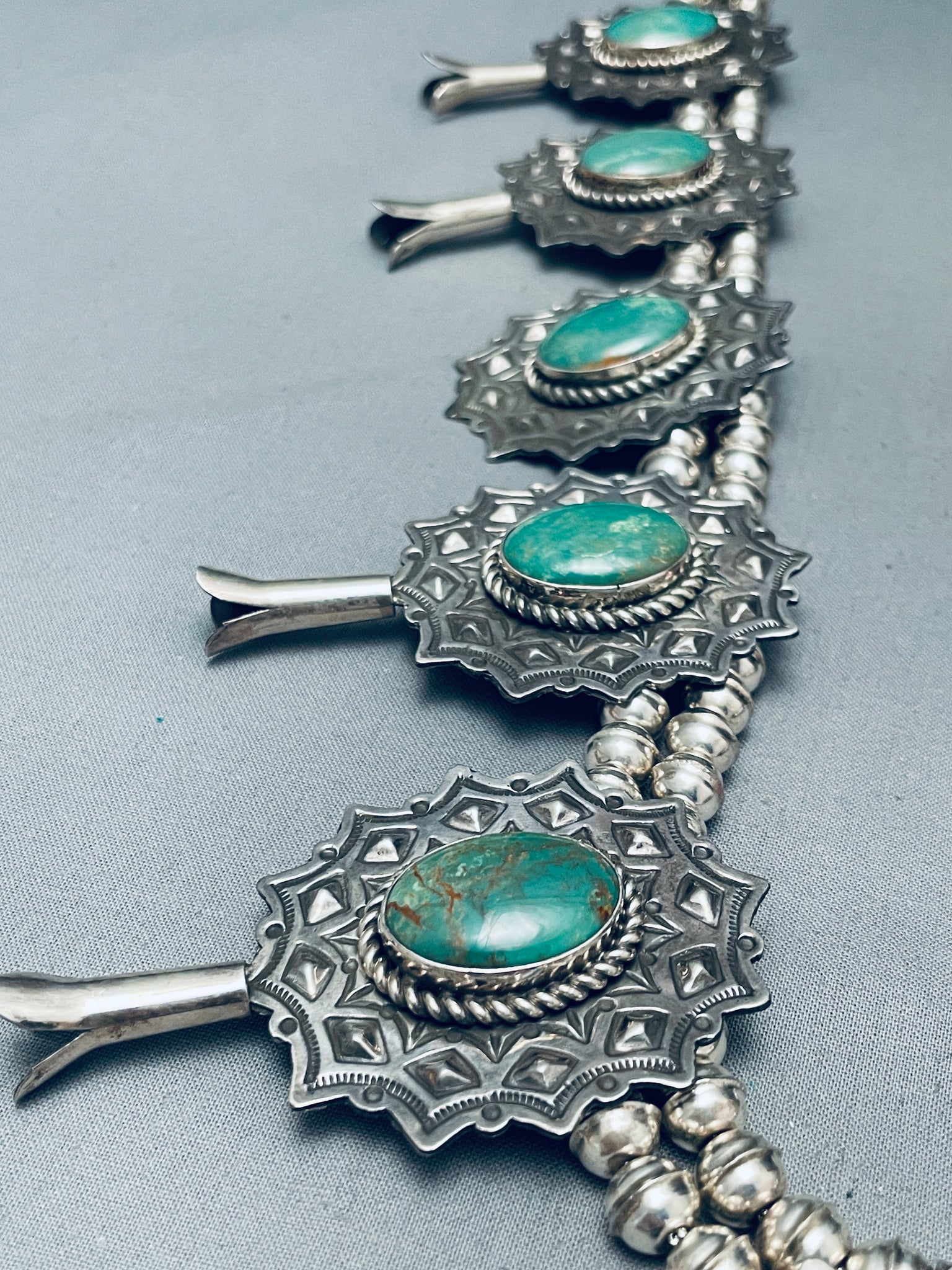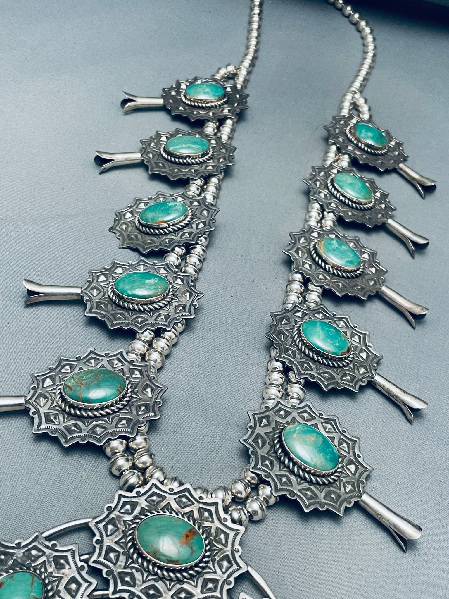 432 Grams San Felipe Green Turquoise Sterling Silver Squash Blossom Necklace