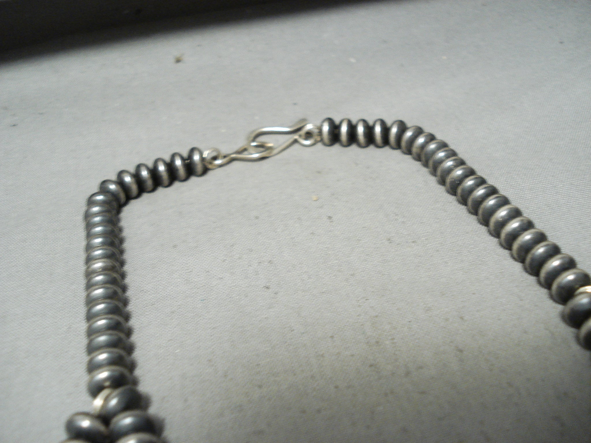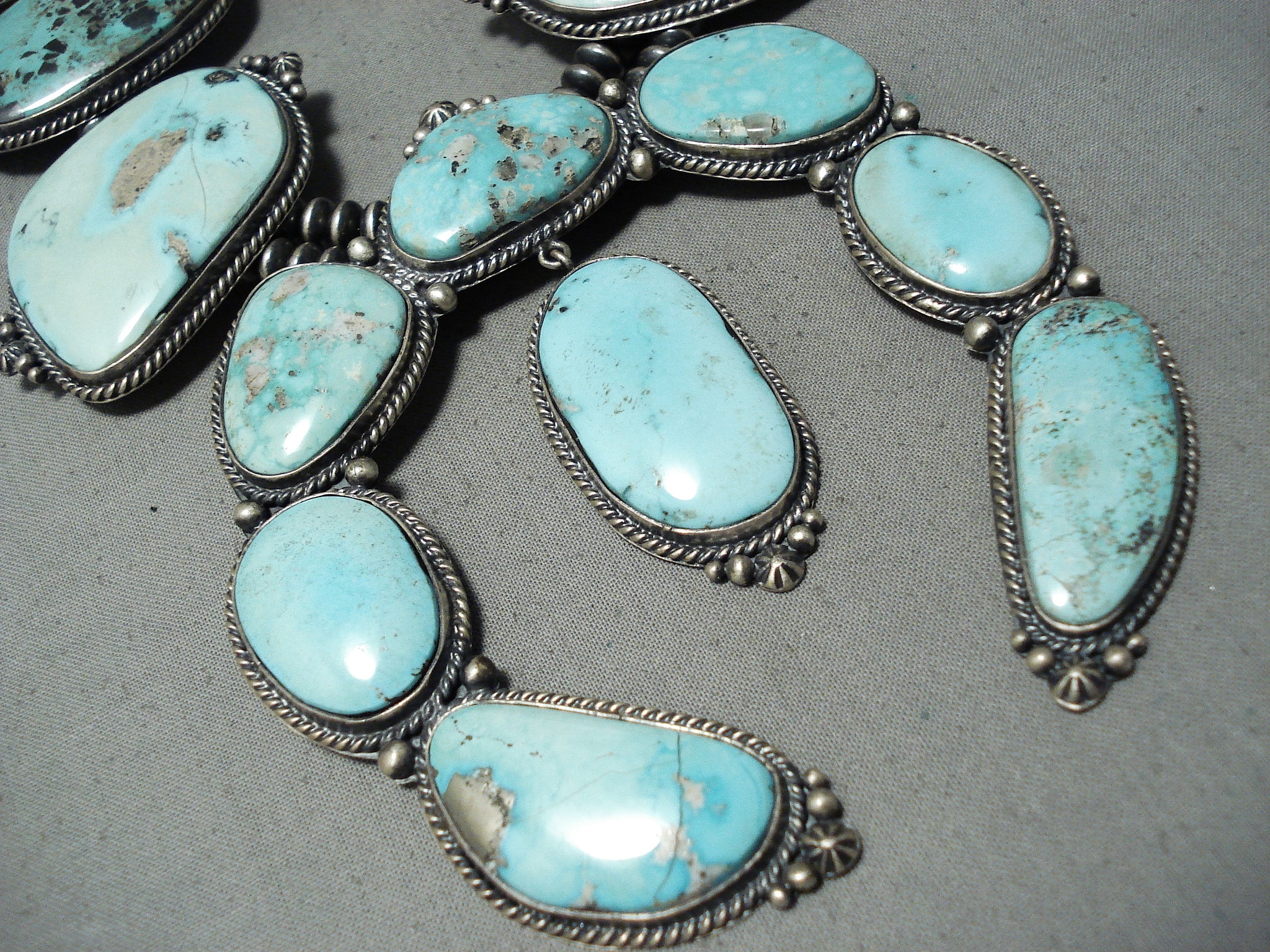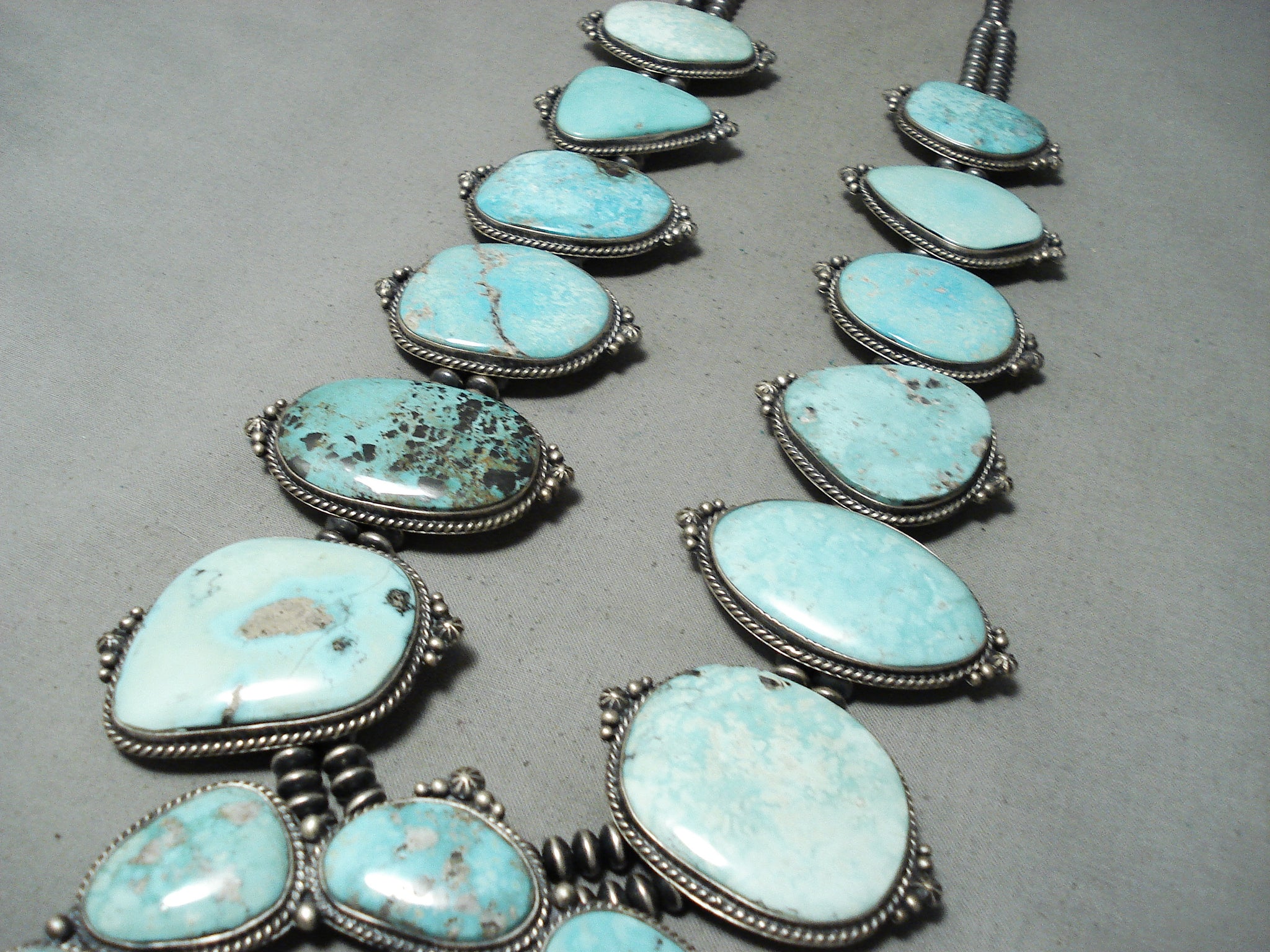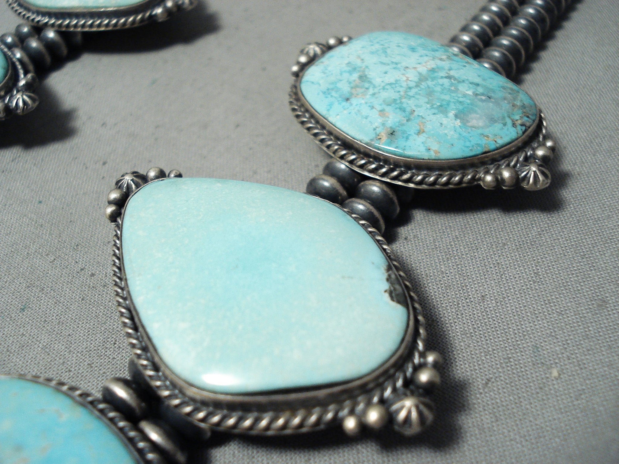 456 Grams Big Vintage Native American Navajo Turquoise Sterling Silver Squash Blossom Necklace
