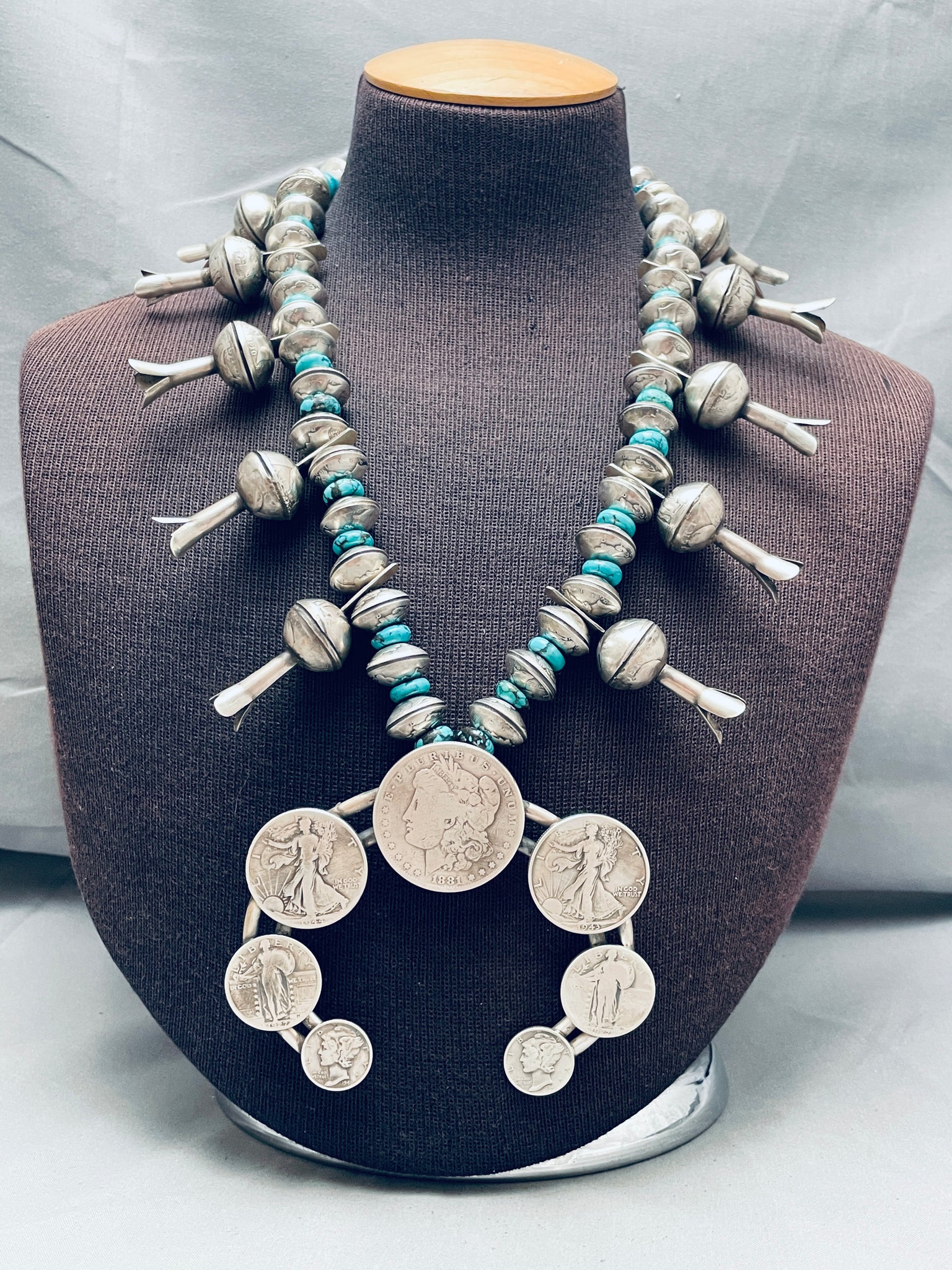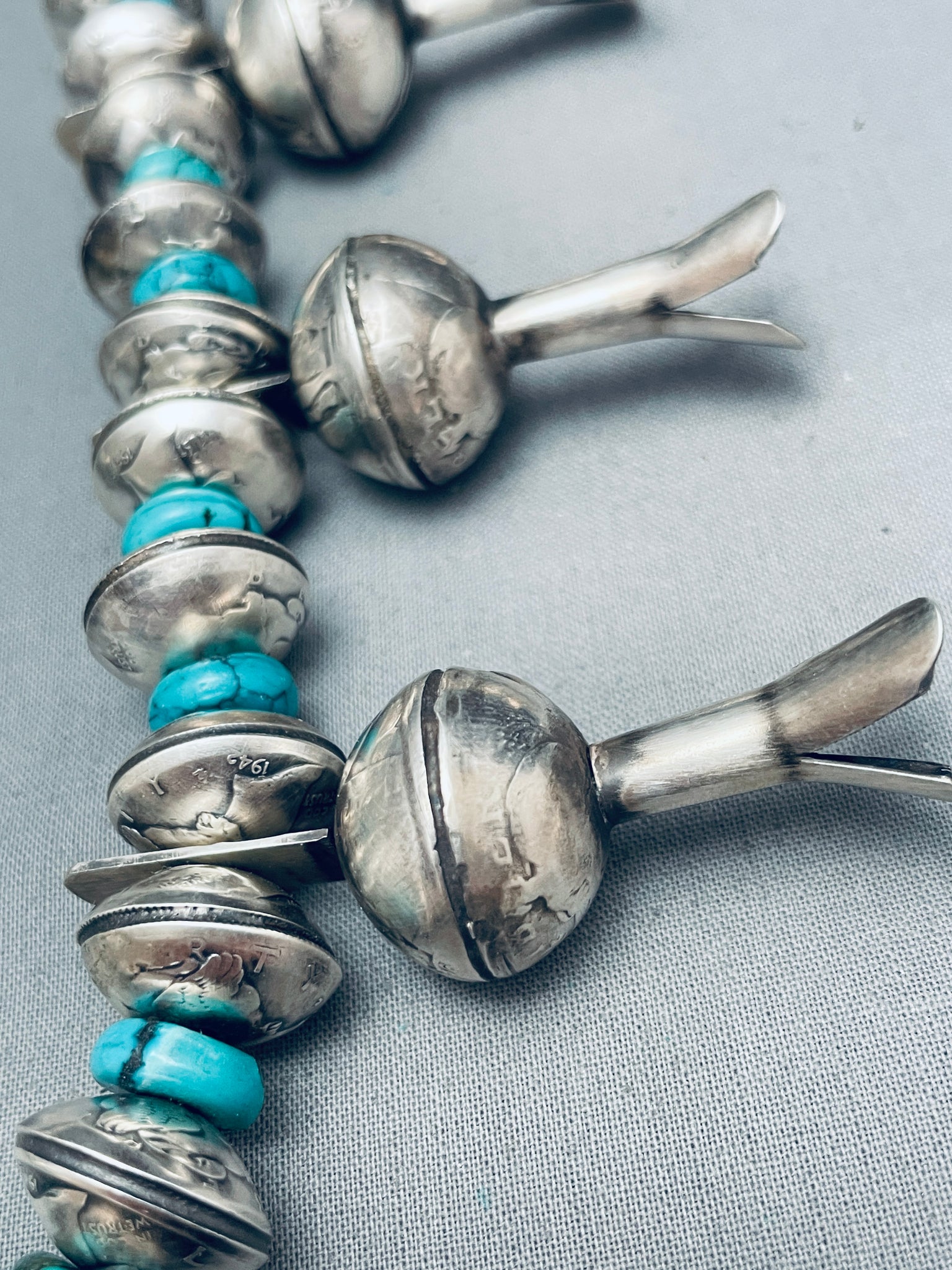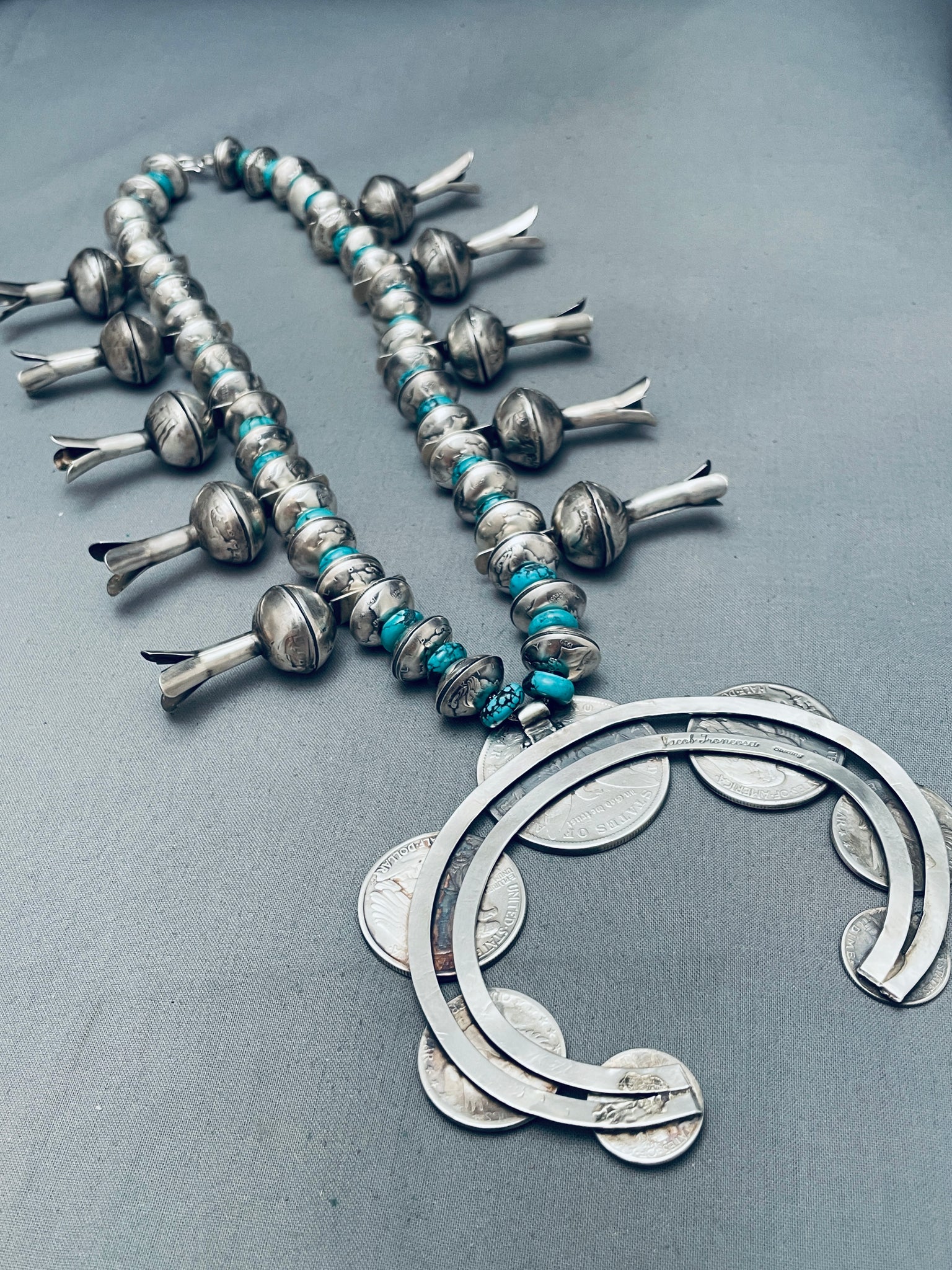 457 Gram San Felipe Navajo Turquoise Sterling Silver Squash Blossom Necklace