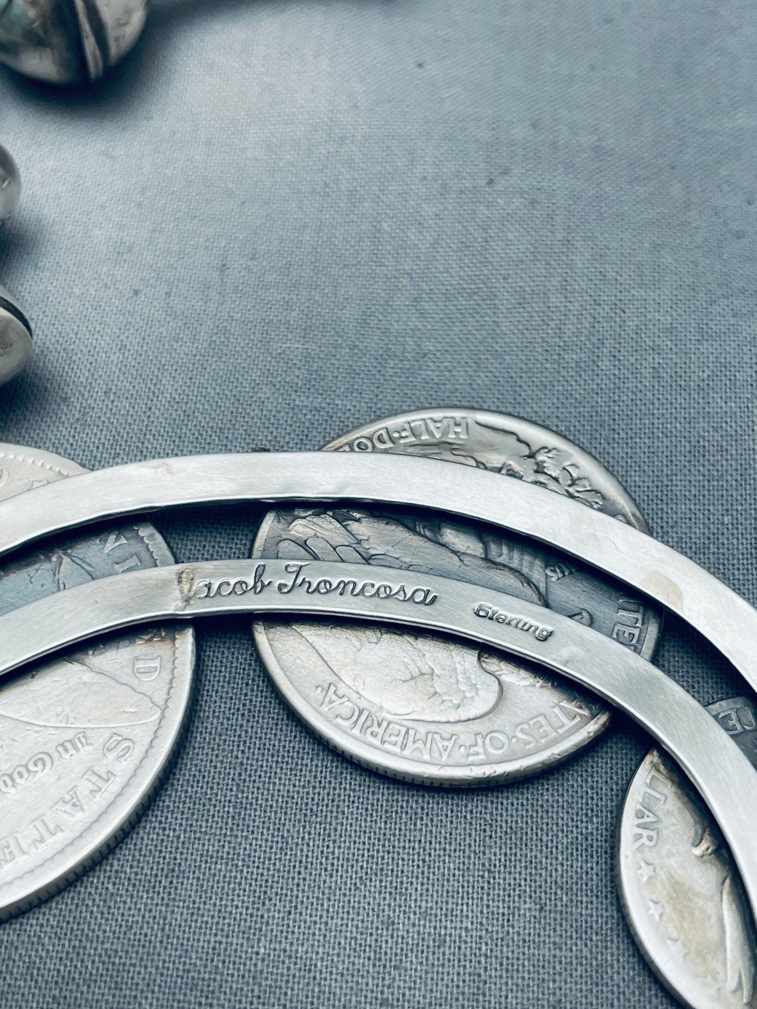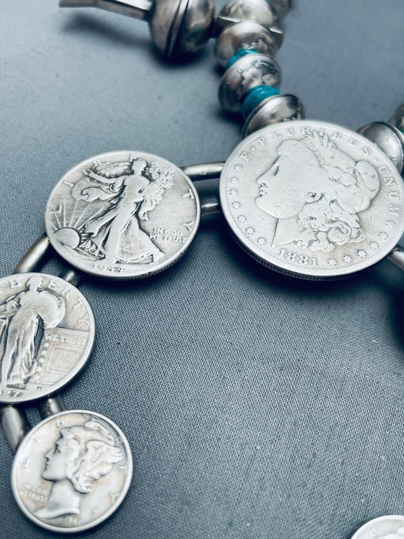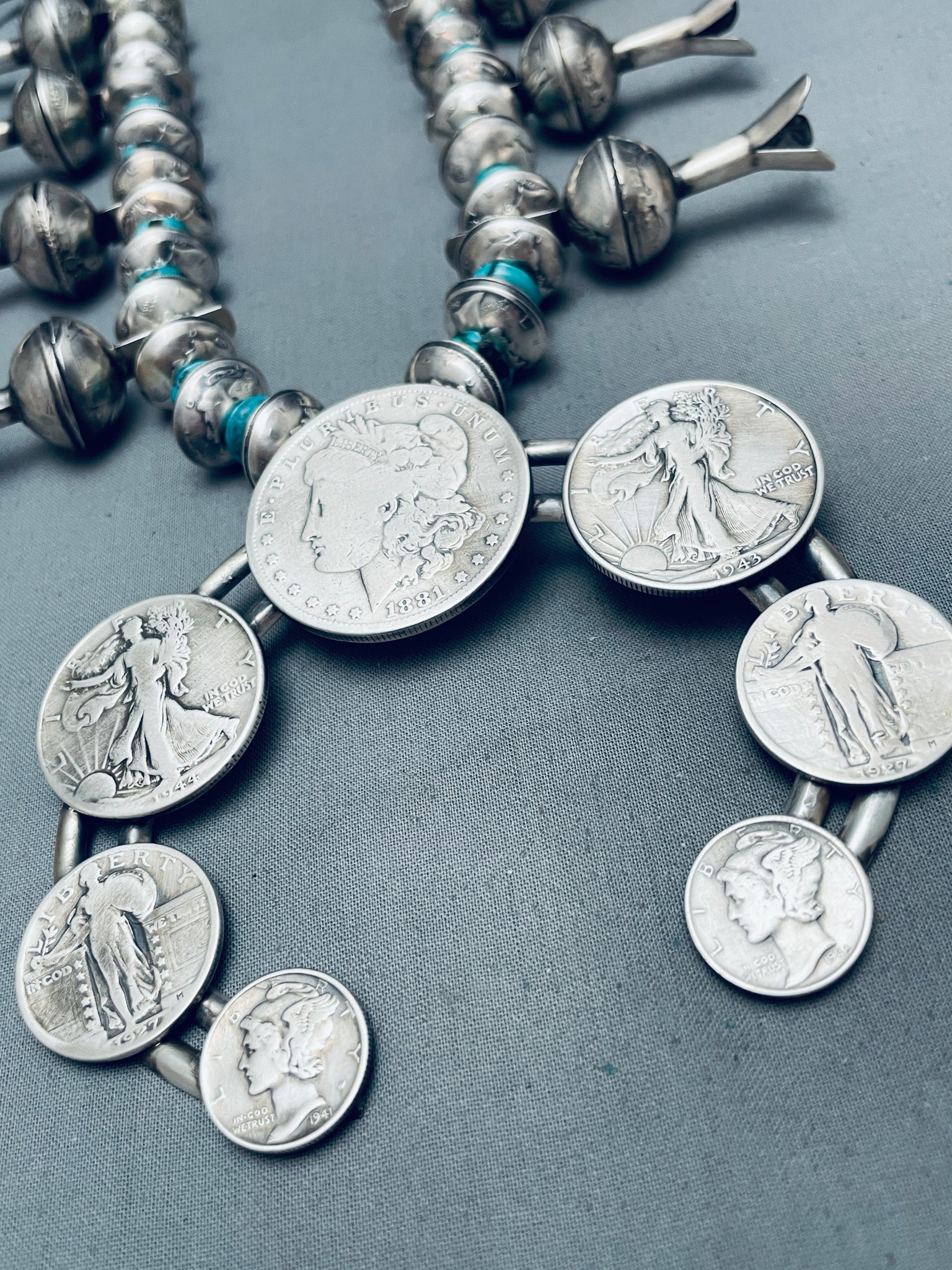 457 Gram San Felipe Navajo Turquoise Sterling Silver Squash Blossom Necklace