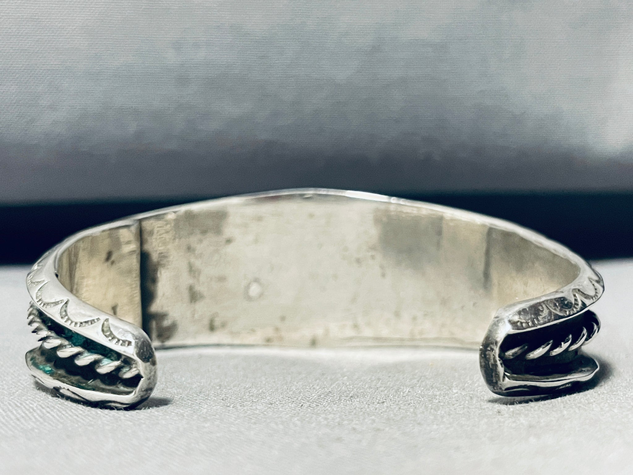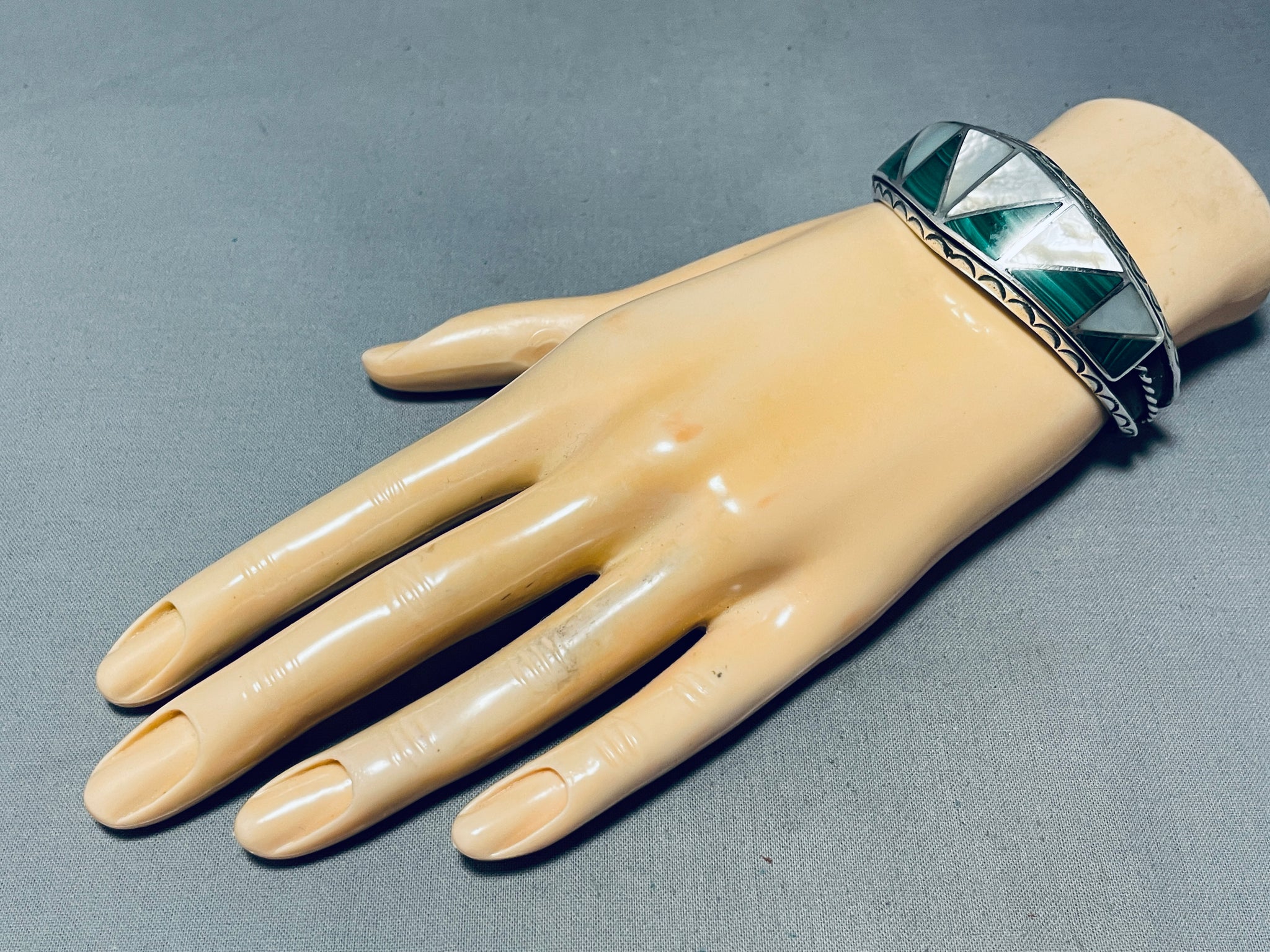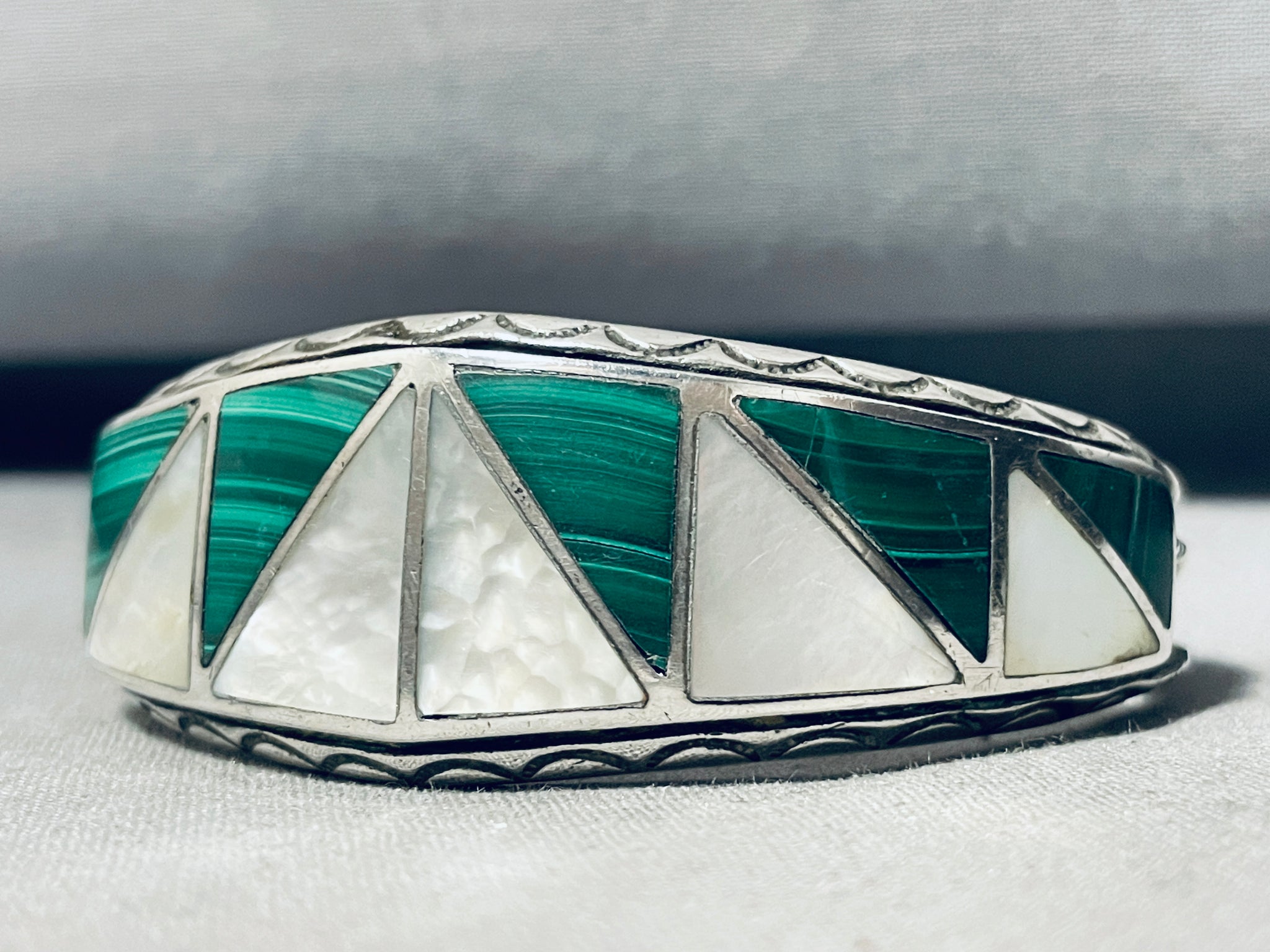 6.5 Inch Wrist Best Vintage Native American Navajo Malachite Pearl Sterling Silver Bracelet