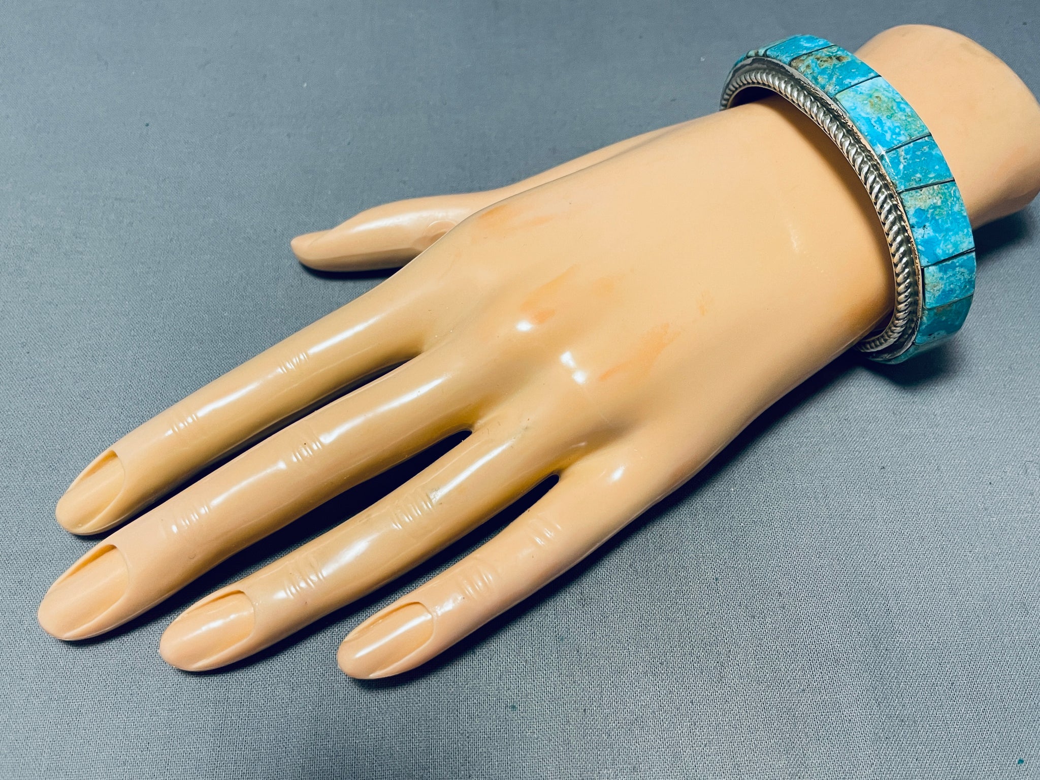 6.5 Inch Wrist Native American Navajo Turquoise Inlay Sterling Silver Bracelet