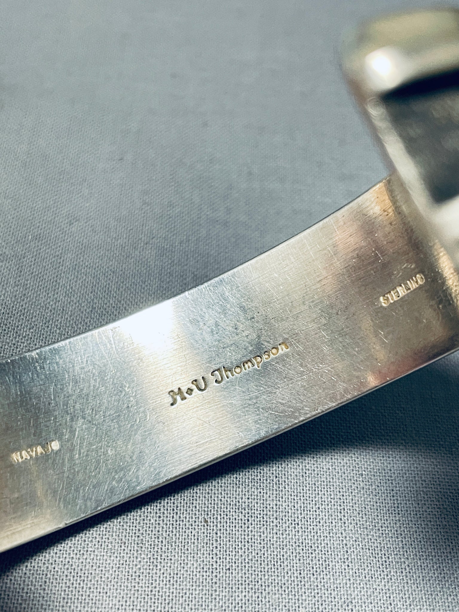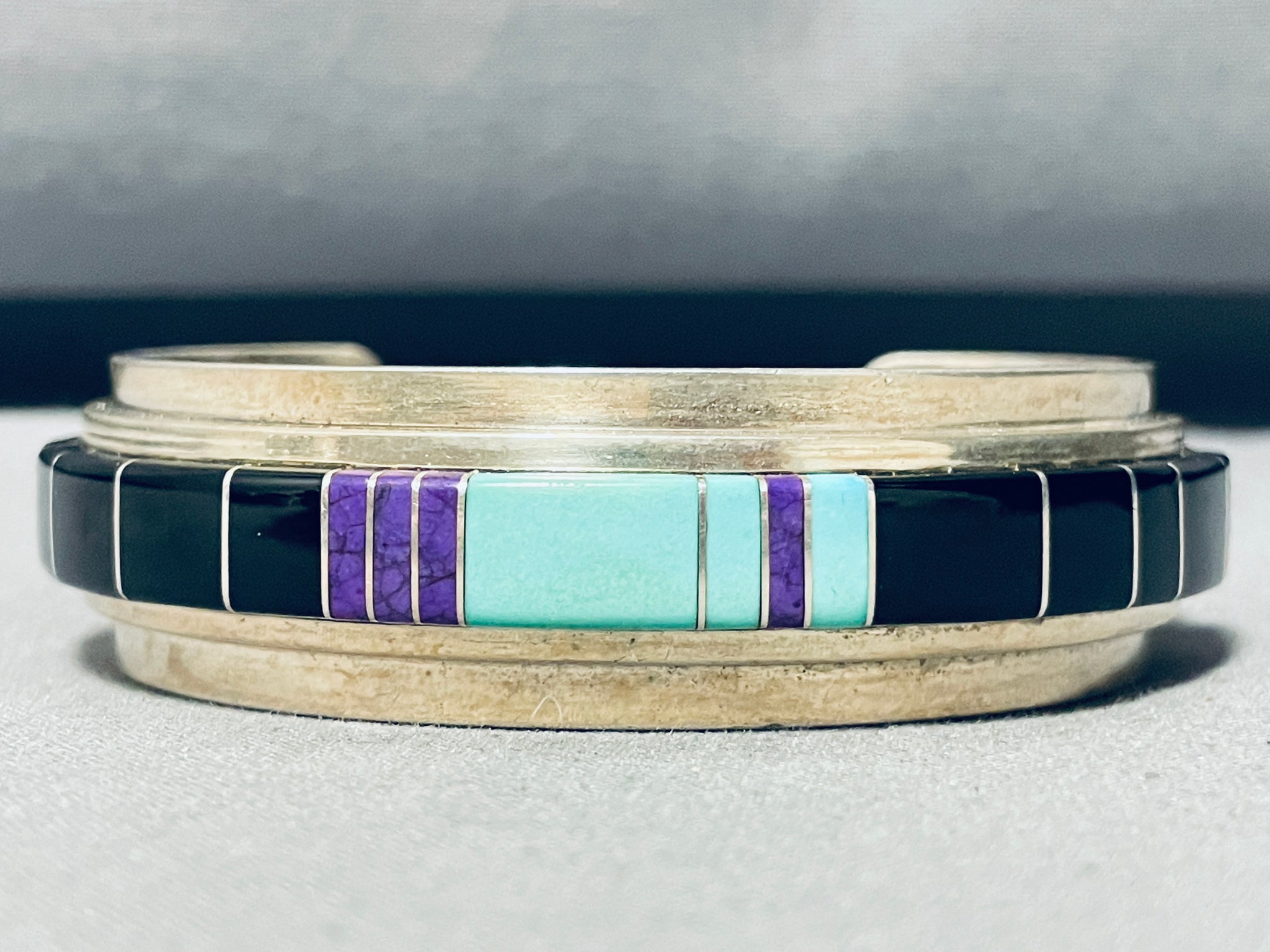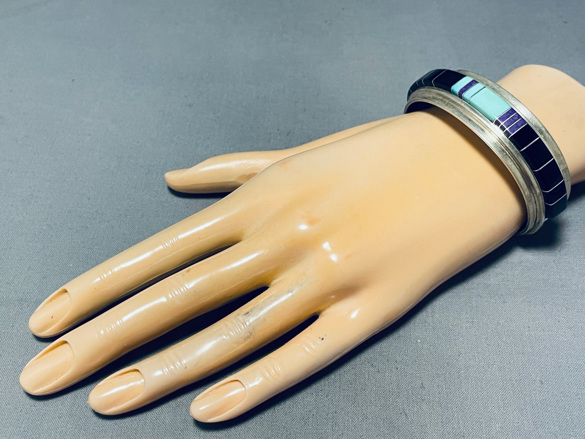 6.5 Inch Wrist Rare Vintage Native American Navajo Turquoise Inlay Sterling Silver Bracelet