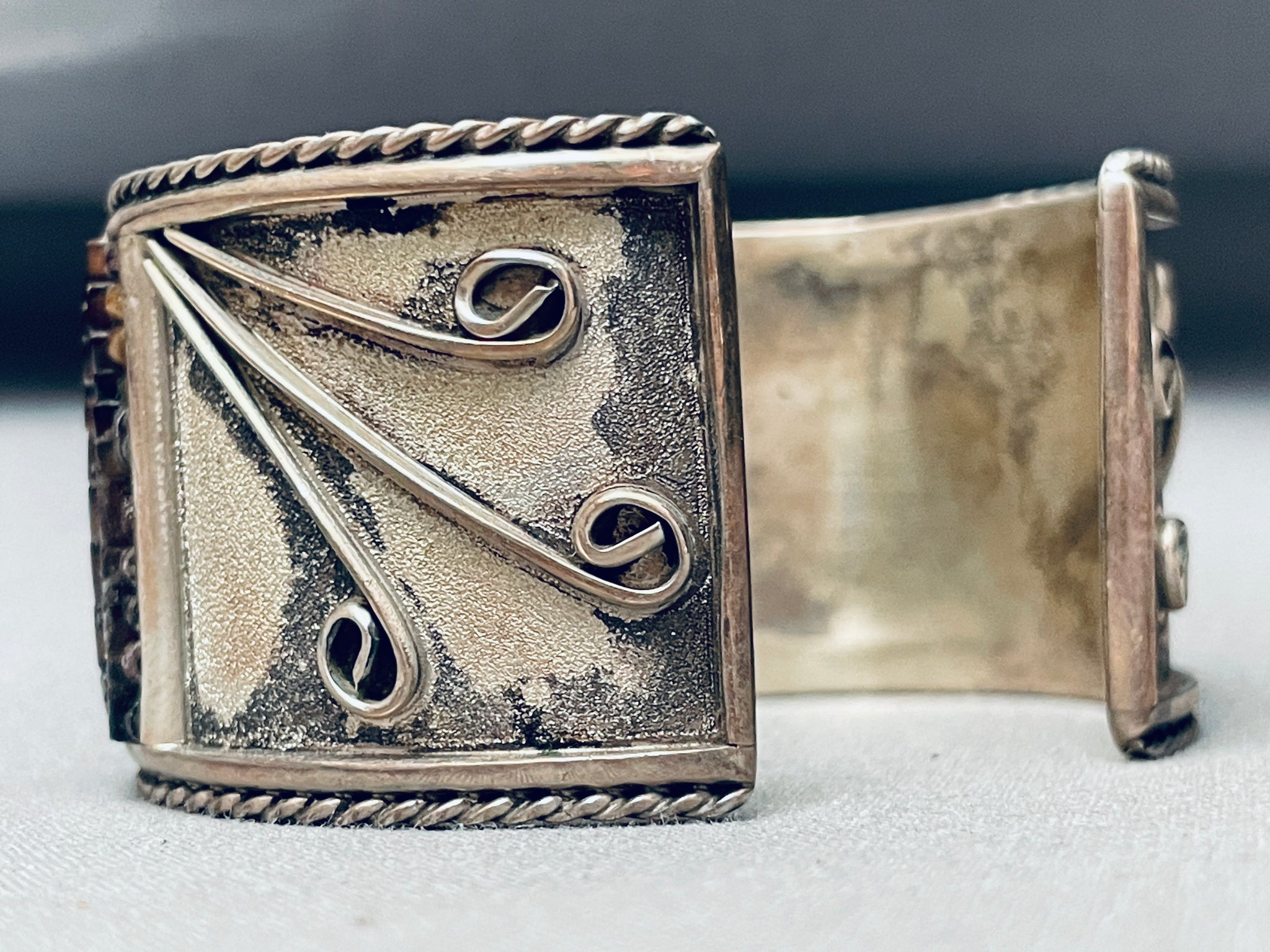 6.5 Inch Wrist Vintage Native American Navajo Hand Beaded Sterling Silver Bracelet Cuff