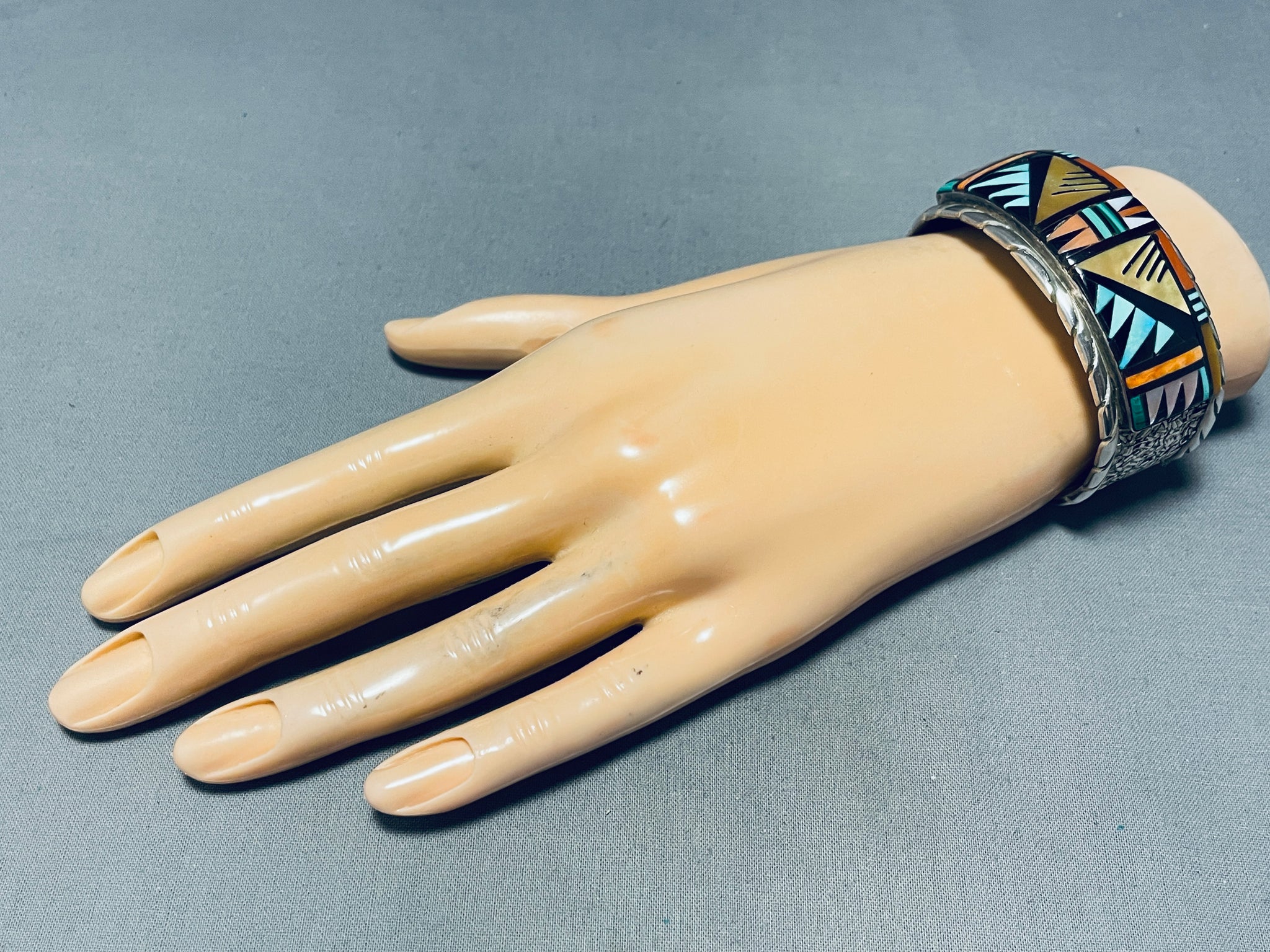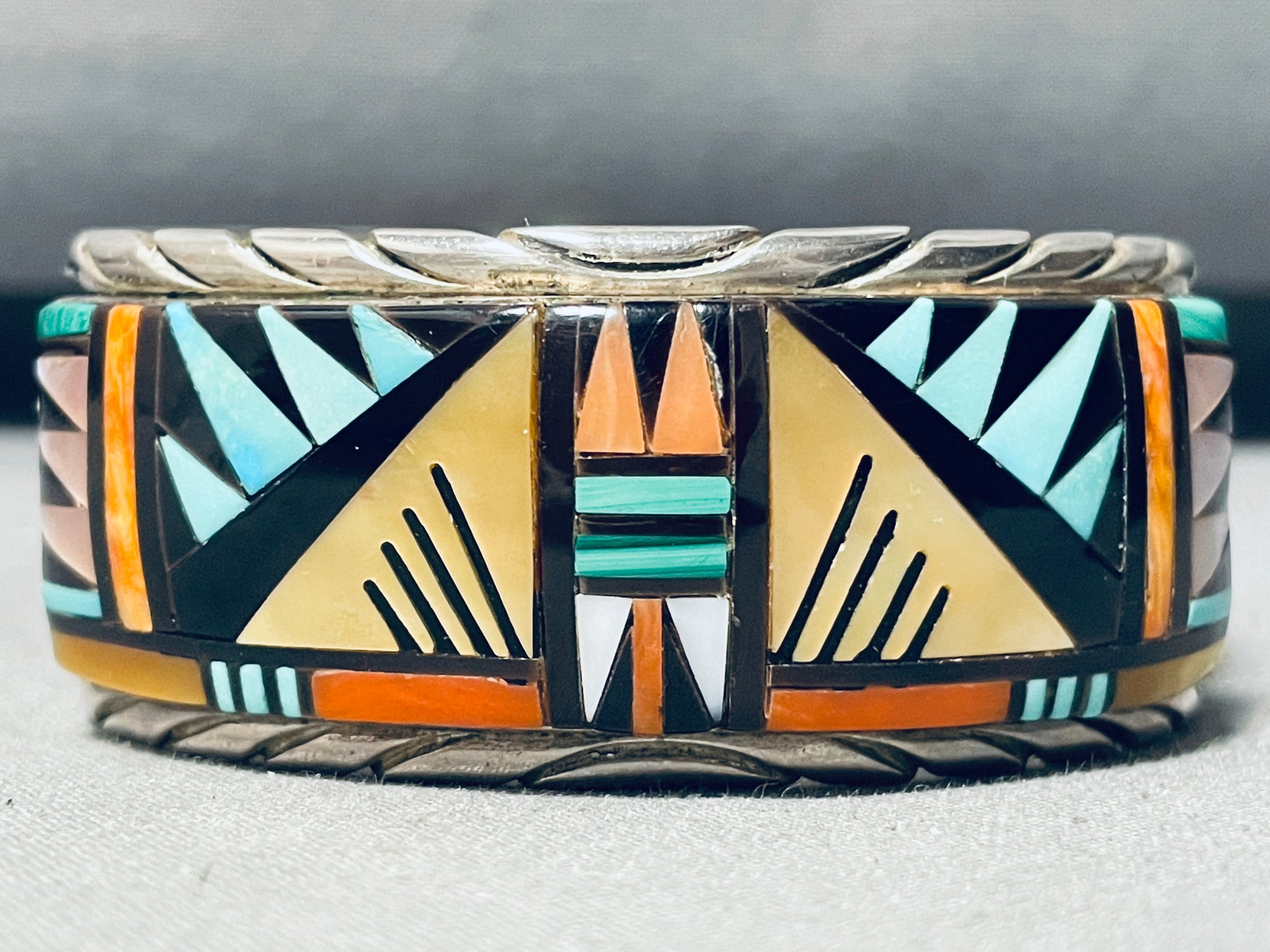 6.5 Inch Wrist Vintage Zuni Extreme Inlay Sterling Silver Bracelet