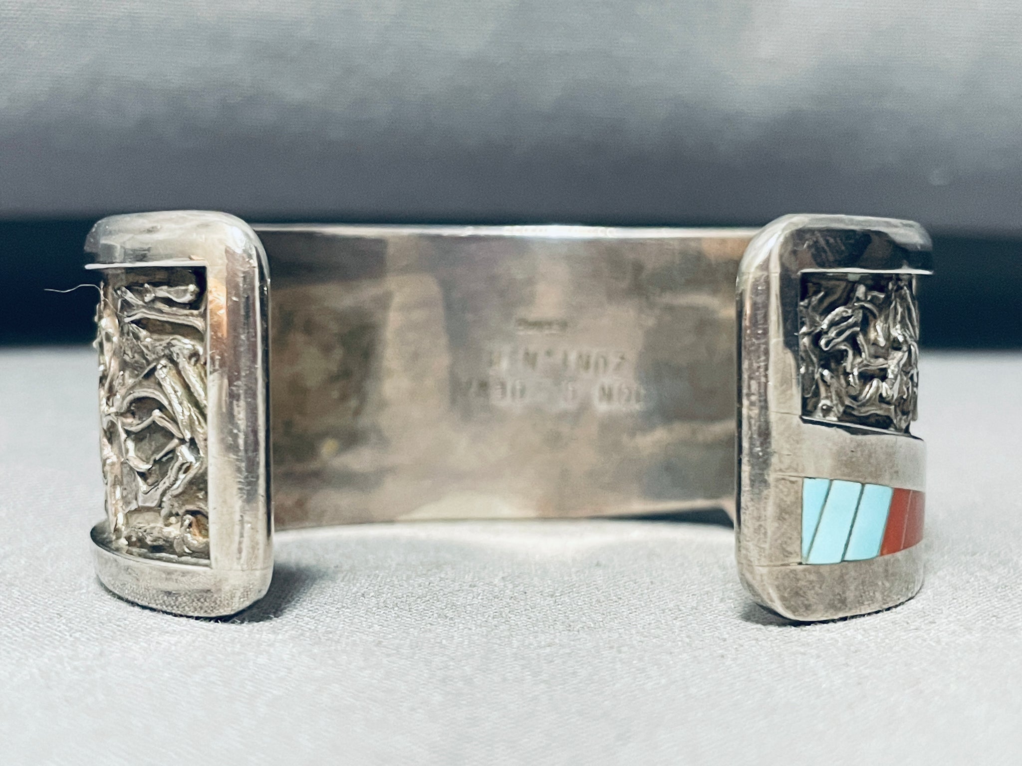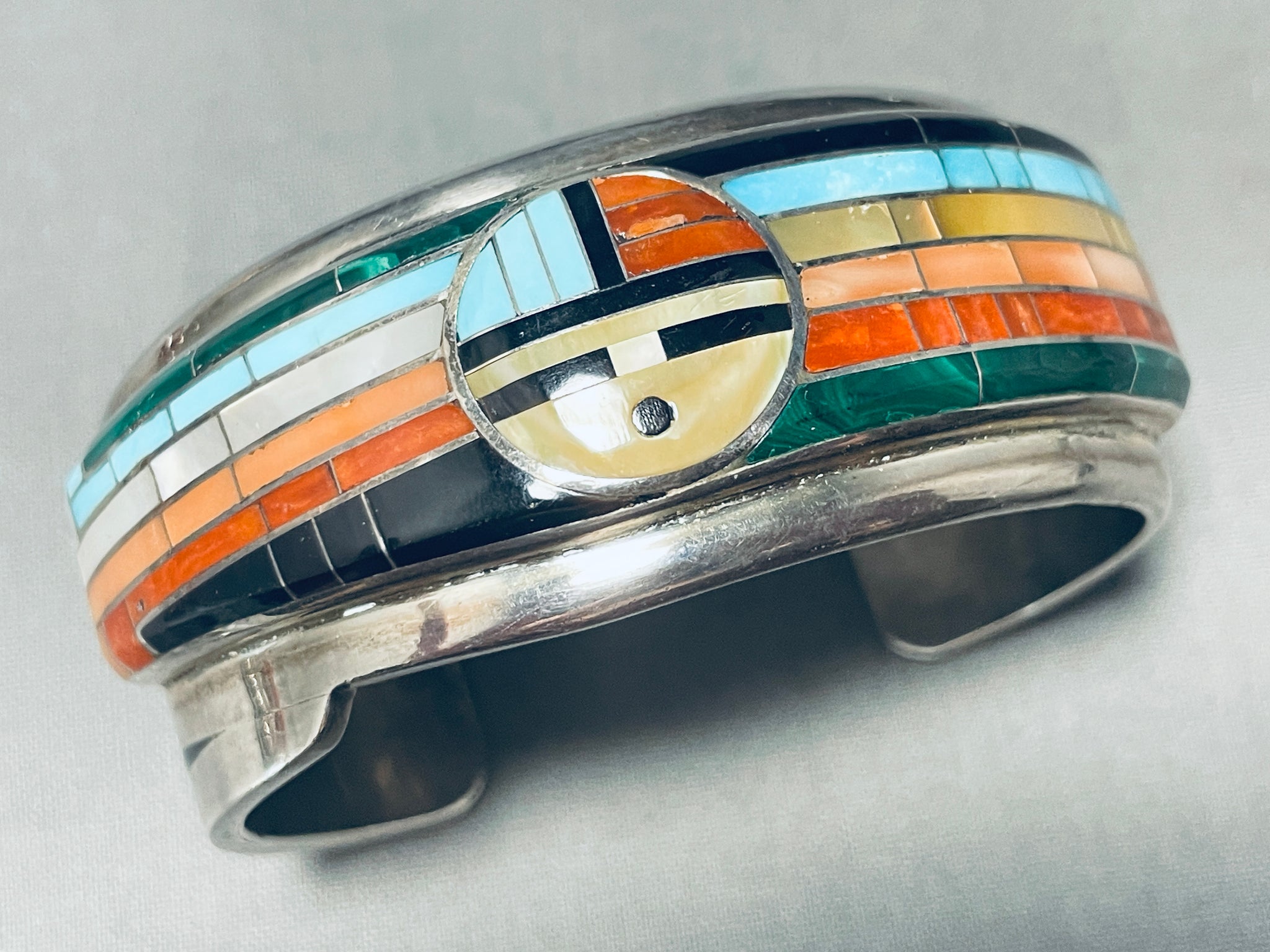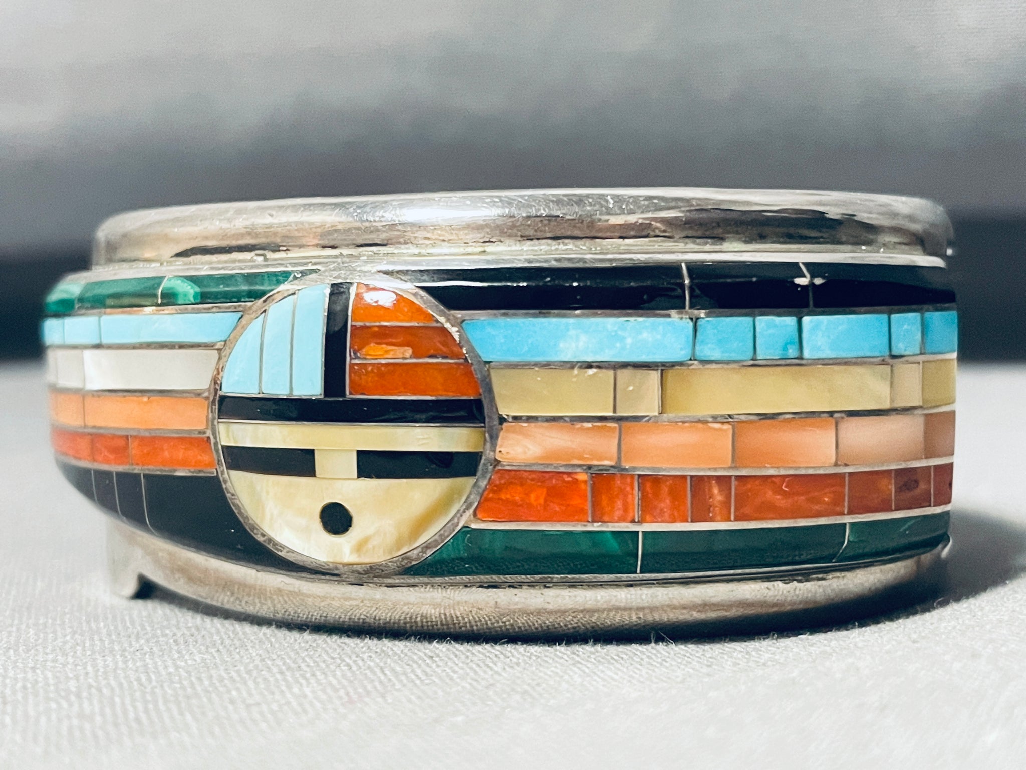 6 Inch Wrist Best Vintage Native American Zuni Don Dewa Inlay Sterling Silver Turquoise Bracelet