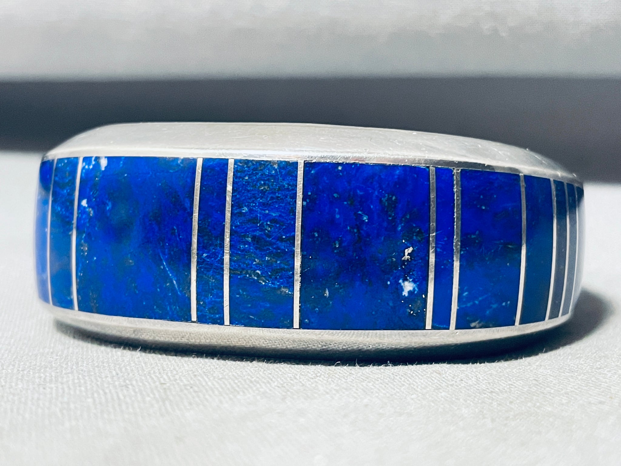 6 Inch Wrist Larson Lee Vintage Native American Navajo Lapis Inlay Sterling Silver Bracelet