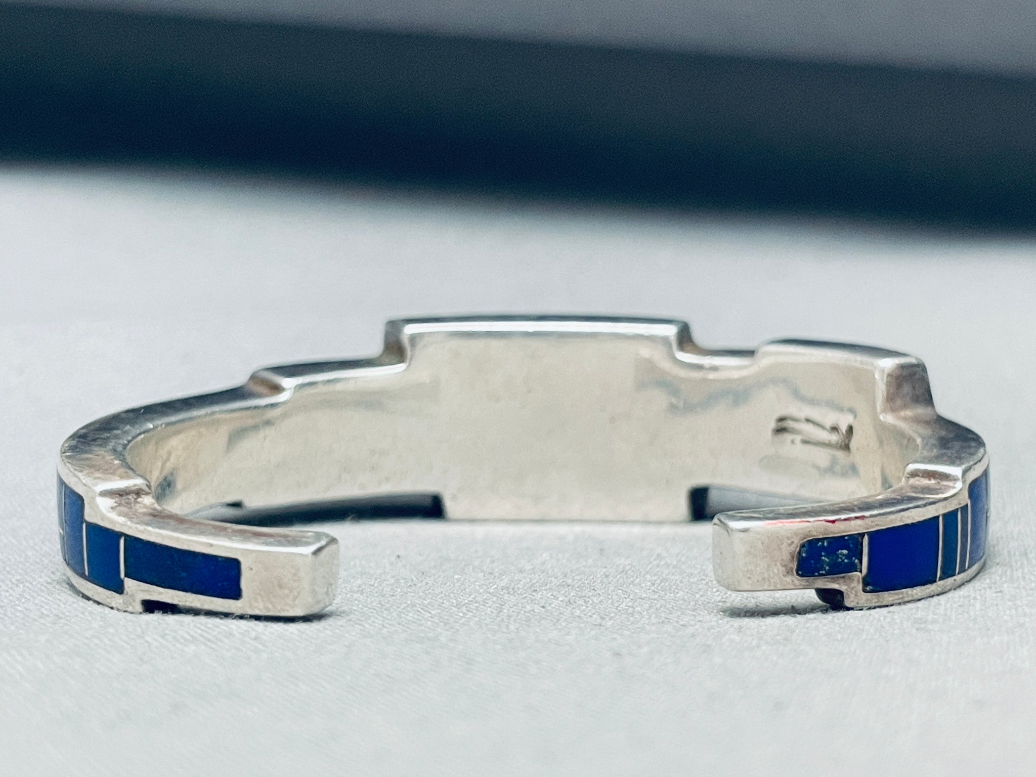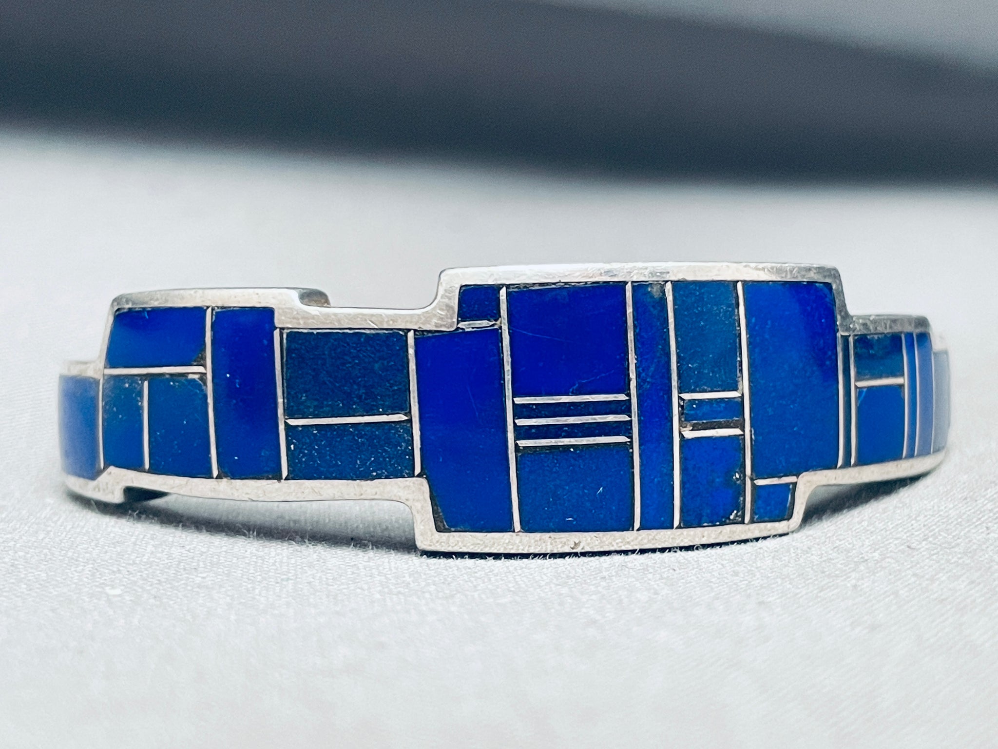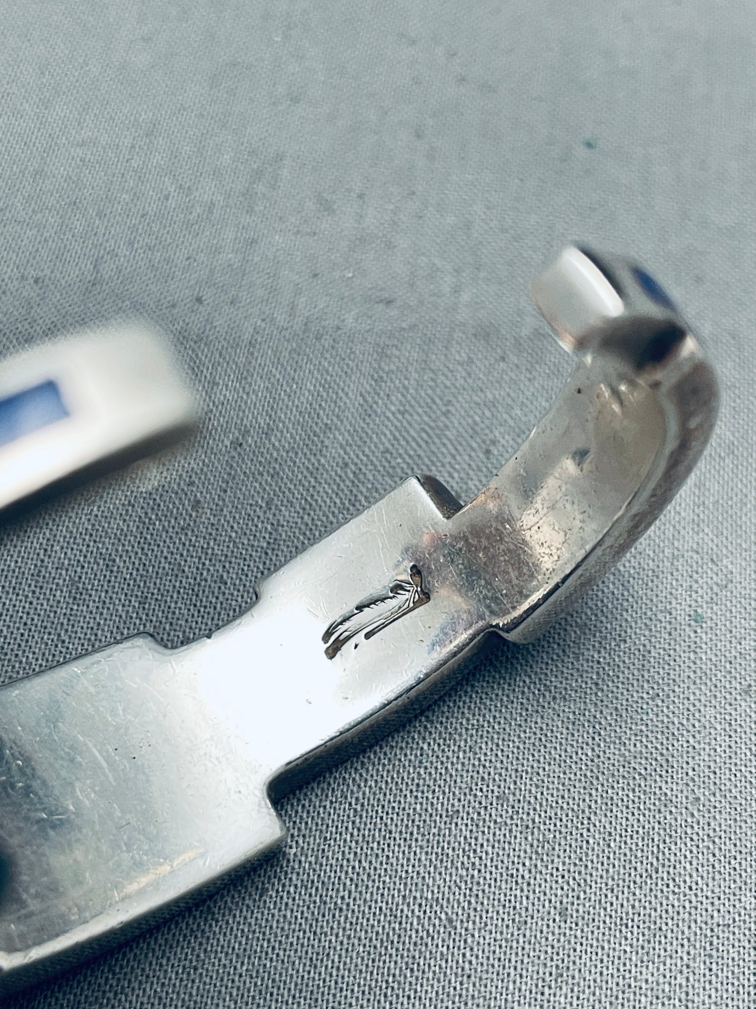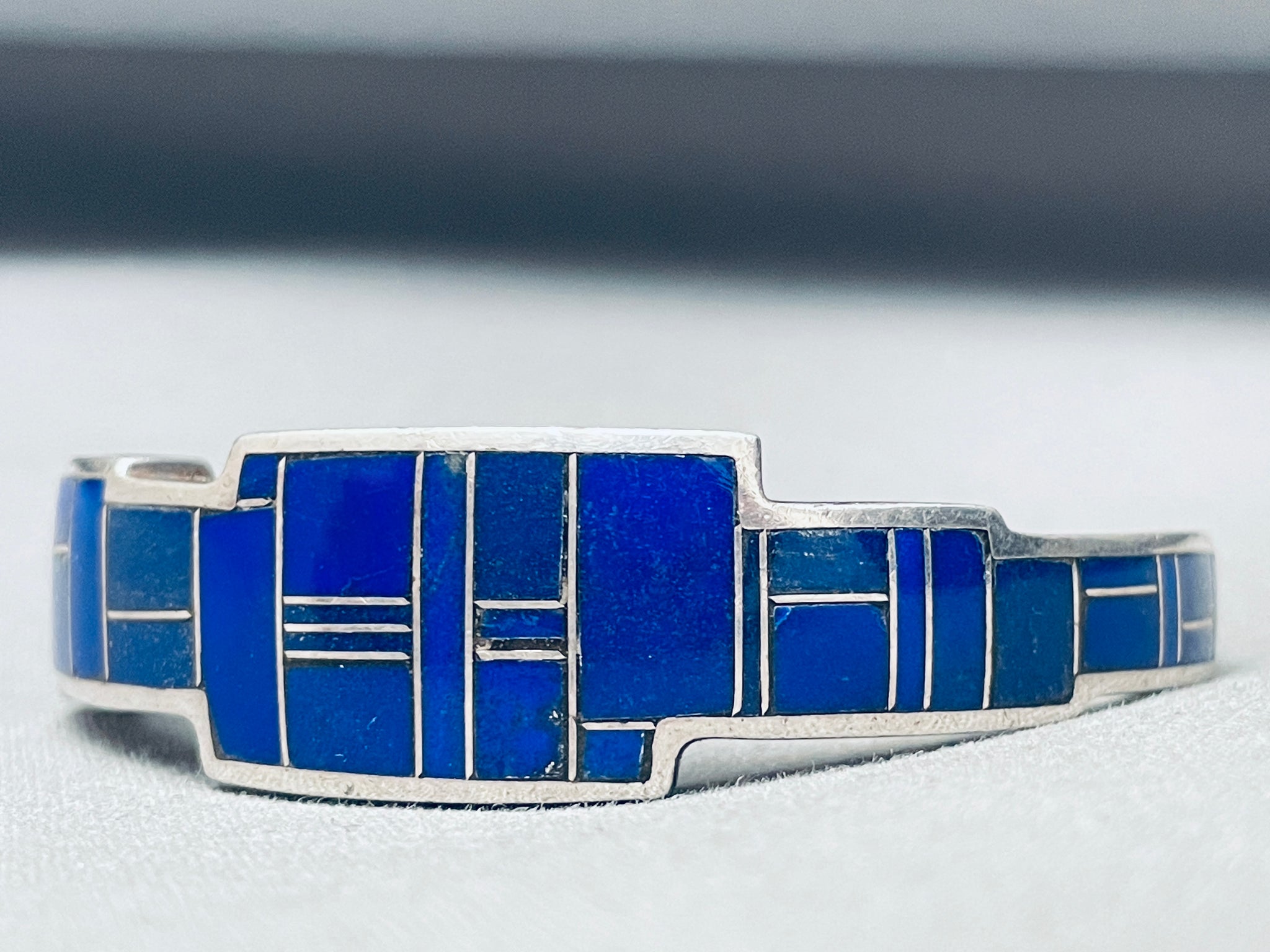 6 Inch Wrist Ray Tracey Vintage Native American Navajo Lapis Sterling Silver Bracelet