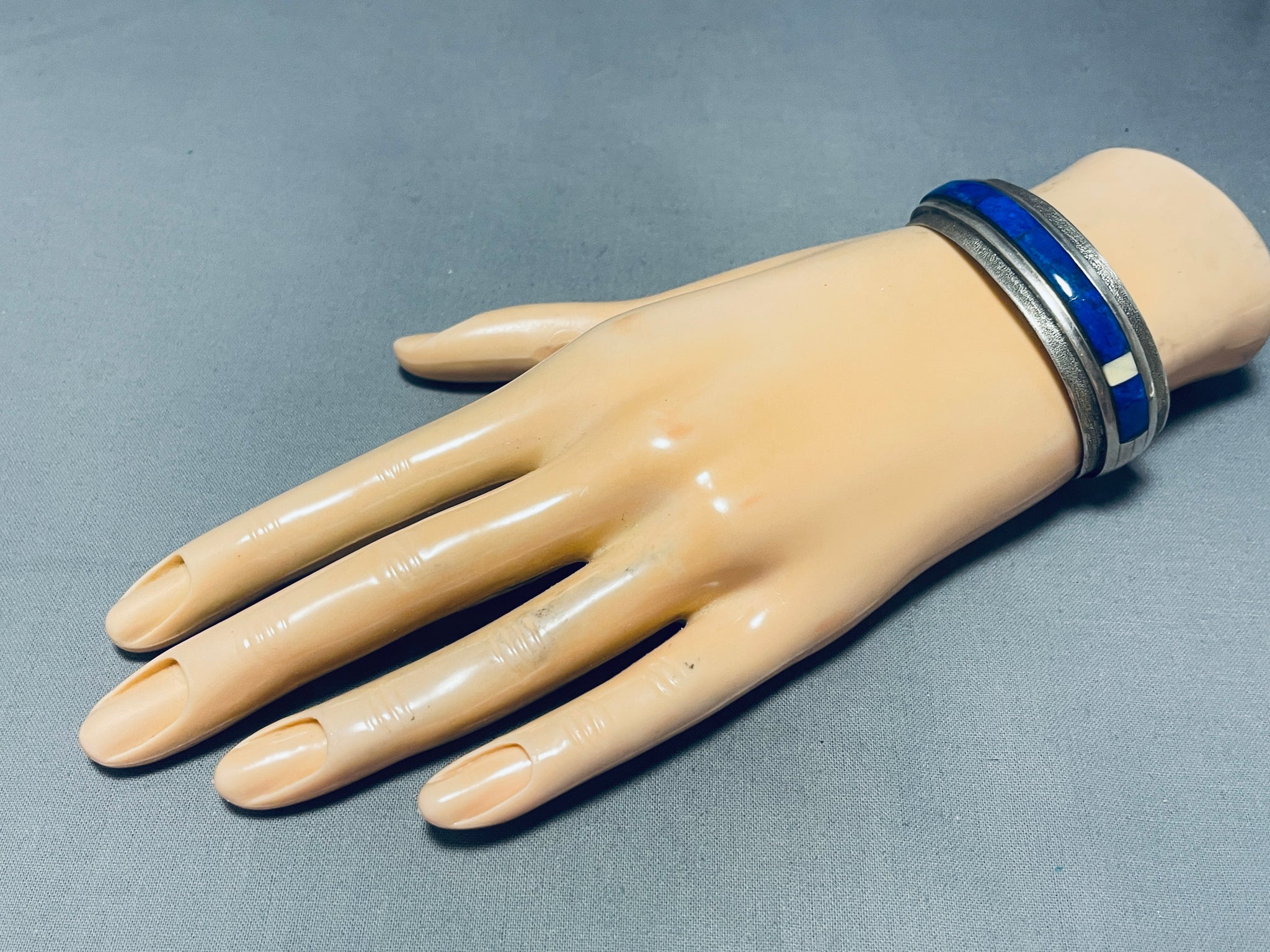 6 Inch Wrist Signed Lapis Vintage Native American Navajo Sterling Silver Bracelet
