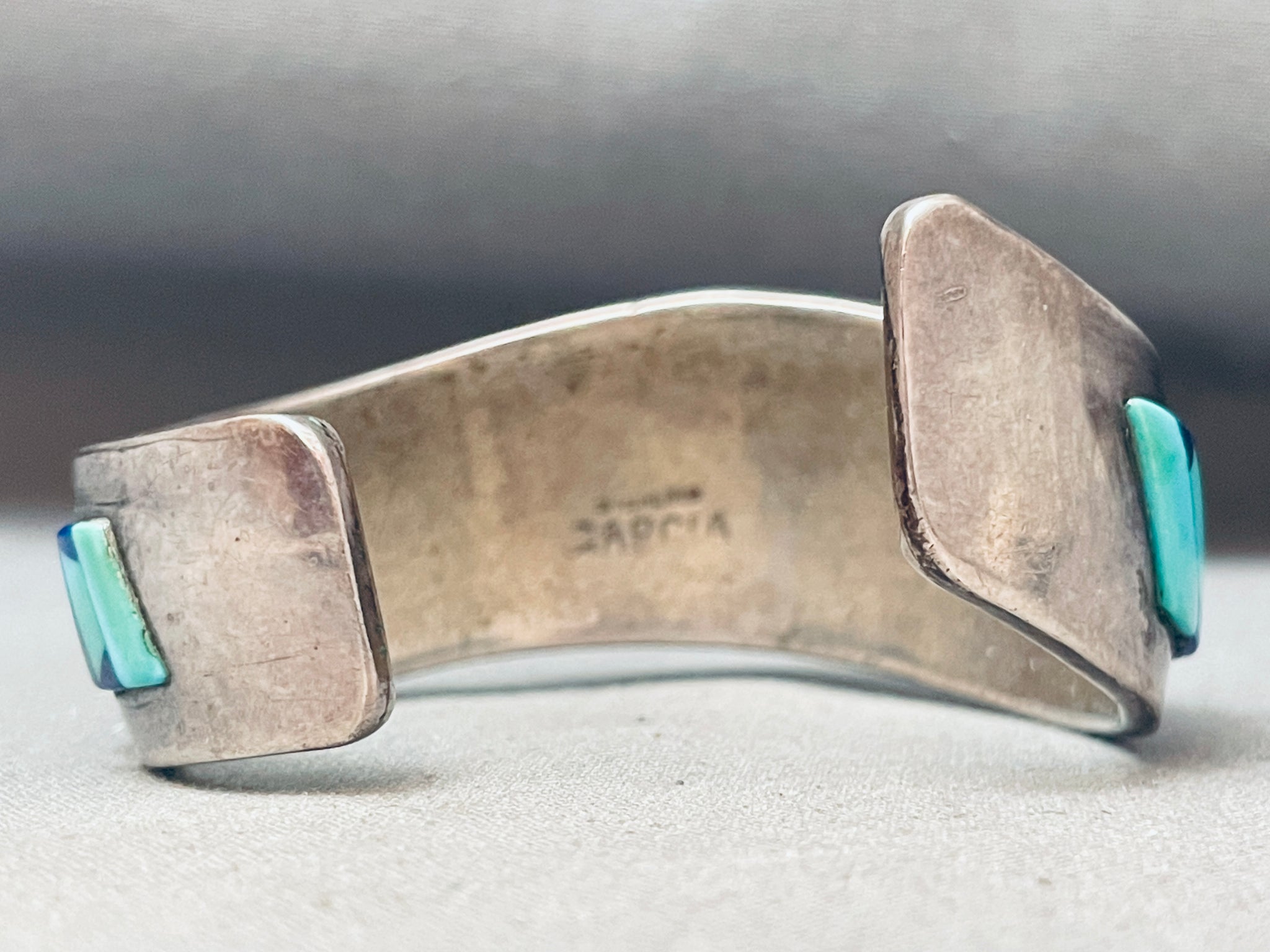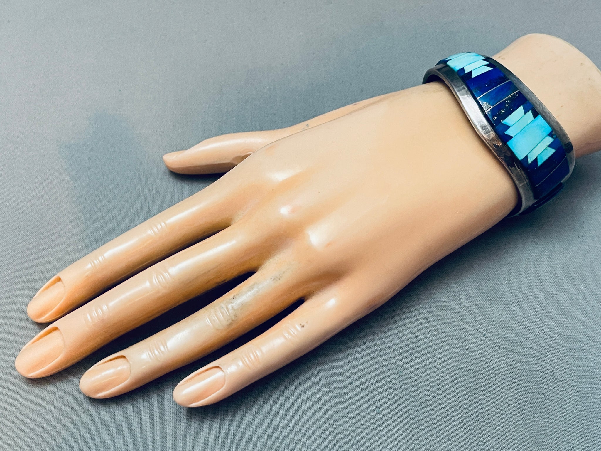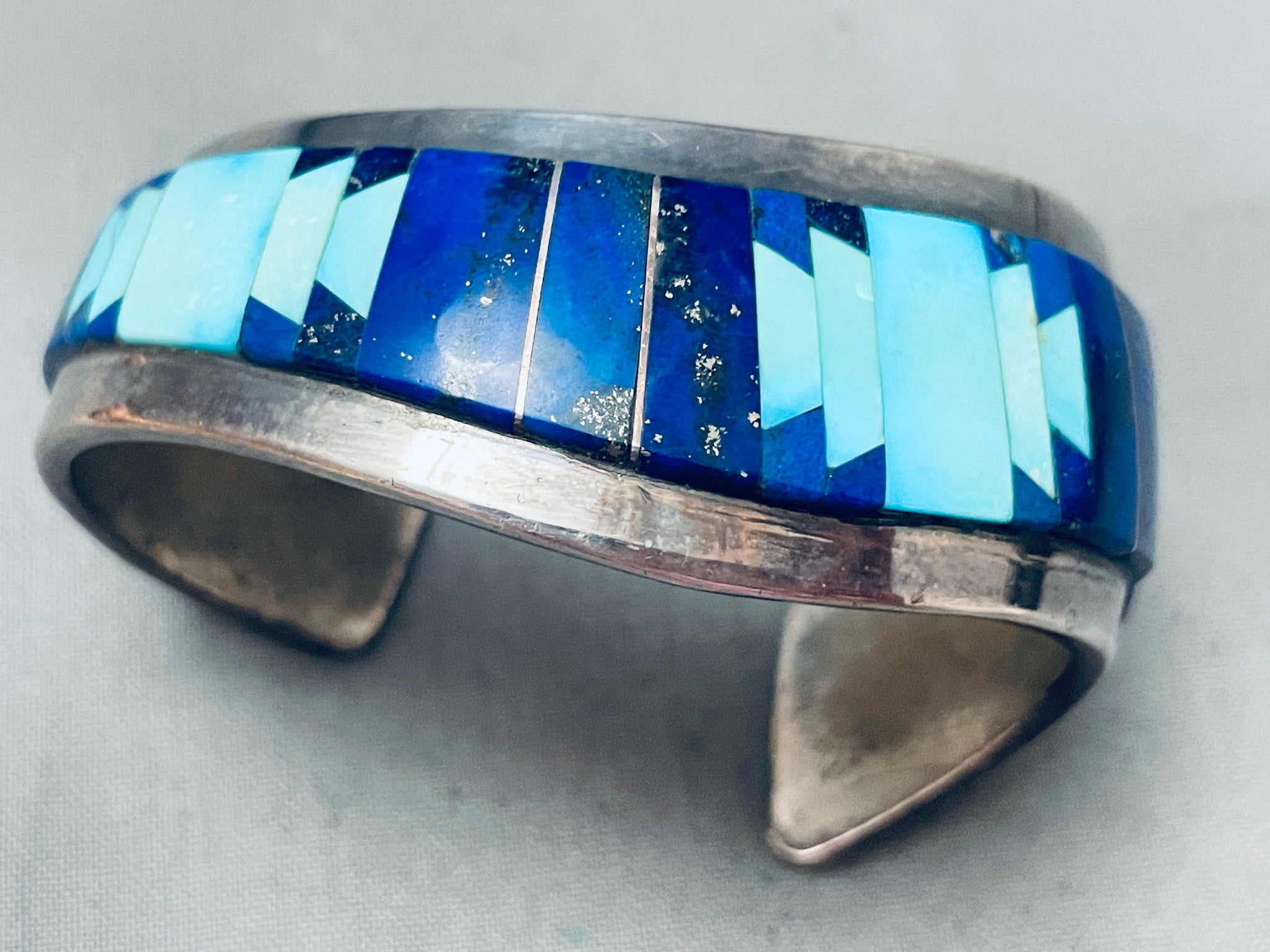 6 Inch Wrist Vintage Native American Navajo Turquoise Lapis Sterling Silver Bracelet