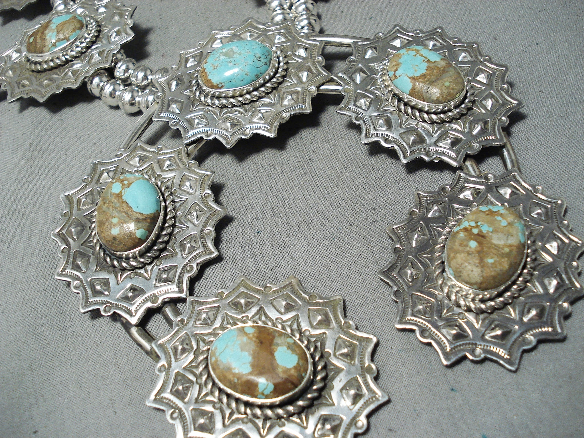 623 Gram Native American #8 Turquoise Sterling Silver Squash Blossom Necklace