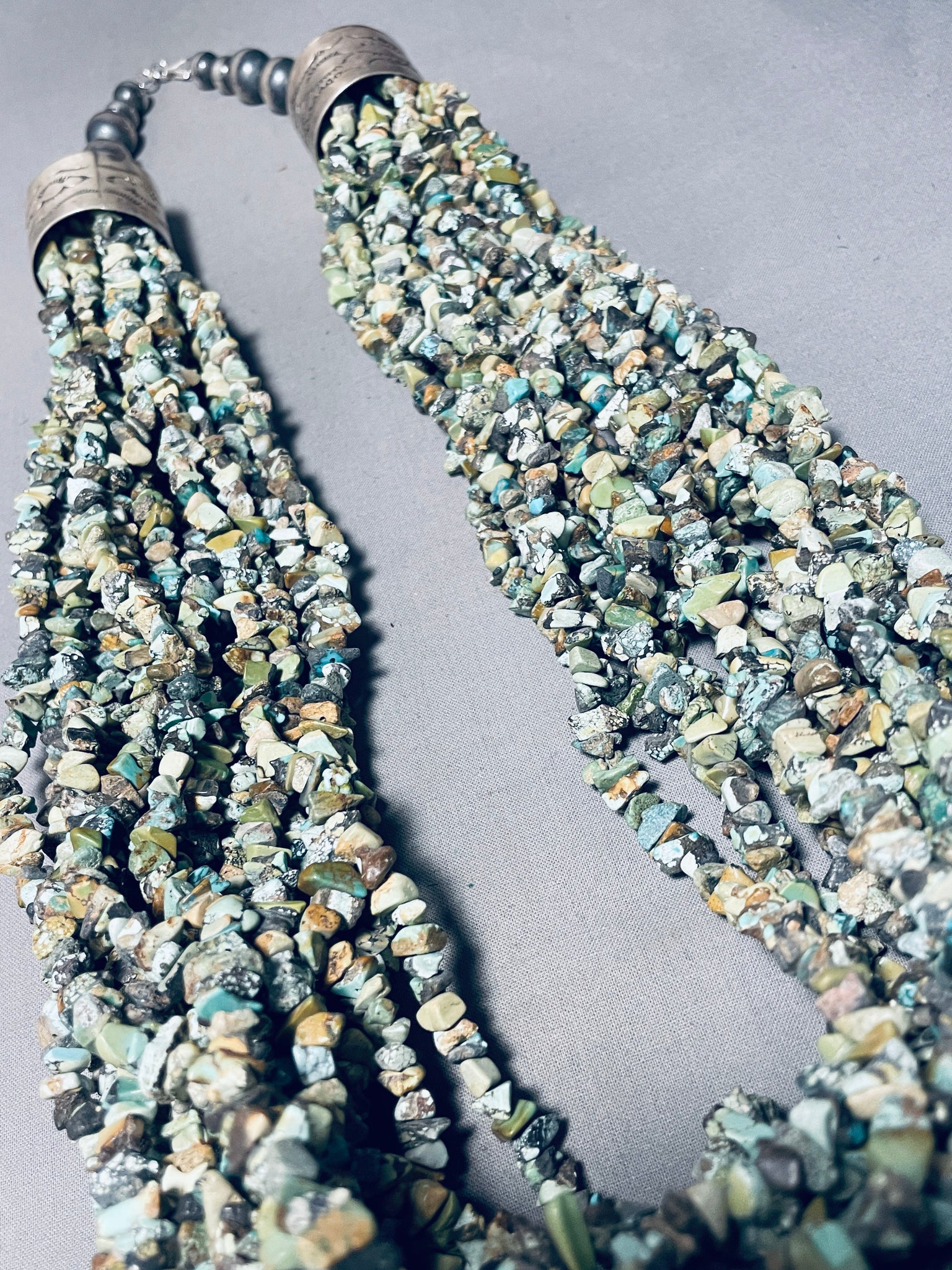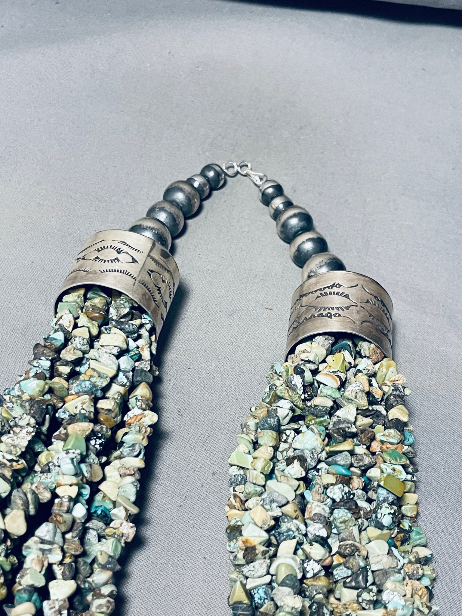 685 Grams!! Vintage Native American Navajo Green Turquoise Sterling Silver Necklace
