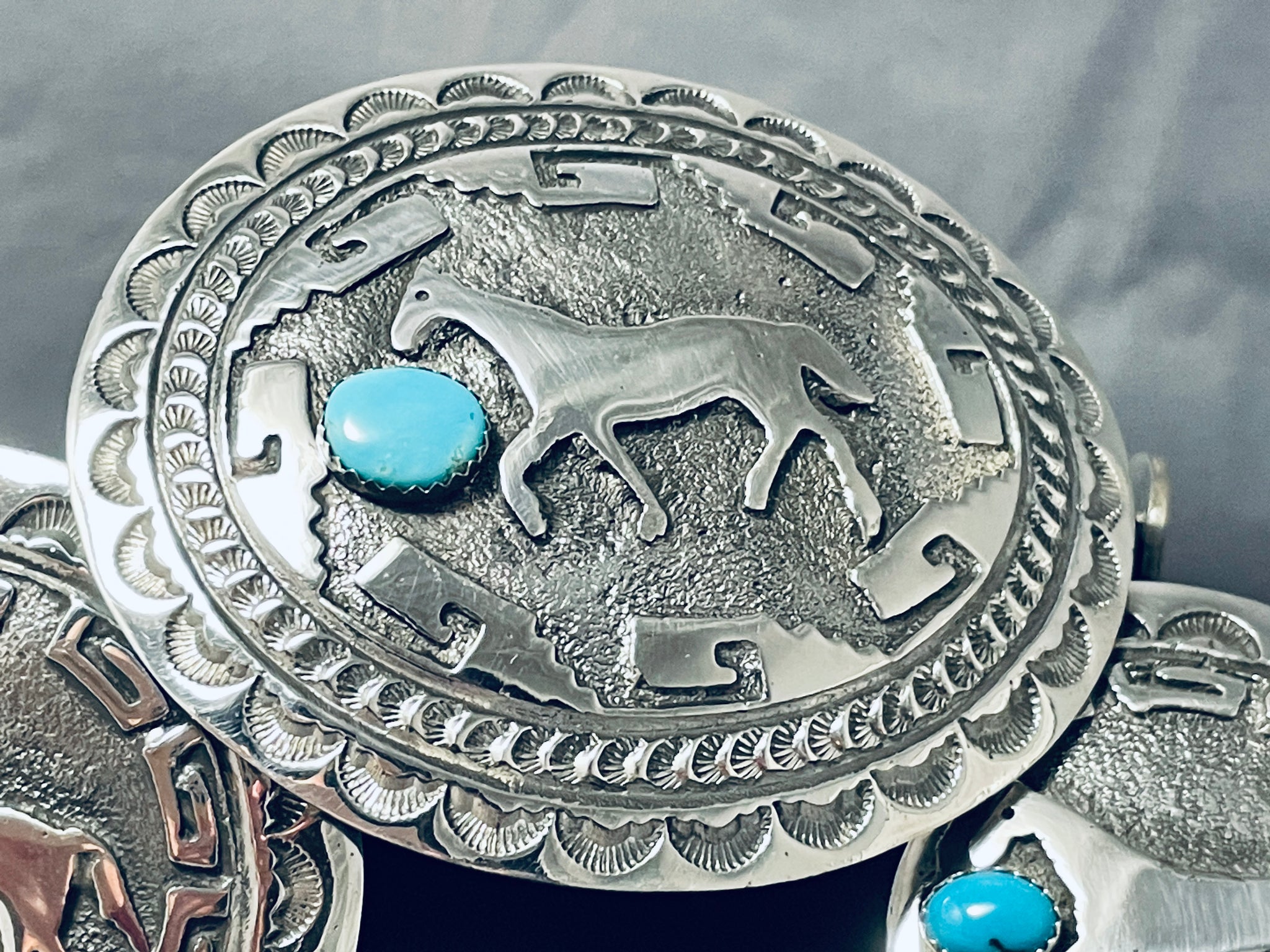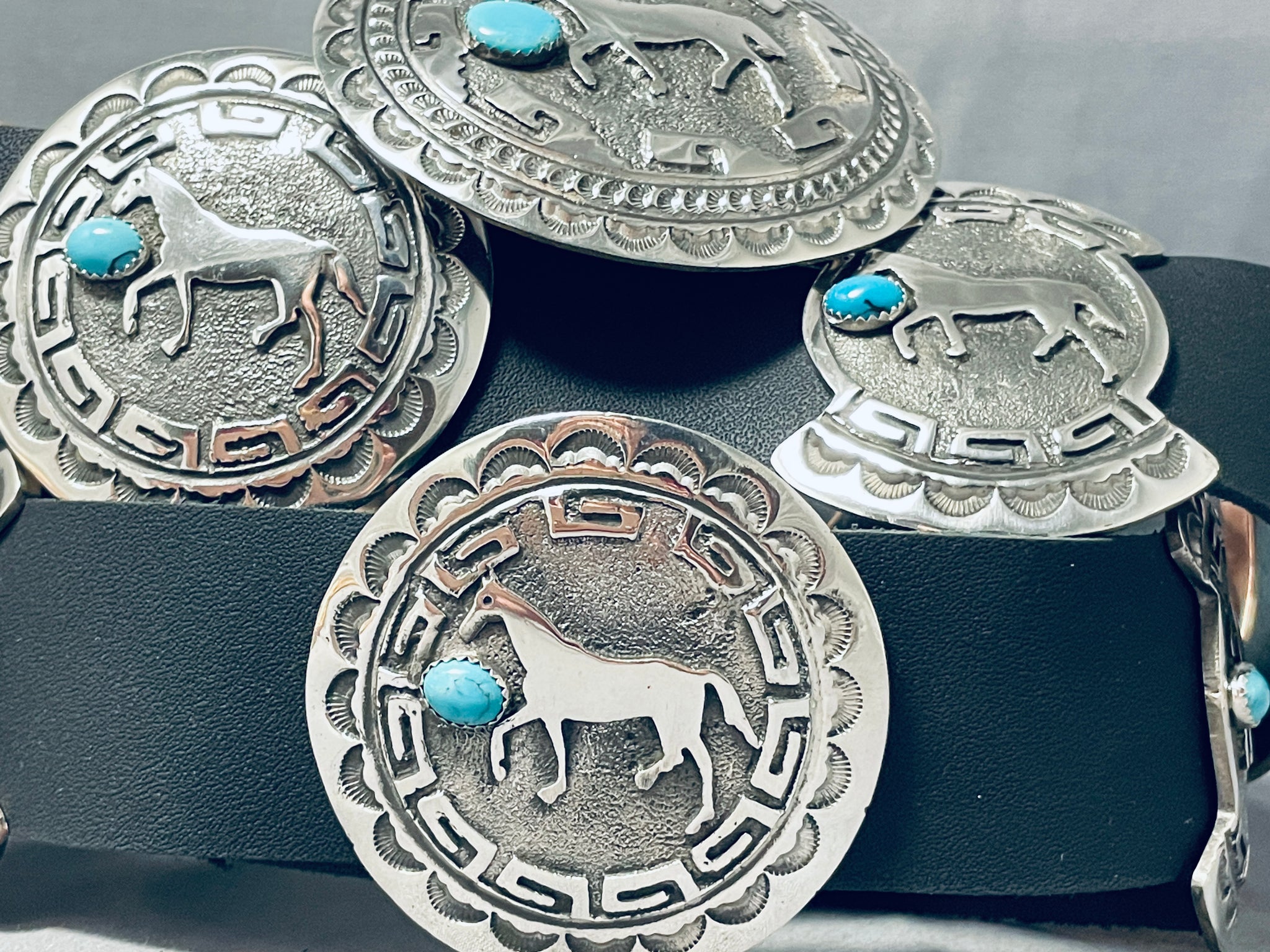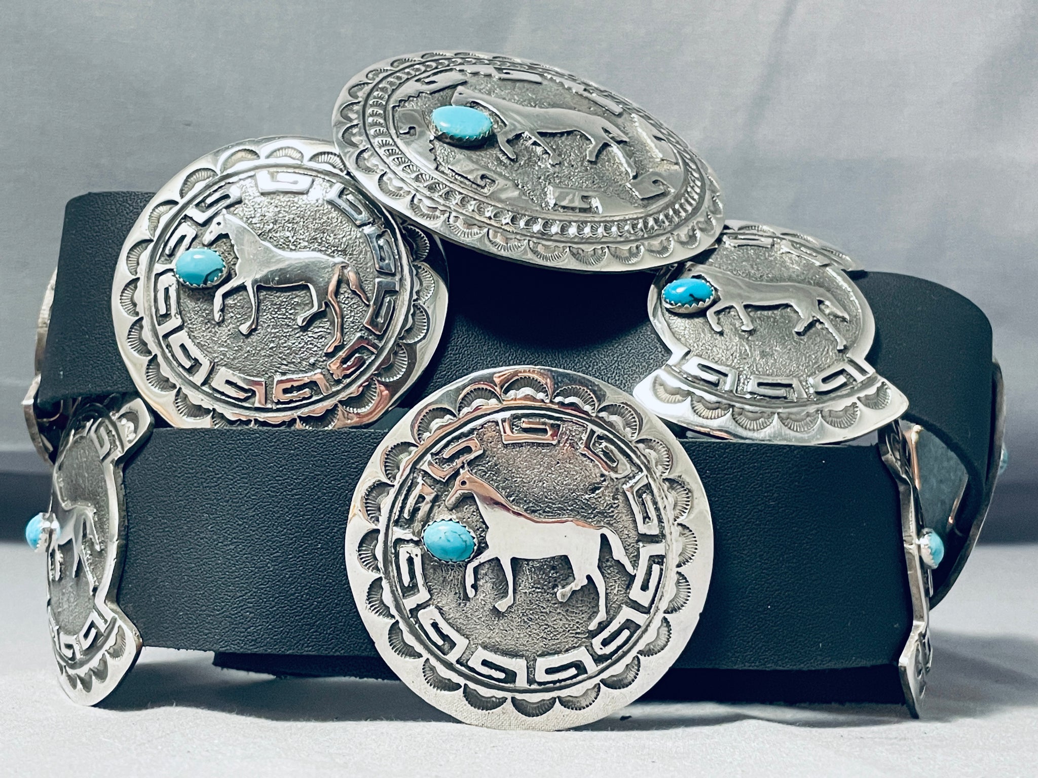 699 Gram Horse Vintage Native American Navajo Turquoise Sterling Silver Concho Belt Old