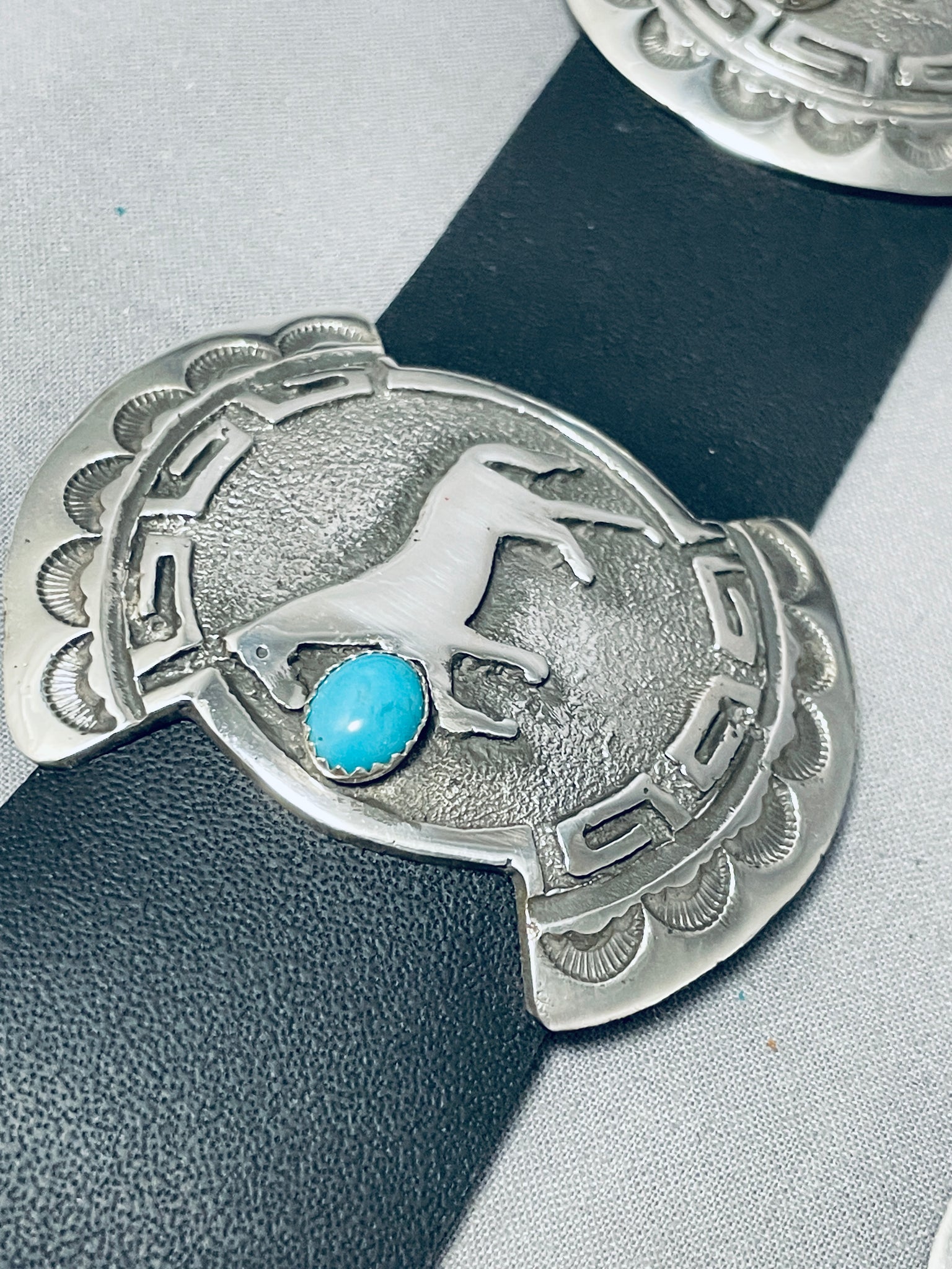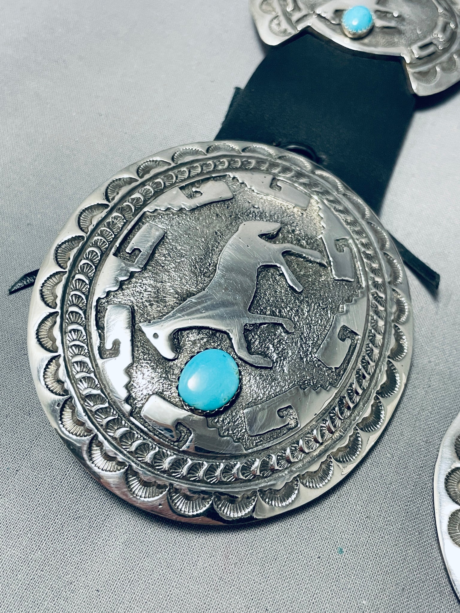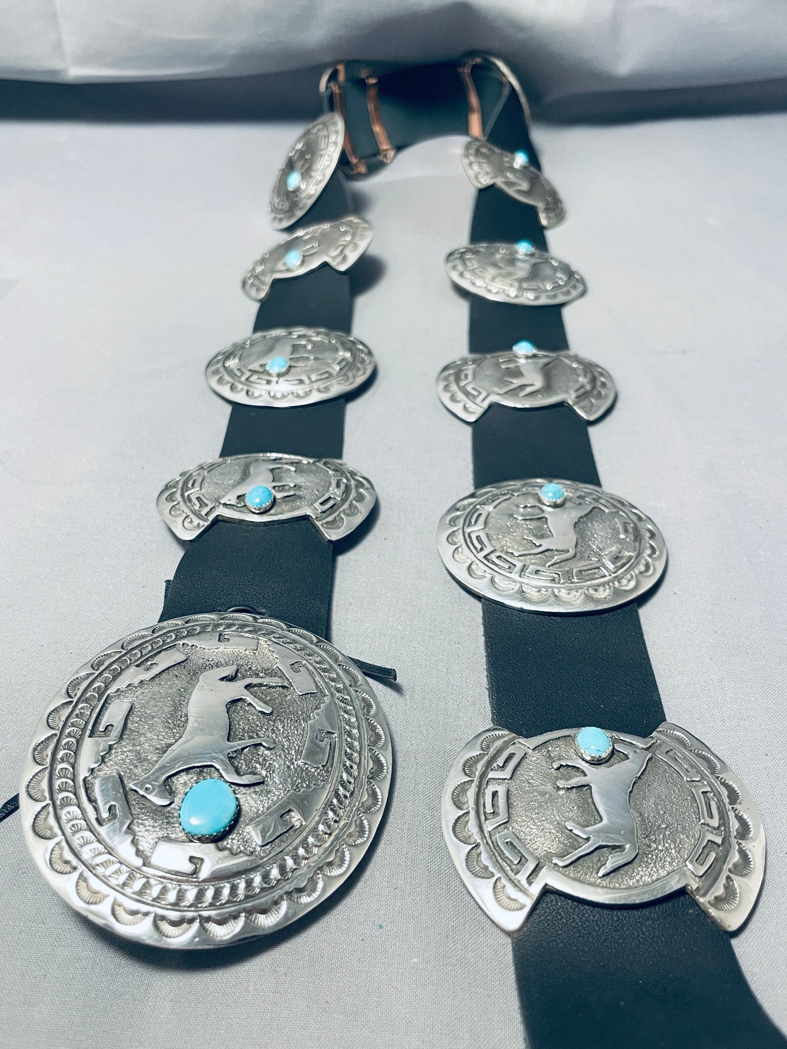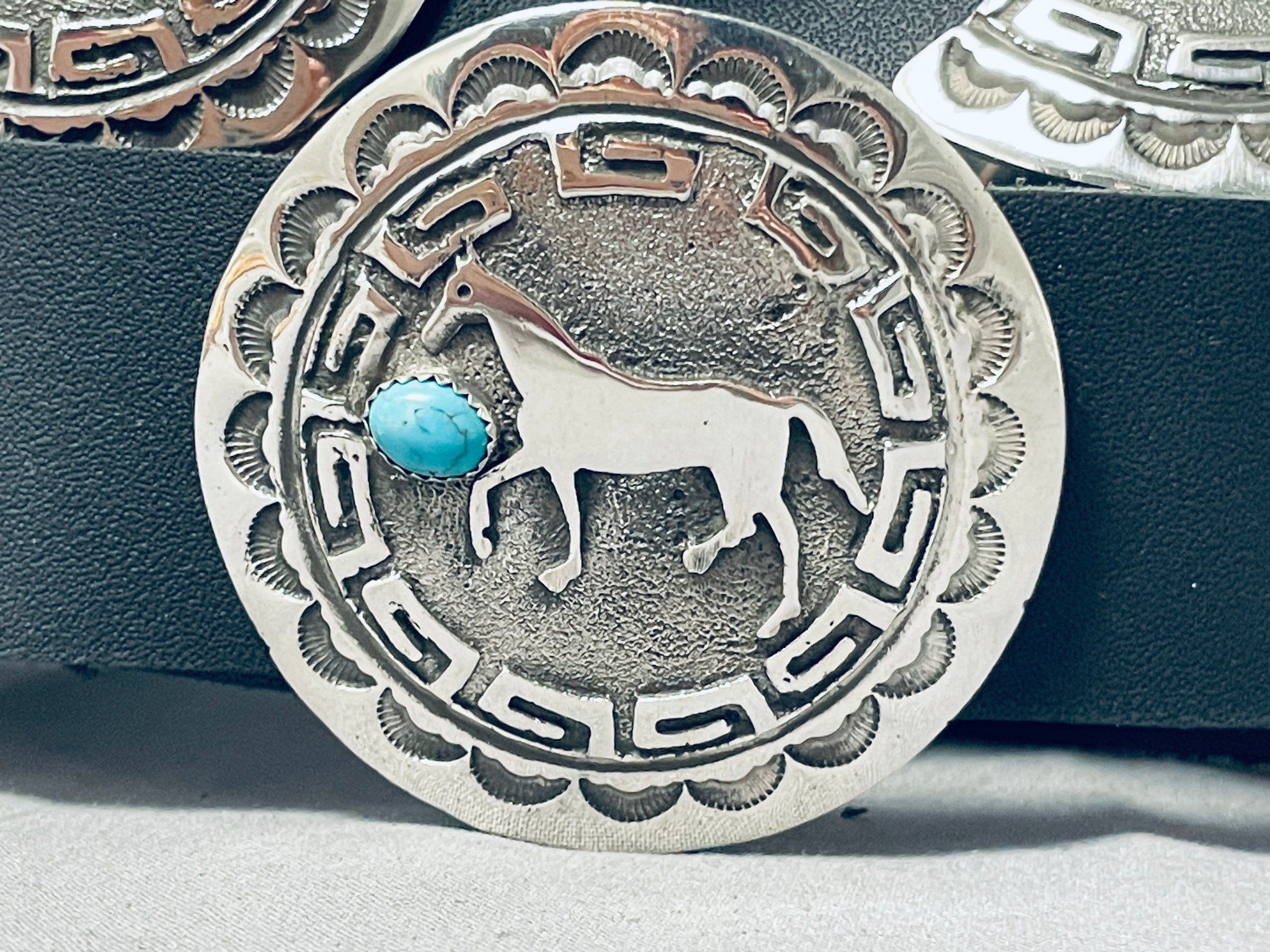 699 Gram Horse Vintage Native American Navajo Turquoise Sterling Silver Concho Belt Old