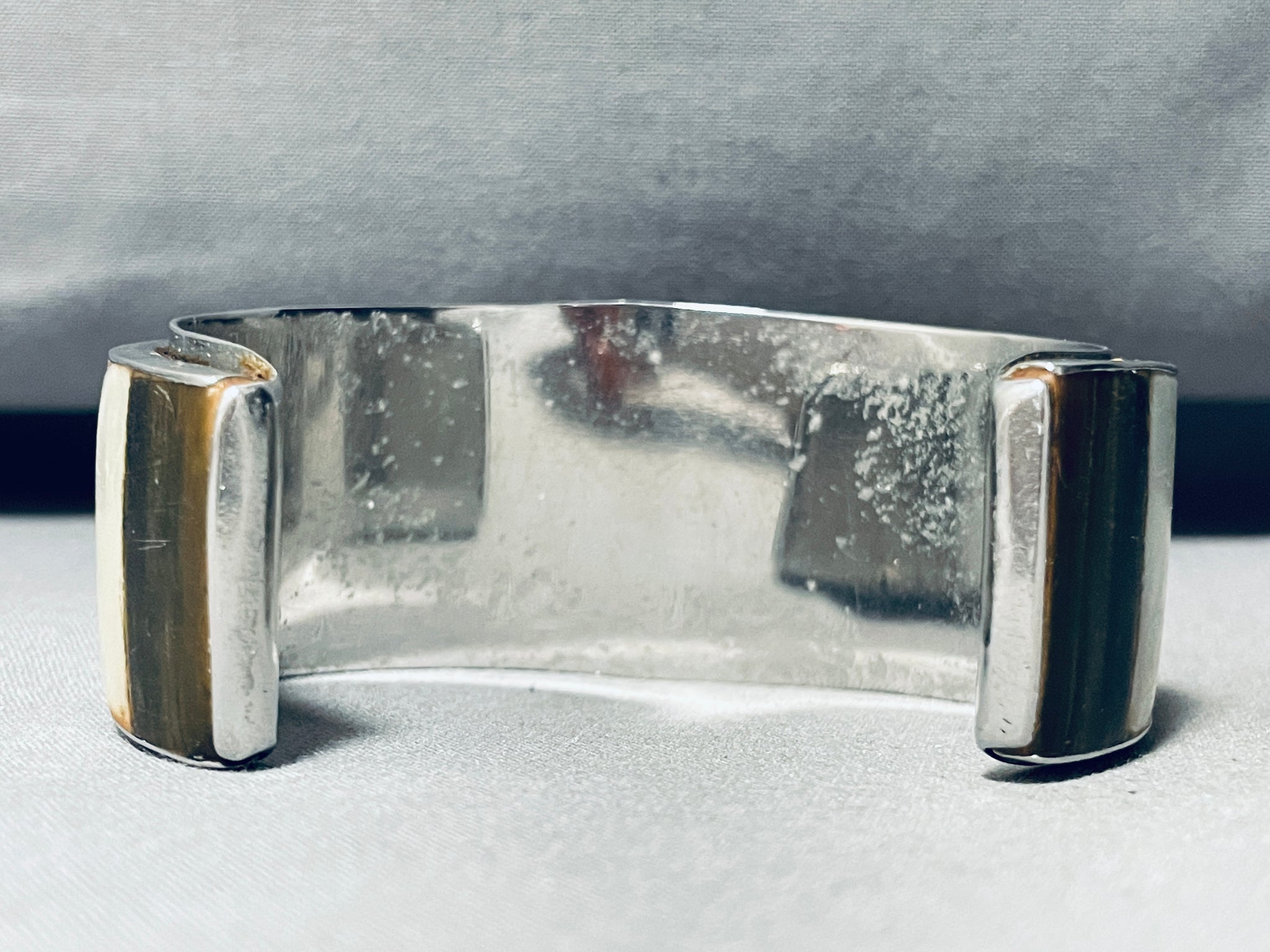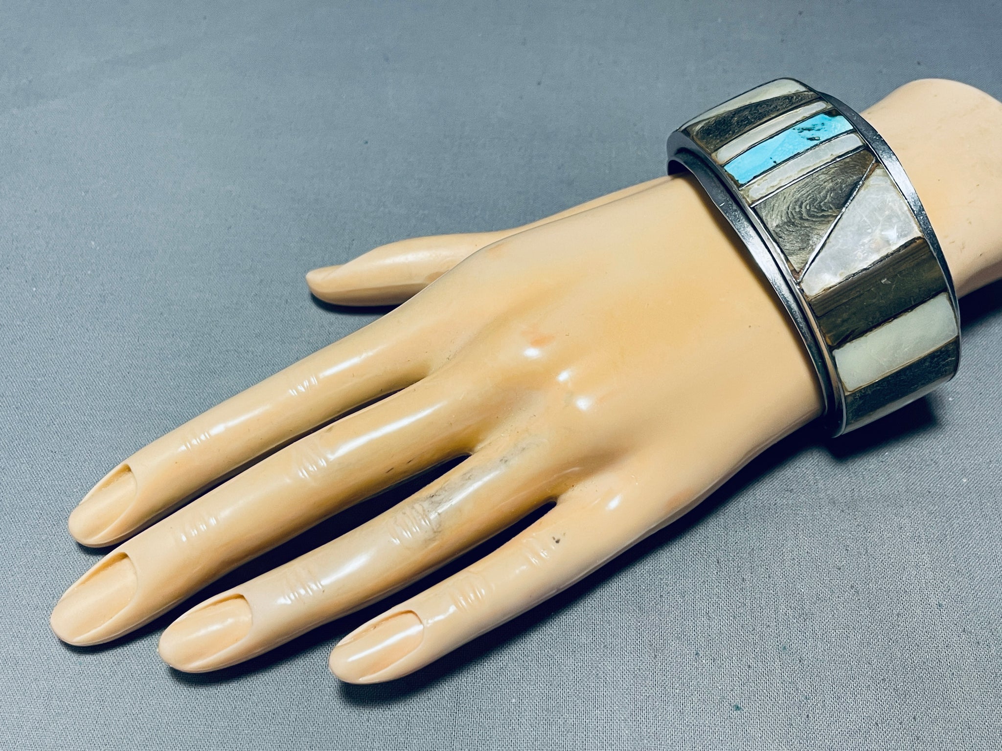 7.5 Inch Wrist Vintage Native American Navajo Turquoise Inlay Sterling Silver Bracelet Cuff