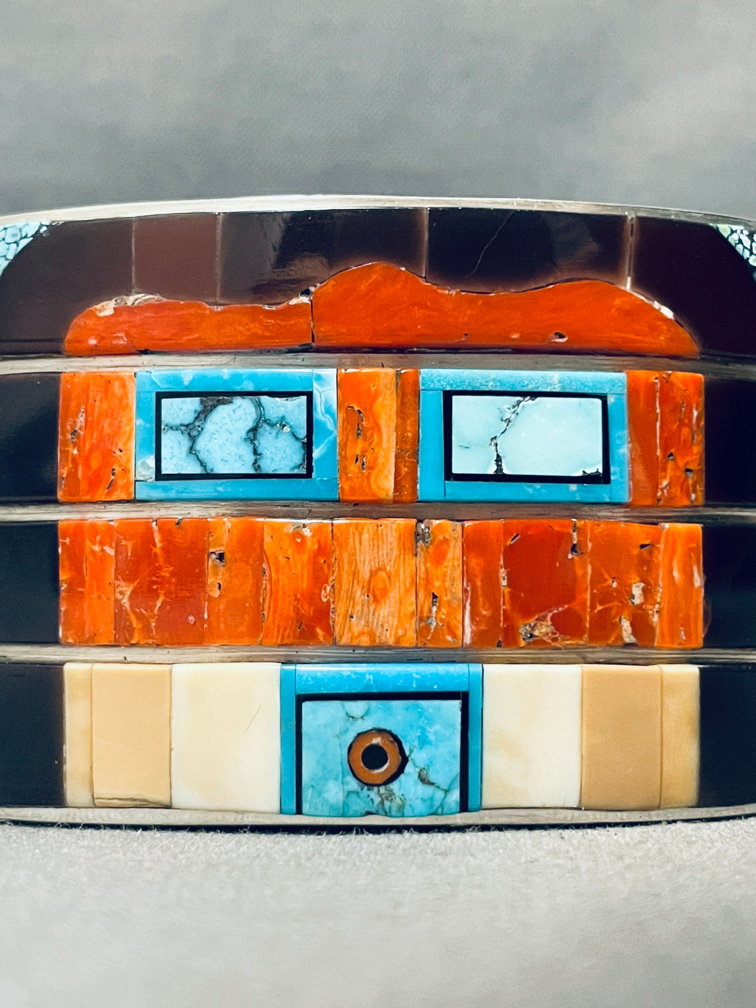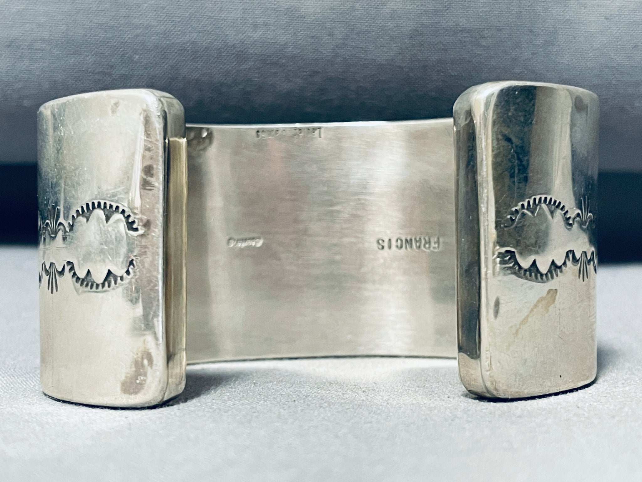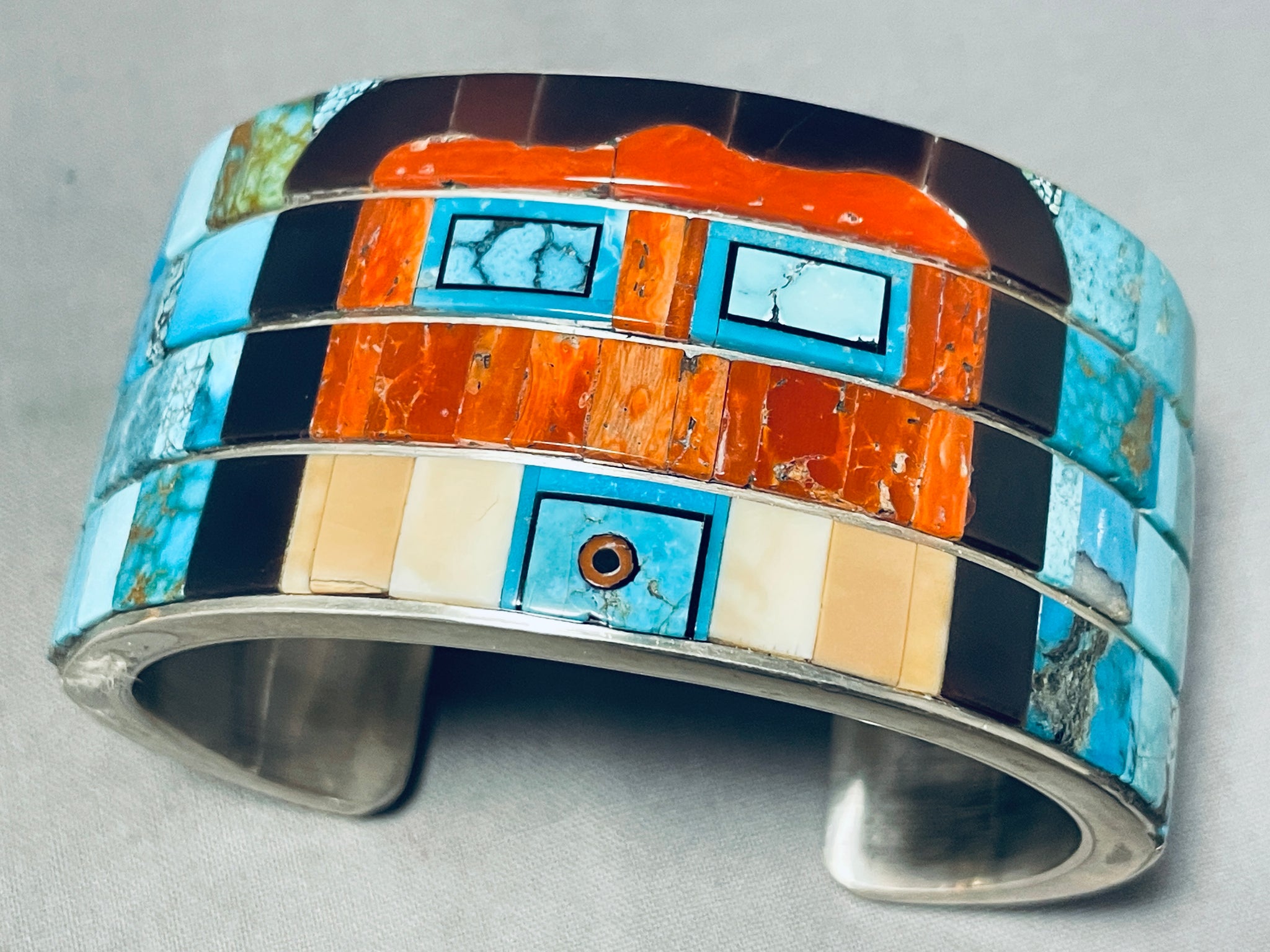 7 Inch Wrist 140 Grams Native American Navajo Kachina Turquoise Inlay Sterling Silver Bracelet