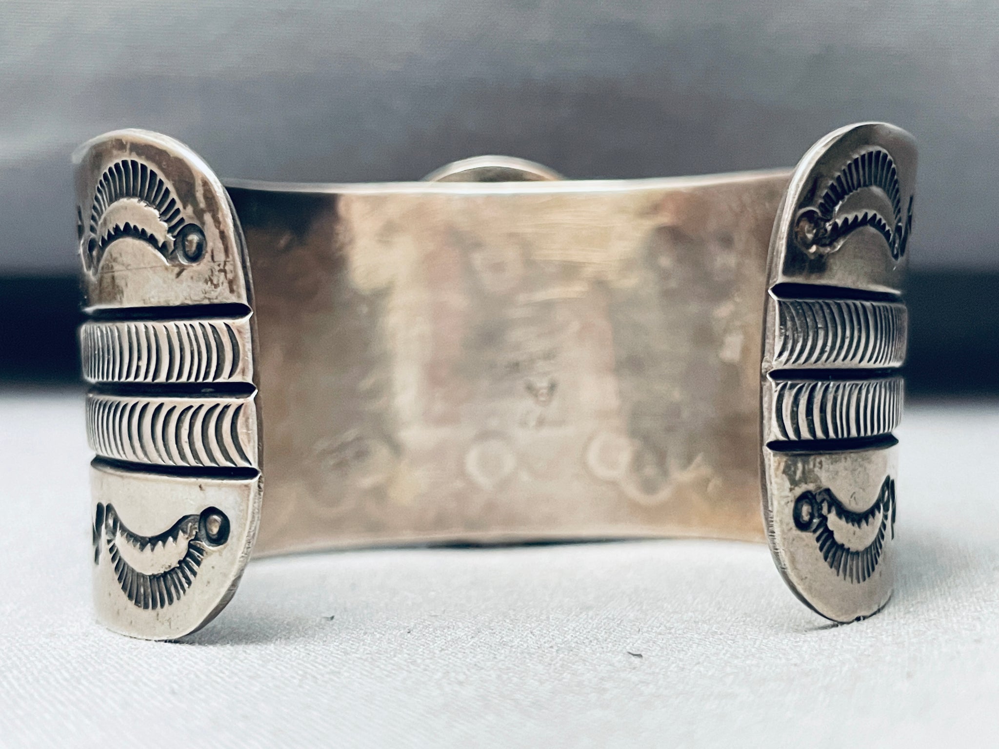 7 Inch Wrist Deep Blue Turquoise Native American Navajo Sterling Silver Bracelet