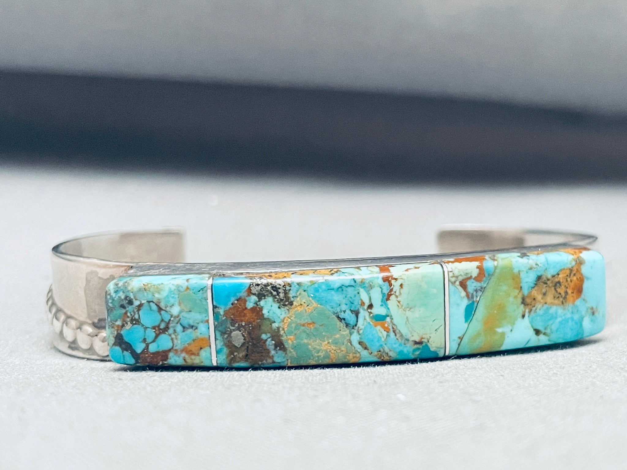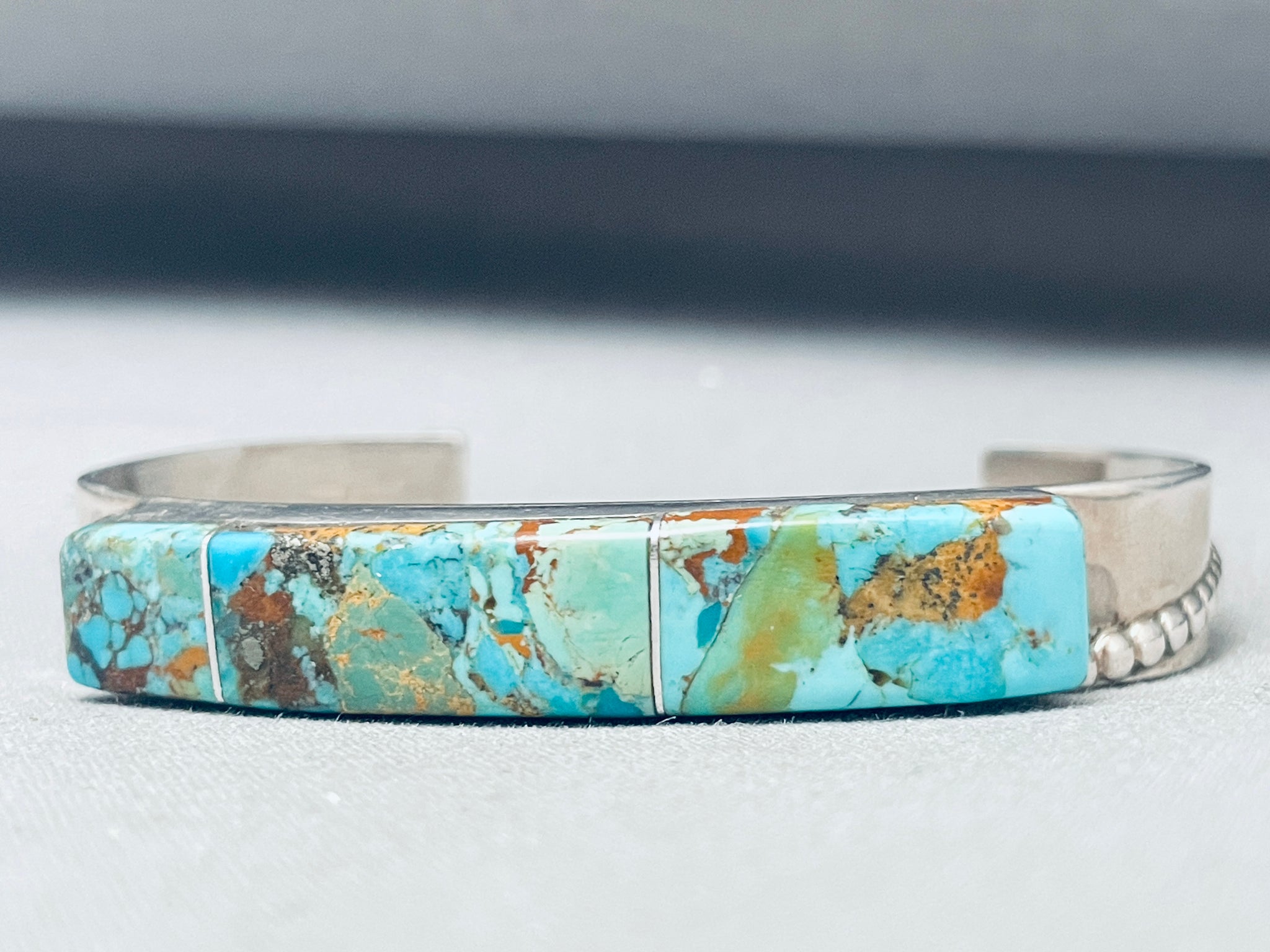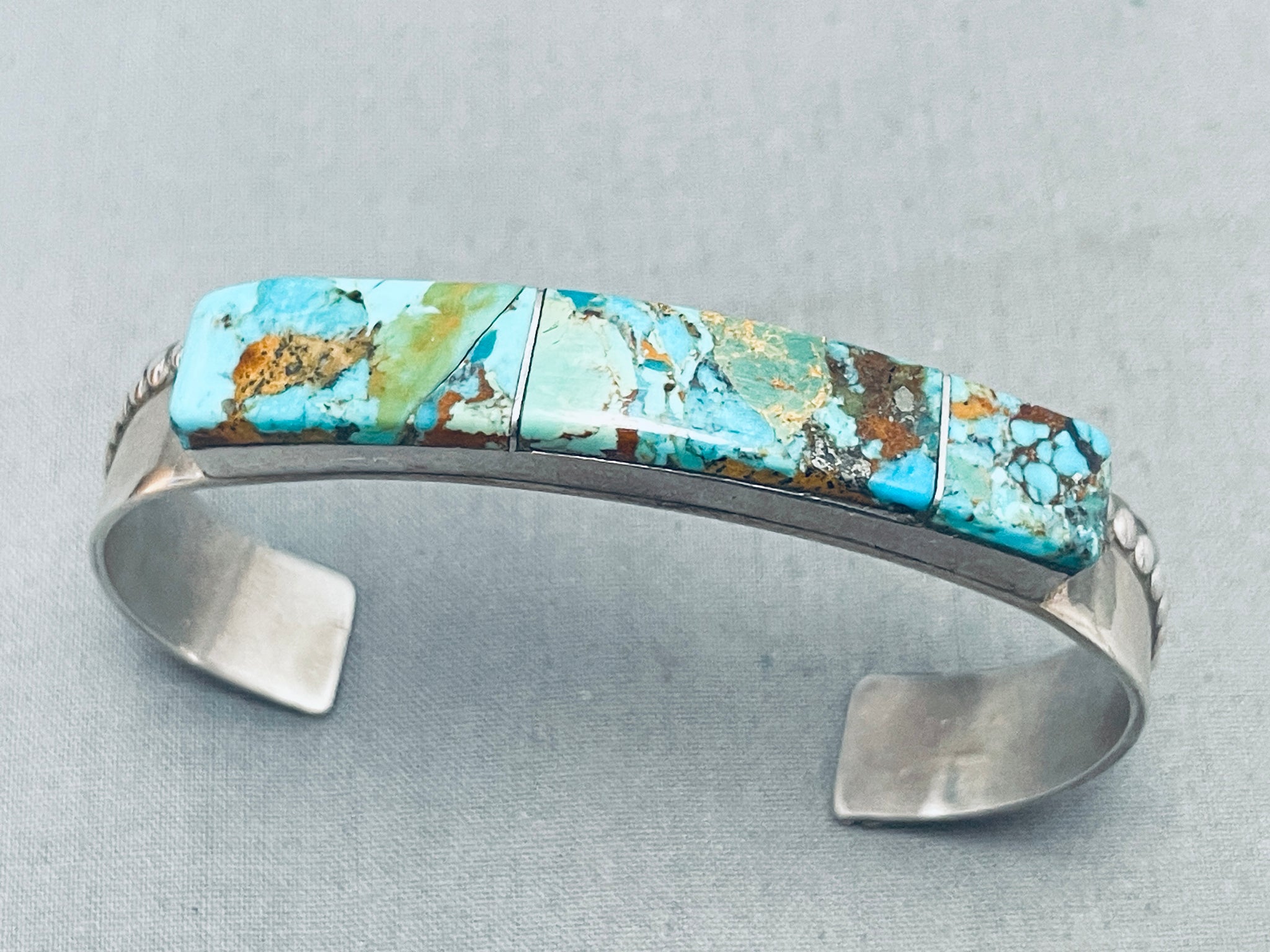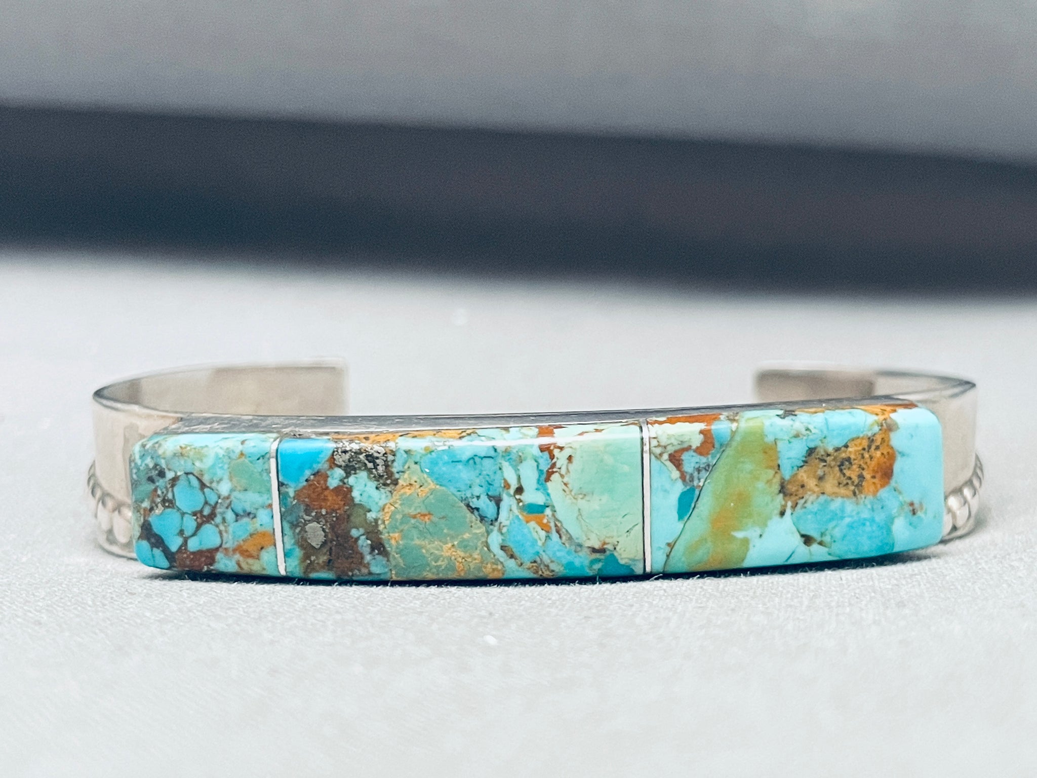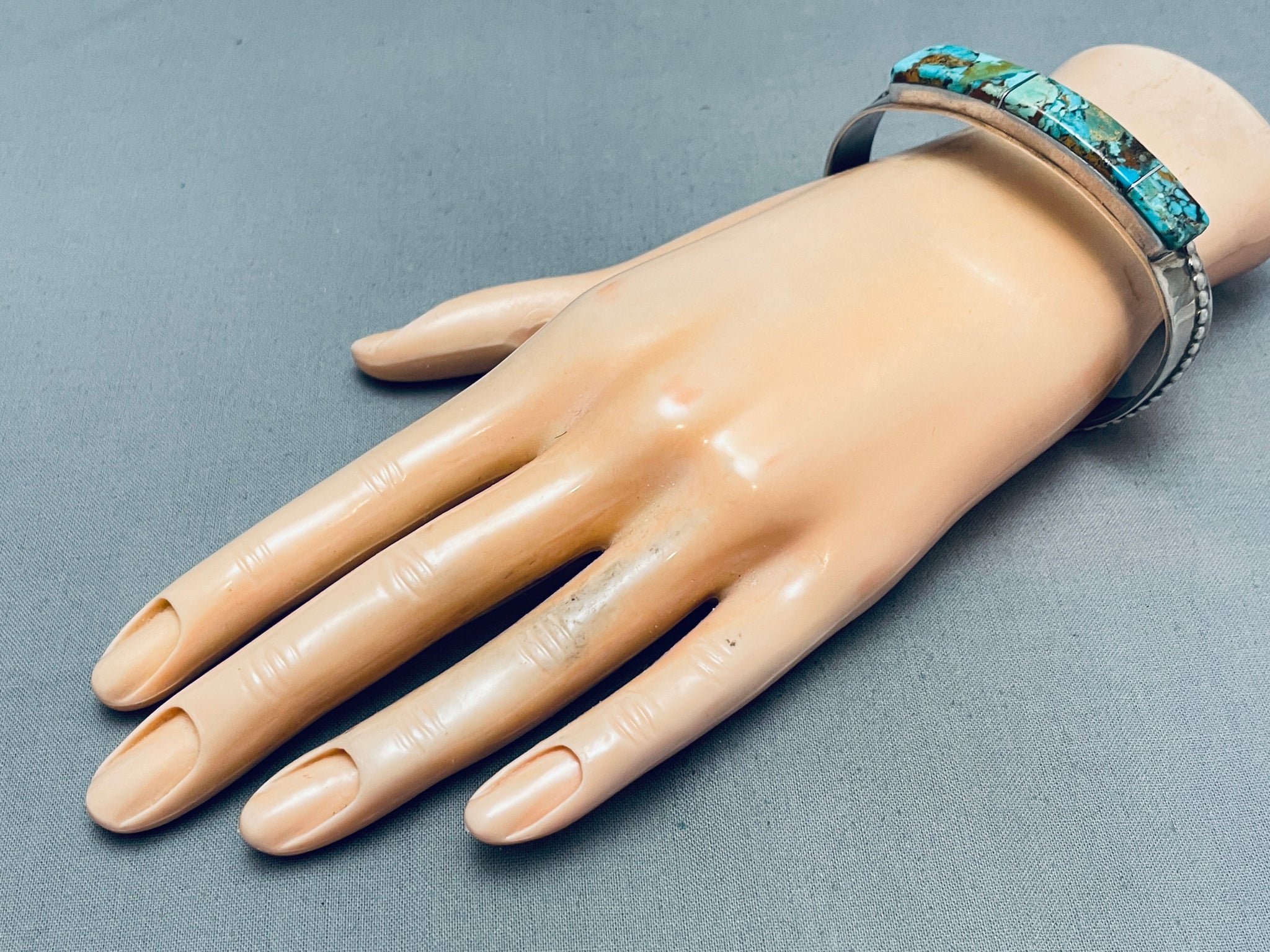 7 Inch Wrist Sleek Vintage Native American Navajo Turquoise Sterling Silver Bracelet