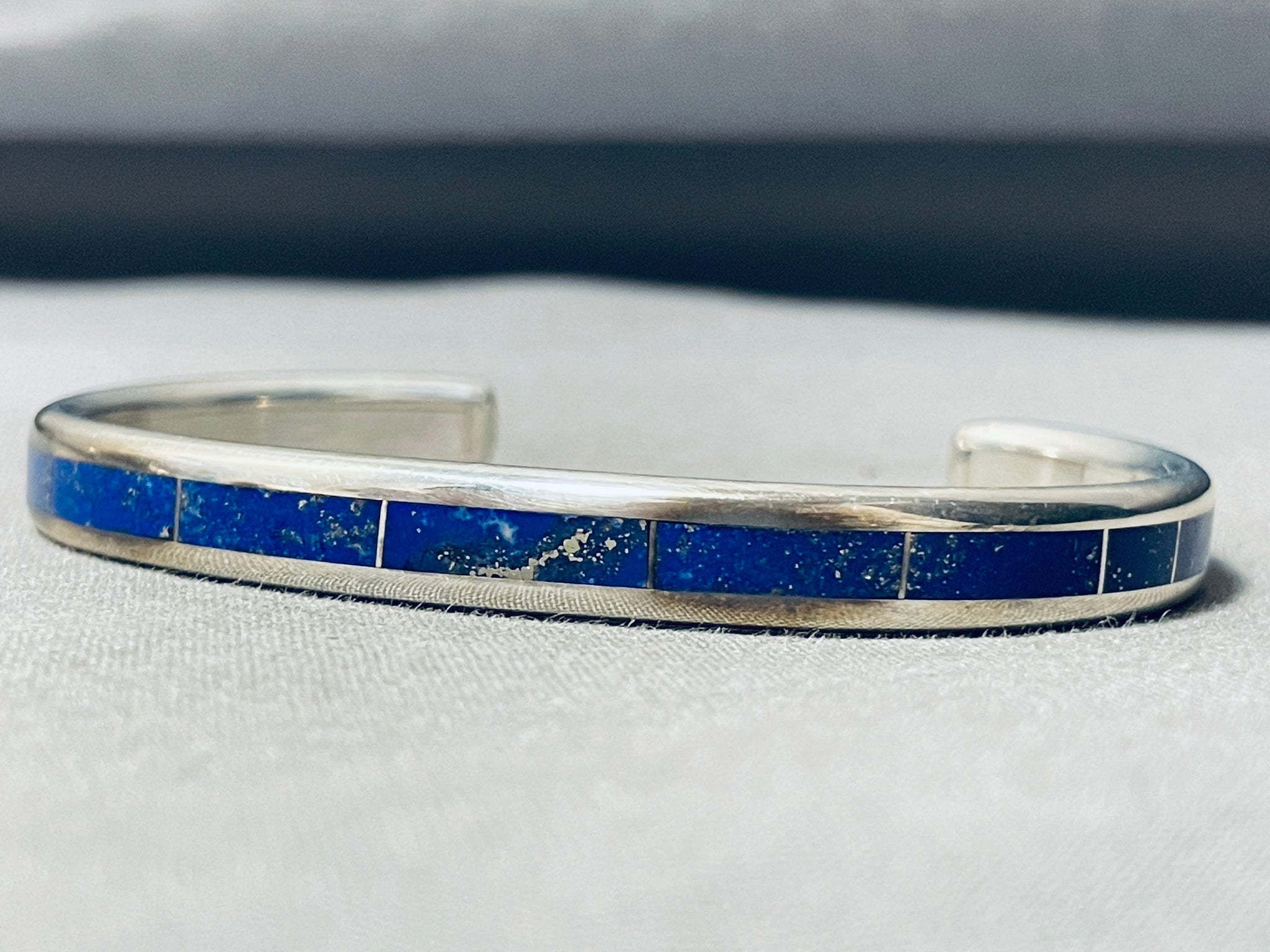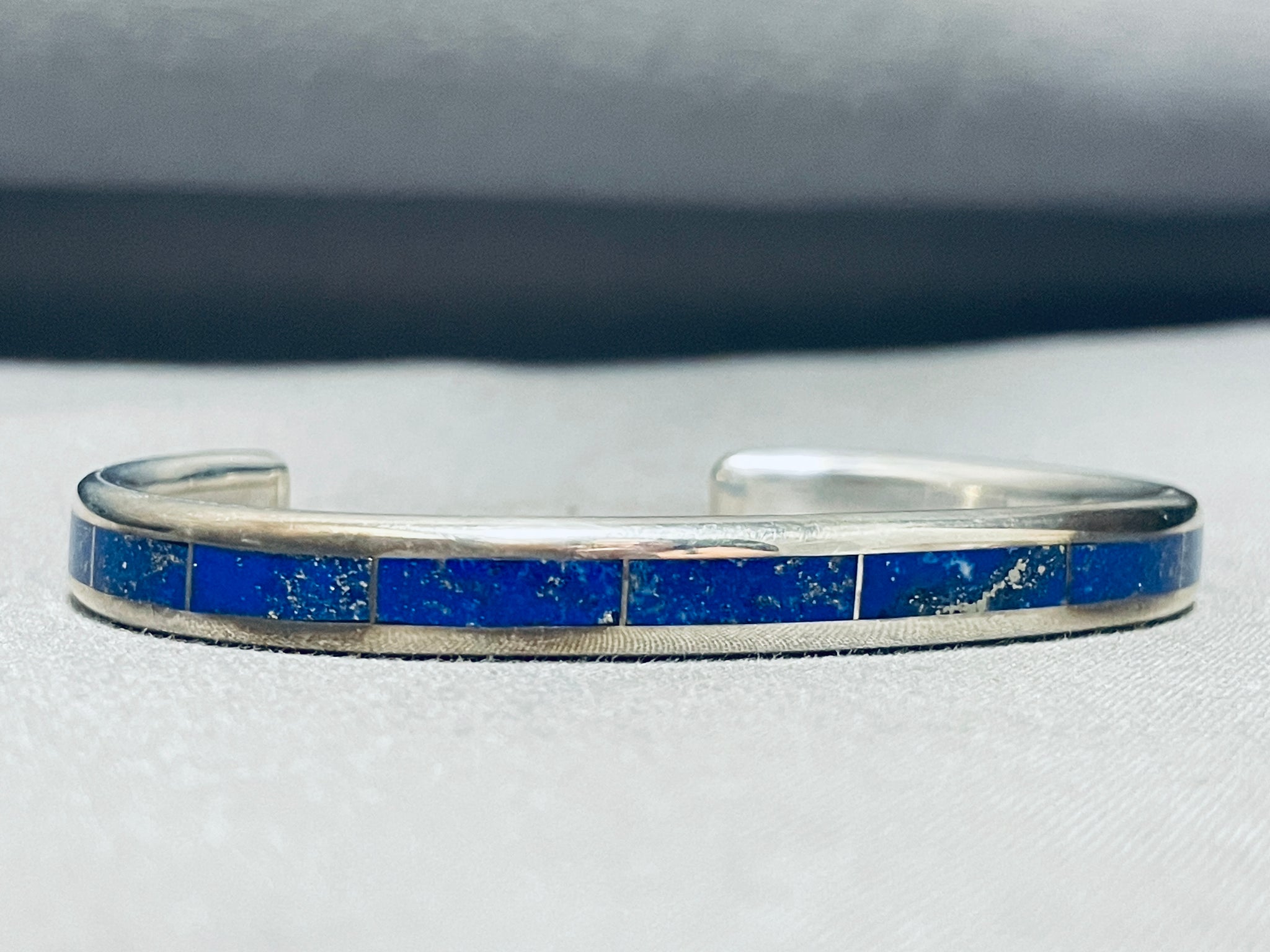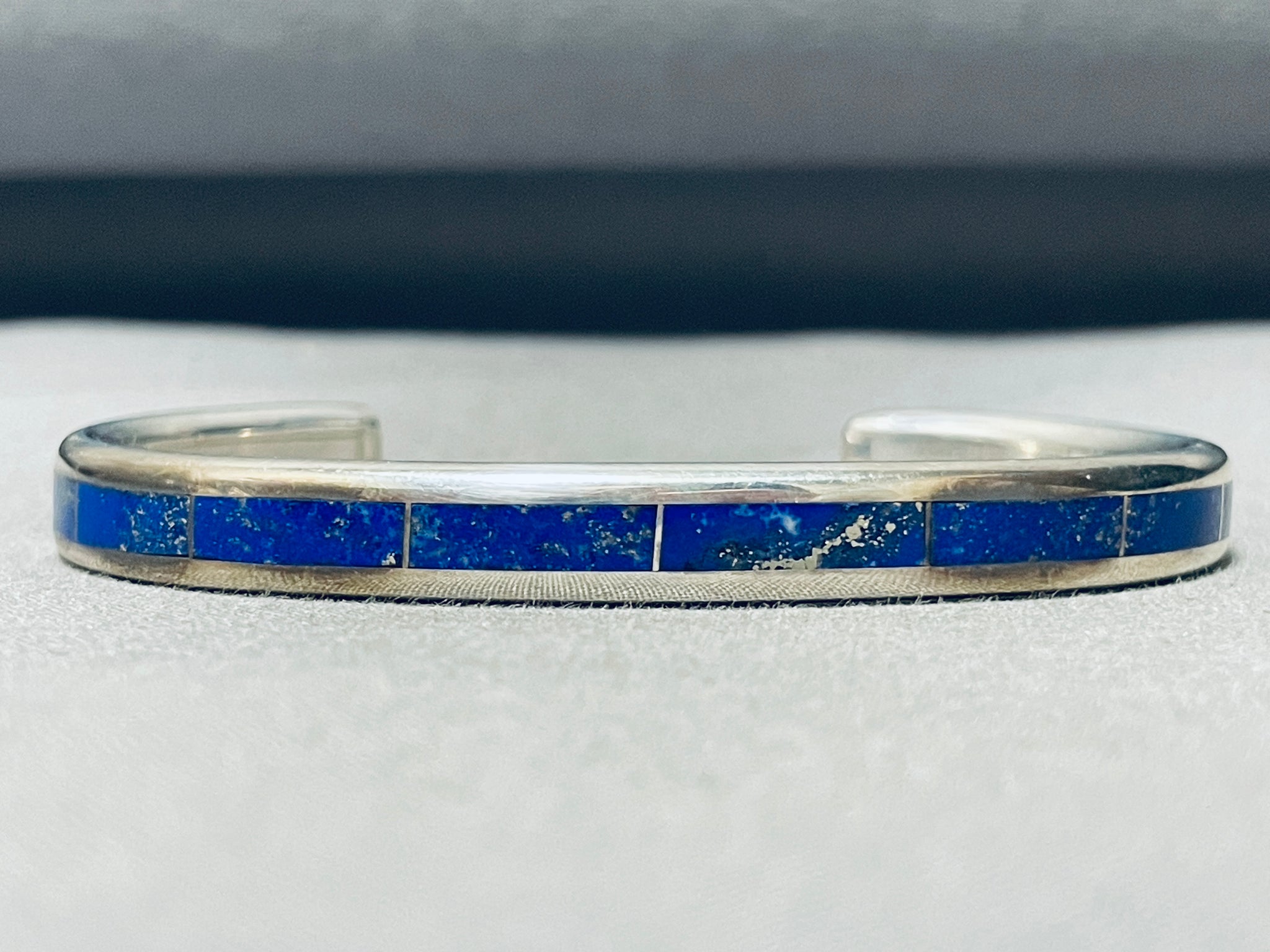 7 Inch Wrist Vintage Native American Zuni Midnight Lapis Sterling Silver Bracelet